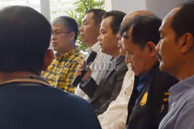 Direktur Jenderal Imigrasi, Ronny F Sompie menjawab pertanyaan wartawan usai penetapan lima warga negara Tiongkok yang ditangkap di lingkungan pangkalan TNI Angkatan Udara Halim Perdanakusuma saat di Kantor Imigrasi Jakarta Timir, Sabtu (7/4). Ditjen Imigrasi menyatakan telah menaikkan kasus tersebut dari penyelidikan ke tahap penyidikan. Berdasarkan bukti permulaan dari lima warga negara Tiongkok tersebut, hanya empat yang memiliki izin kerja.
