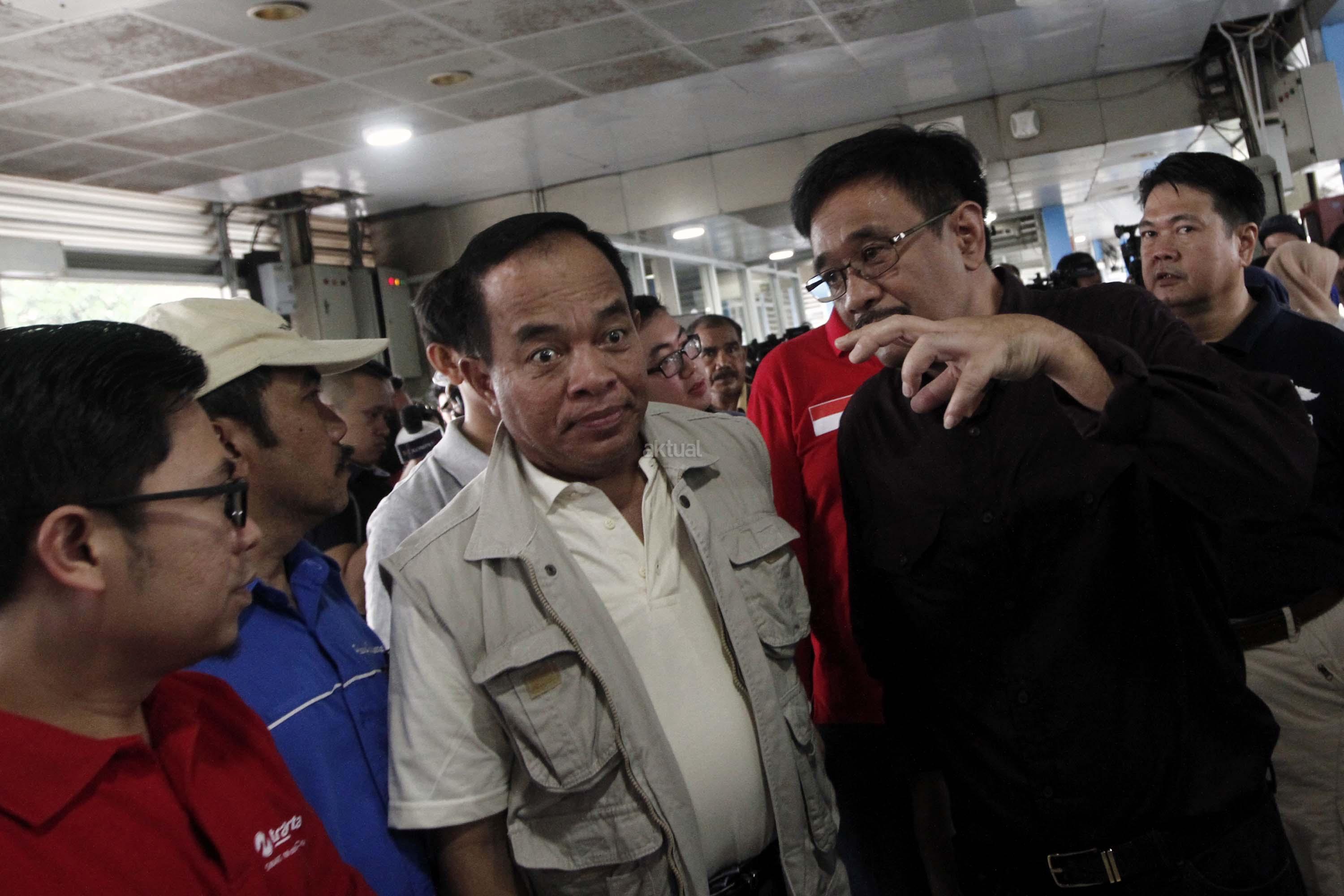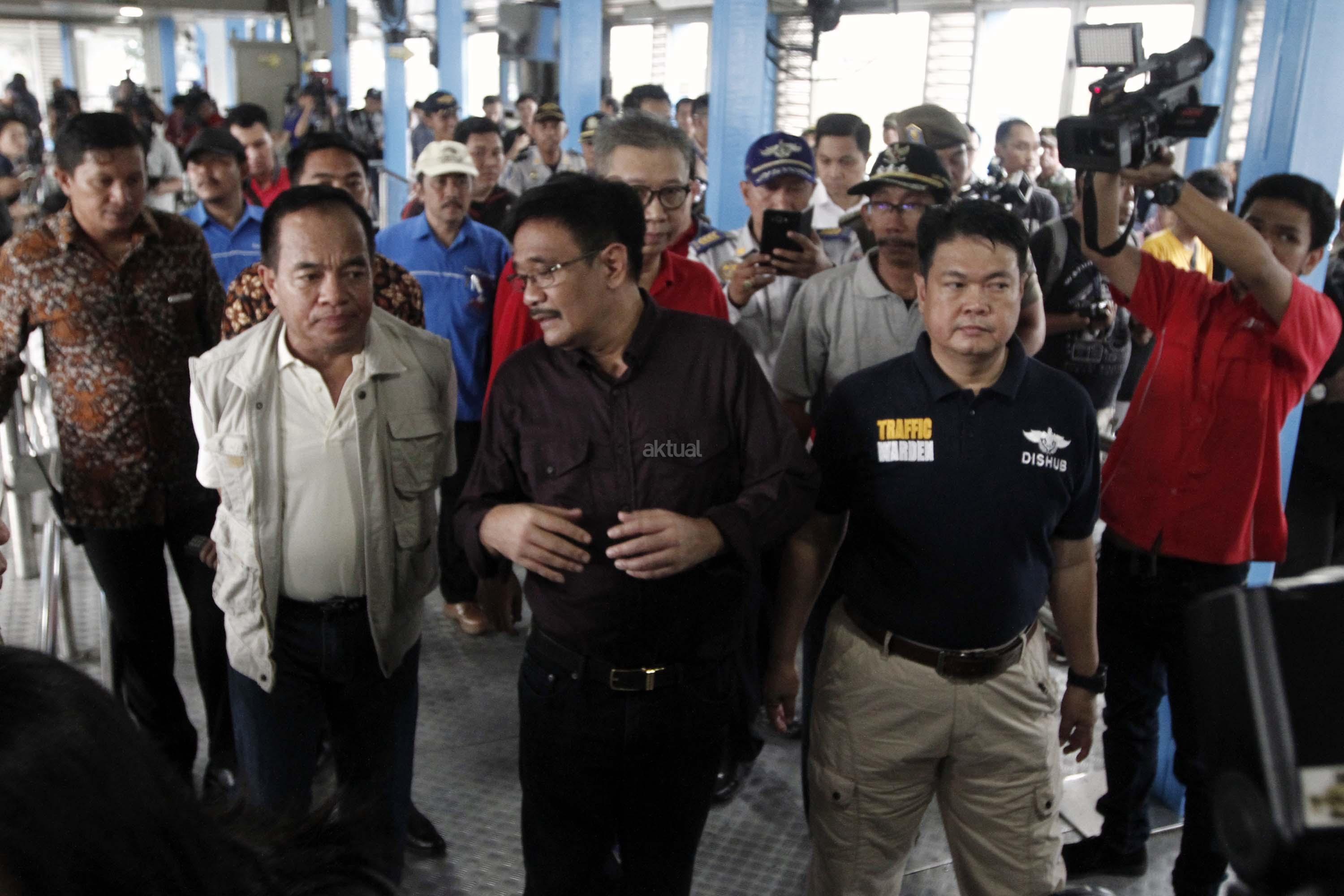 Plt Gubernur DKI Jakarta, Djarot Saiful Hidayat (kiri) meninjau lokasi bom bunuh diri di Halte TransJakarta Koridor 7 Kampung Melayu, Jakarta Timur, Minggu (28/5/2017). Dalam tinjauannya Djarot meminta halte-halte bus Transjakarta dipasangi "metal detector" untuk menjaga keamanan. AKTUAL/Munzir