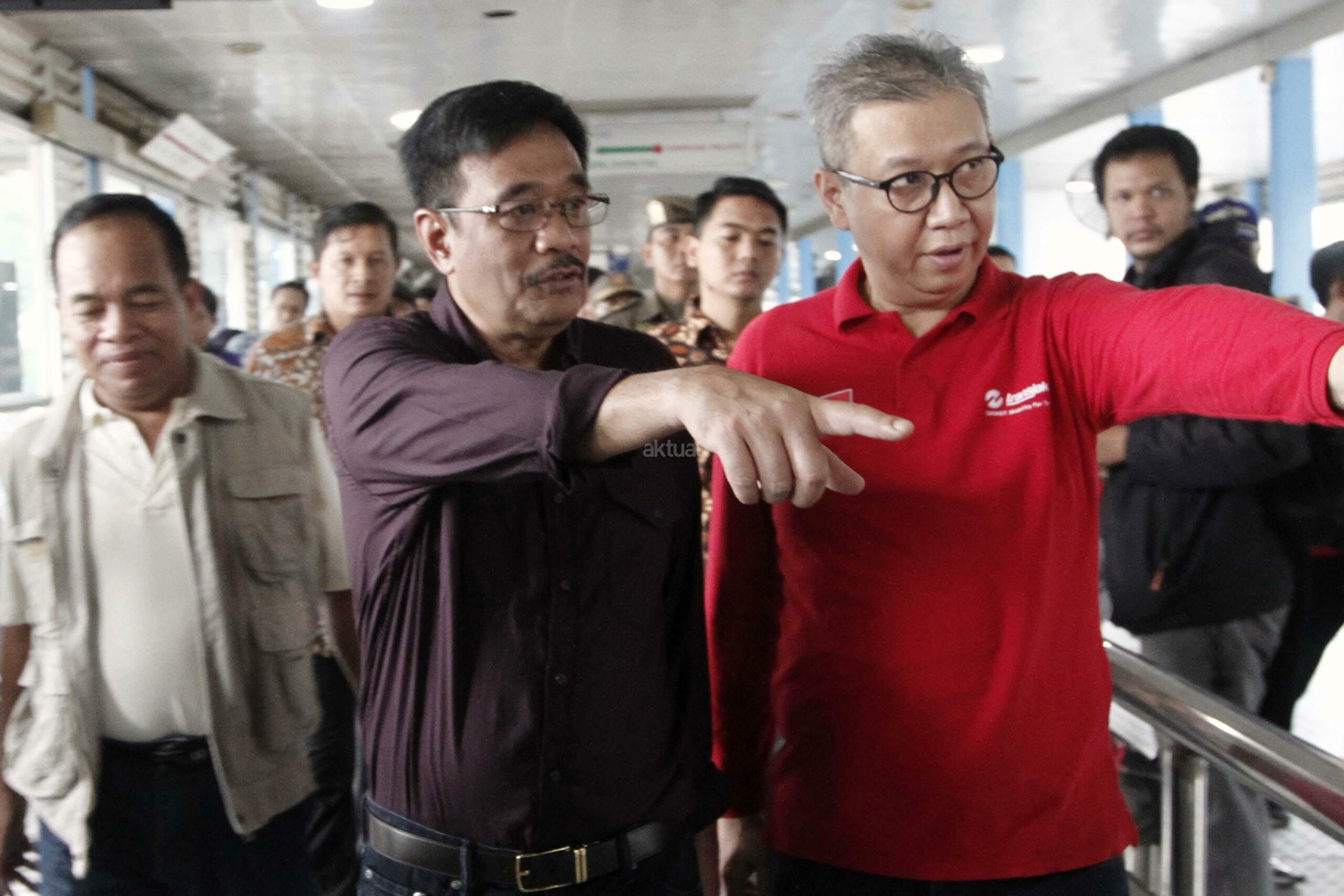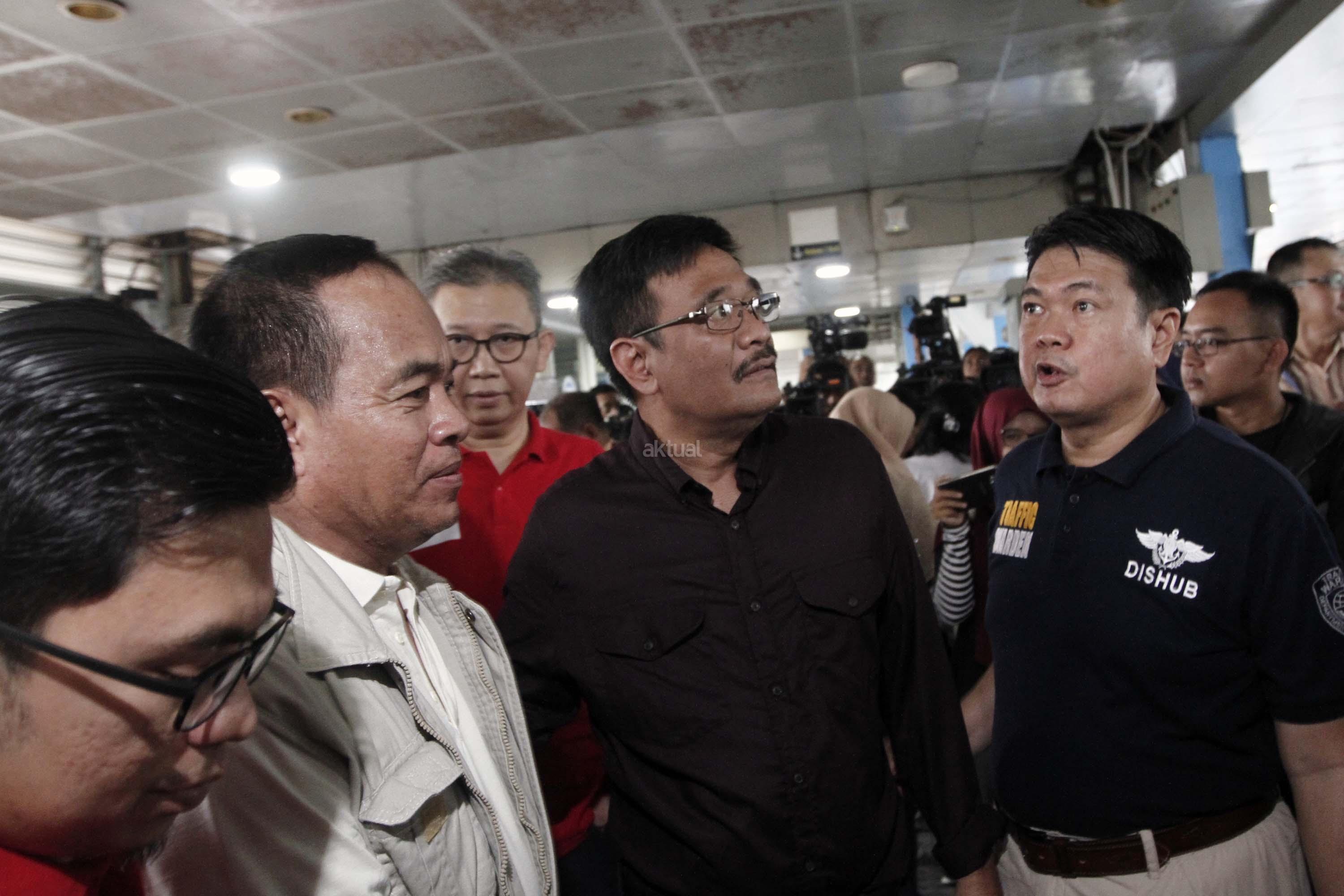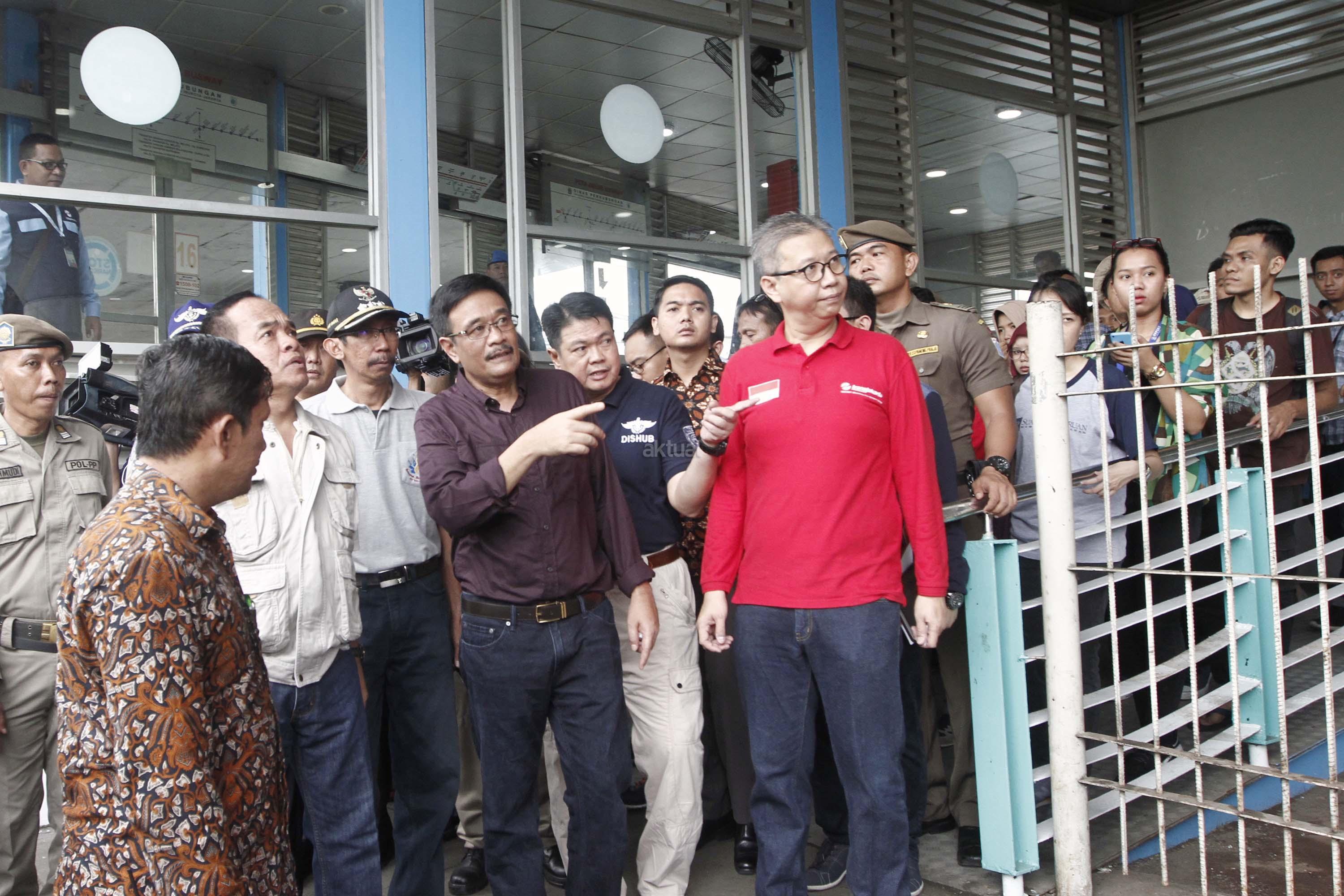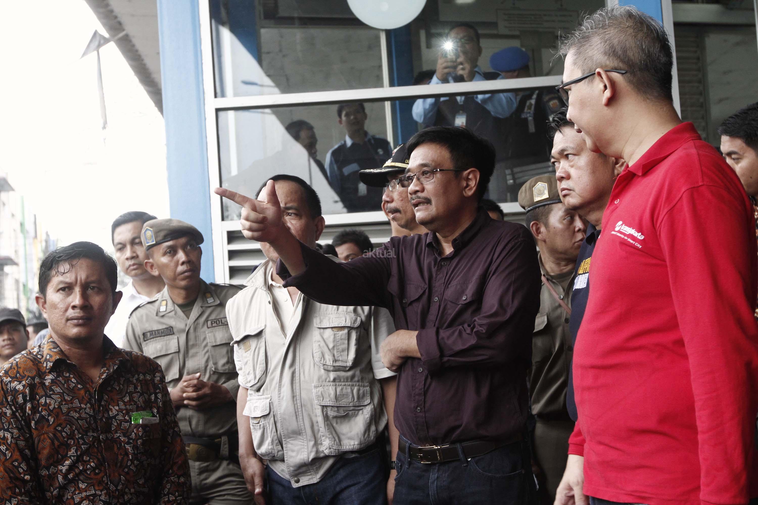 Plt Gubernur DKI Jakarta, Djarot Saiful Hidayat (kiri) meninjau lokasi bom bunuh diri di Halte TransJakarta Koridor 7 Kampung Melayu, Jakarta Timur, Minggu (28/5/2017). Dalam tinjauannya Djarot meminta halte-halte bus Transjakarta dipasangi “metal detector” untuk menjaga keamanan. AKTUAL/Munzir