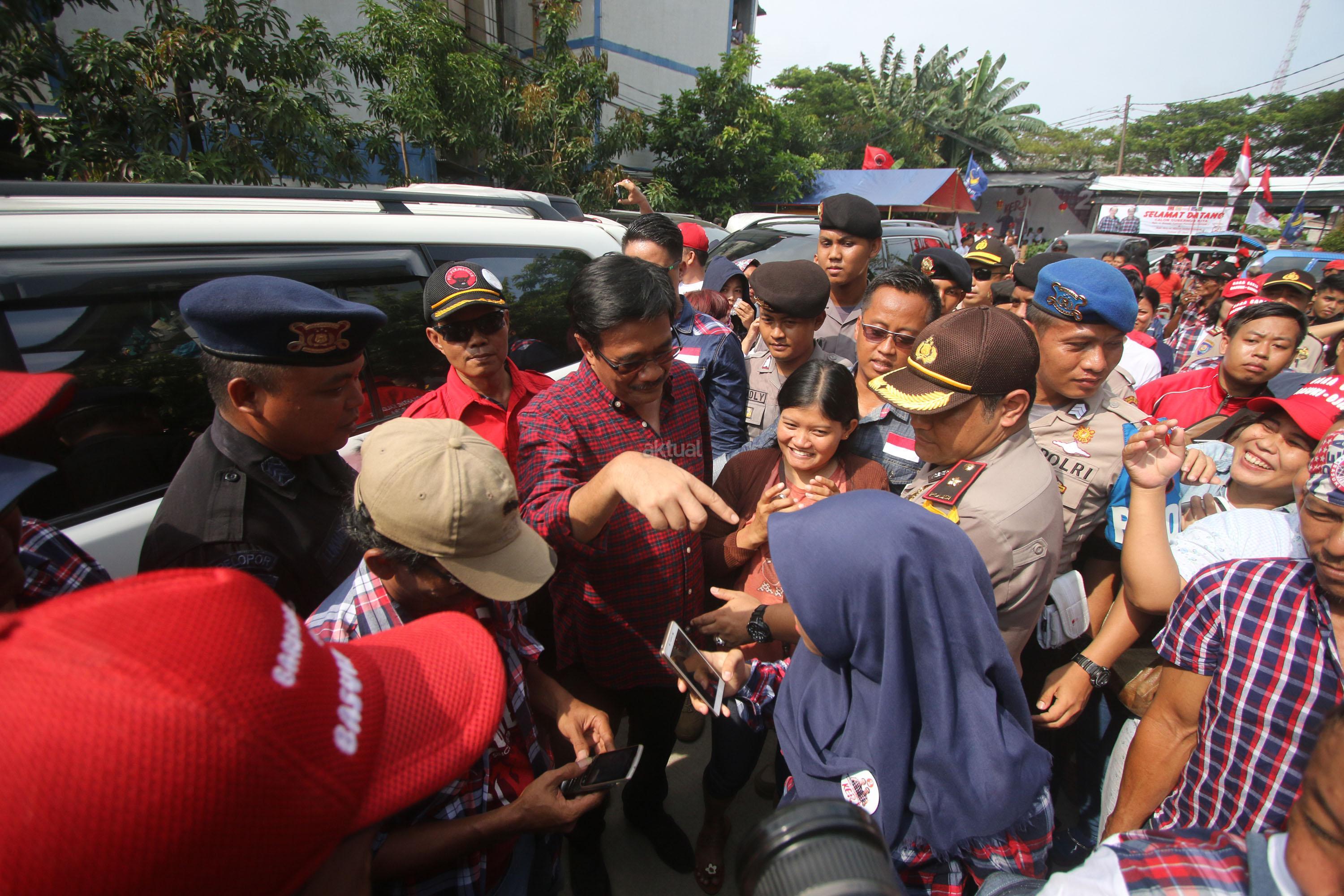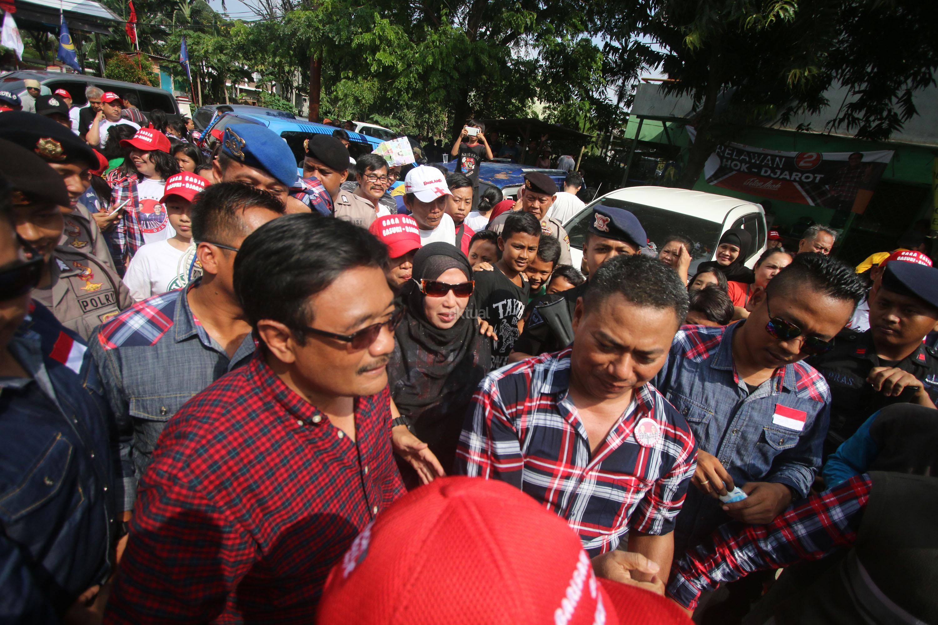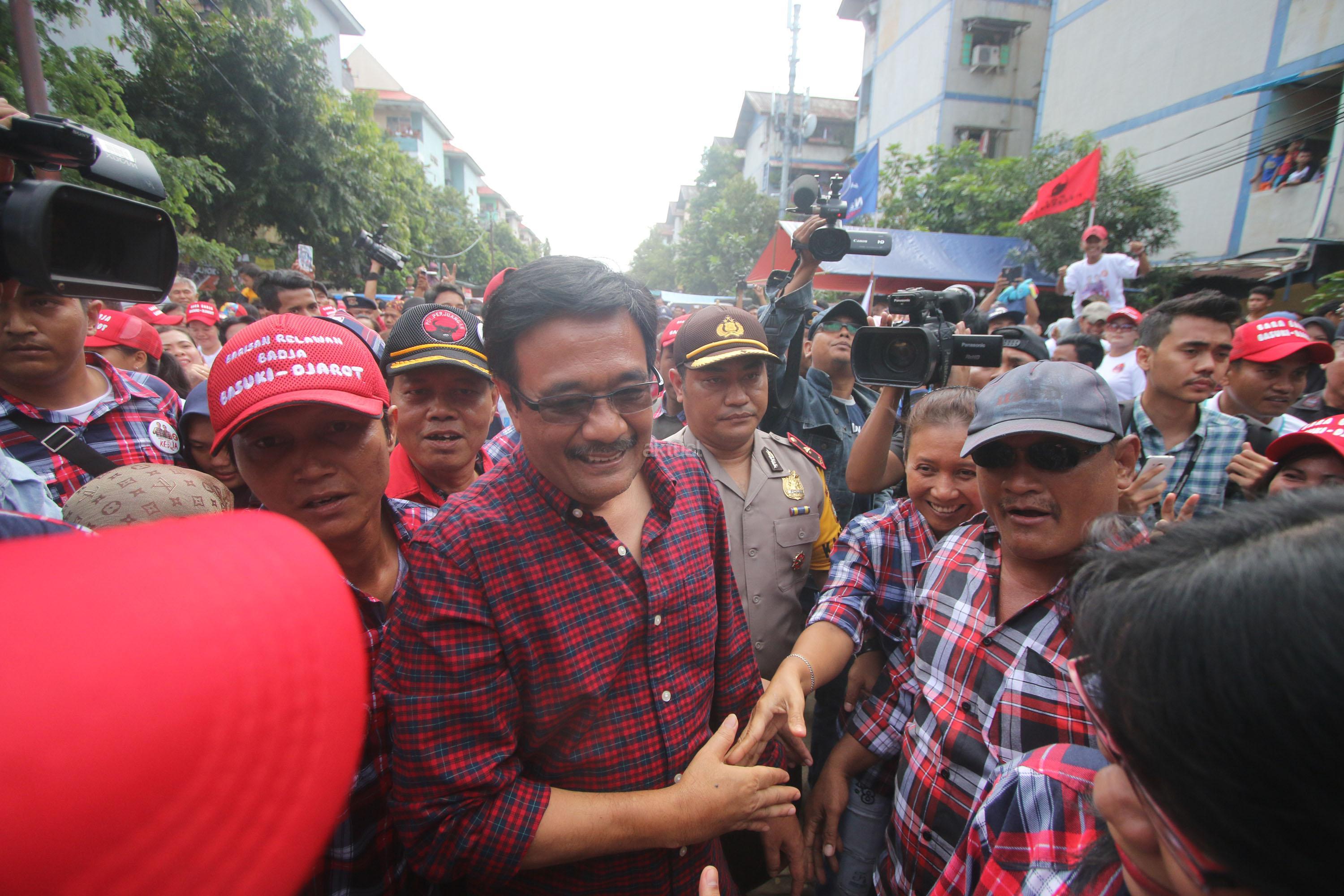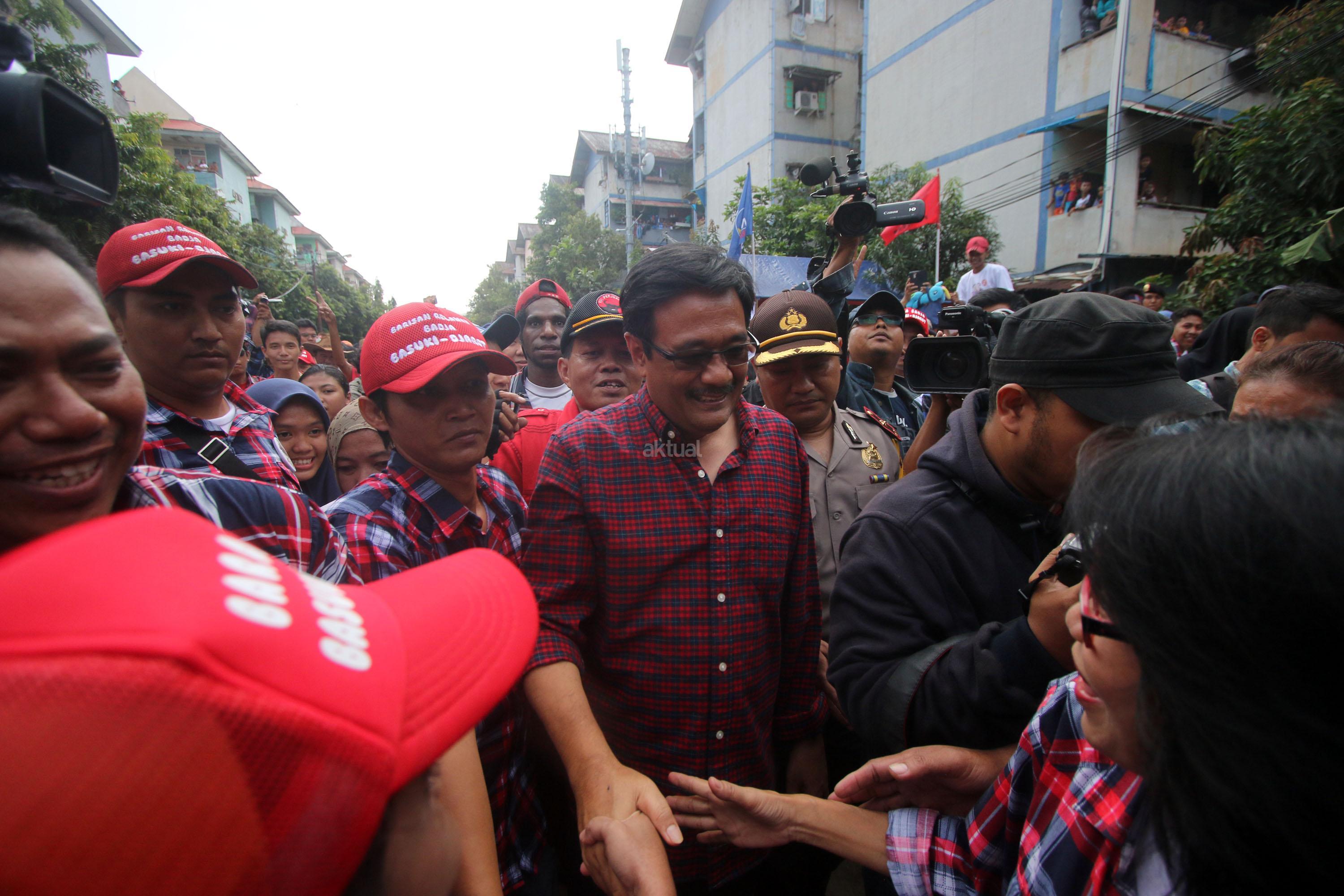 Calon Wakil Gubernur DKI Jakarta Nomor Urut Dua, Djarot Saiful Hidayat menyapa warga saat melakukan blusukan di Rusun Bumi Cengkareng Indah, Jakarta, Sabtu (21/1/2017). Dihadapan Djarot, warga rusun mengatakan kesiapannya untuk memenangkan pasangan calon (paslon) nomor dua, Basuki-Djarot (Badja) dalam satu putaran dan memberikan 90 persen suara. AKTUAL/Tino Oktaviano