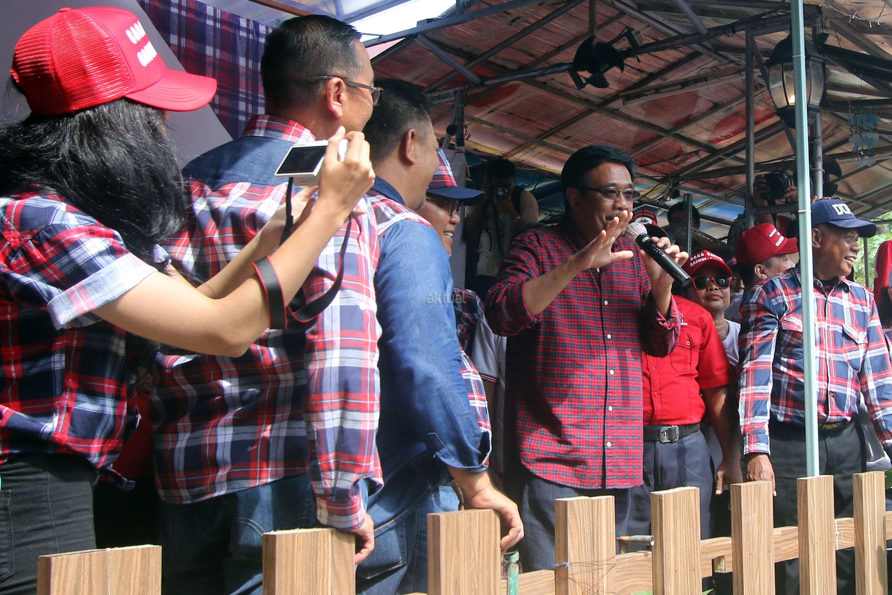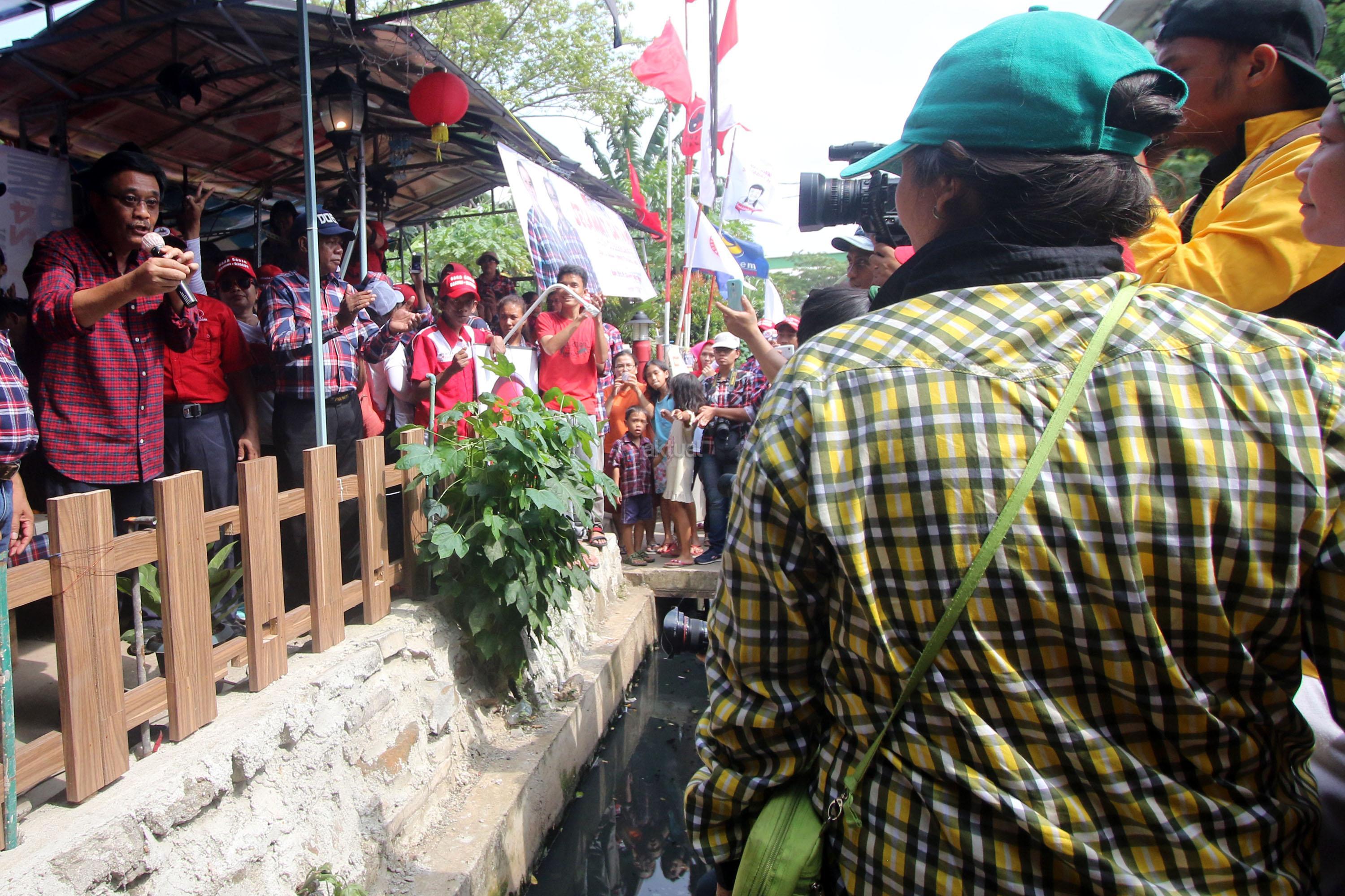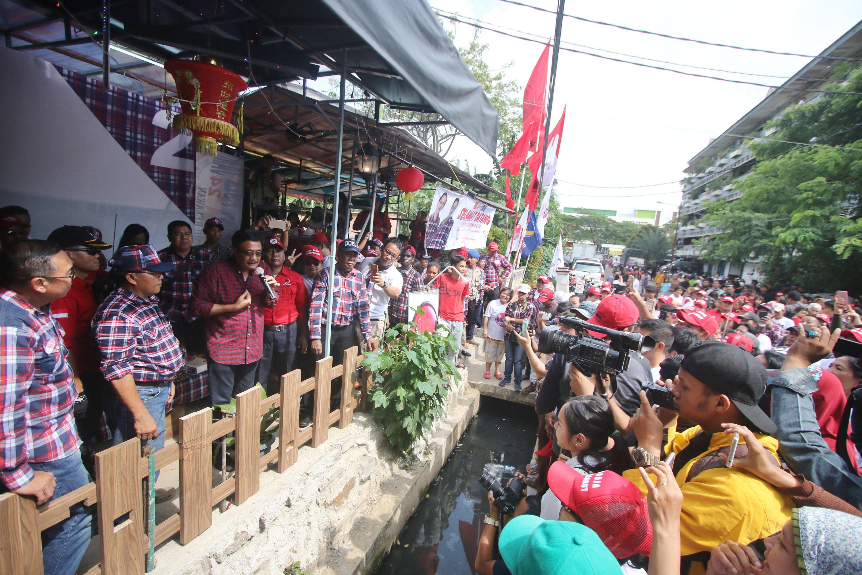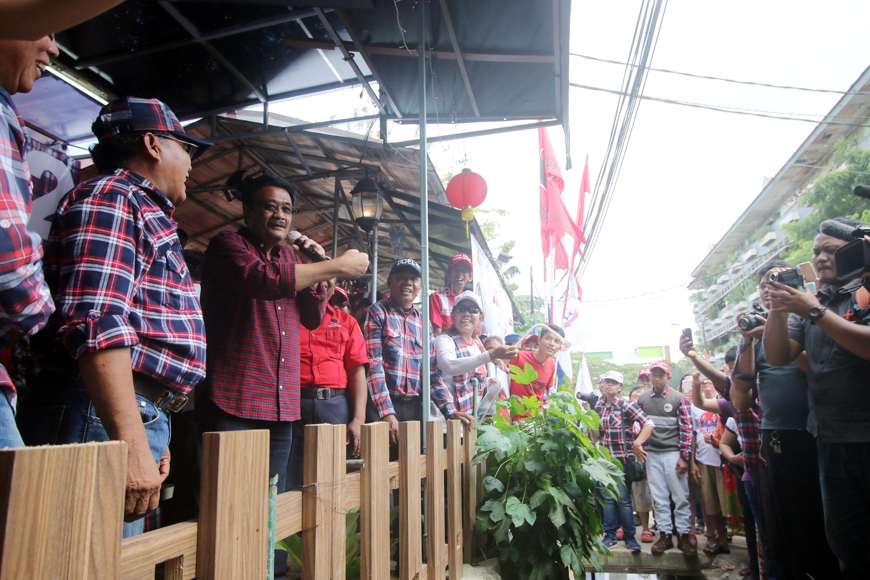 Calon Wakil Gubernur DKI Jakarta Nomor Urut Dua, Djarot Saiful Hidayat menyapa warga saat melakukan blusukan di Rusun Bumi Cengkareng Indah, Jakarta, Sabtu (21/1/2017). Dihadapan Djarot, warga rusun mengatakan kesiapannya untuk memenangkan pasangan calon (paslon) nomor dua, Basuki-Djarot (Badja) dalam satu putaran dan memberikan 90 persen suara. AKTUAL/Tino Oktaviano