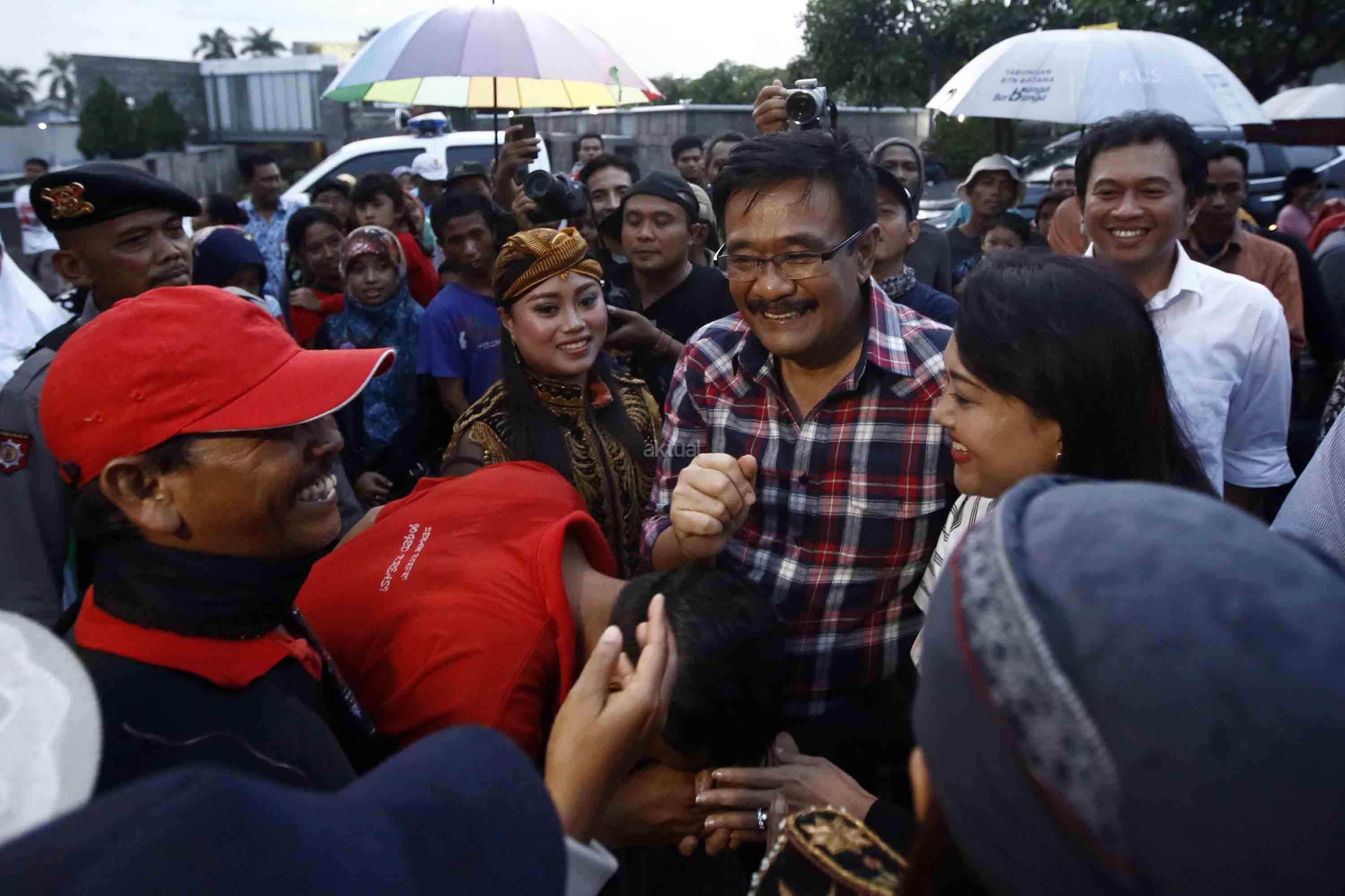 Wakil Gubernur DKI Jakarta, Djarot Saiful Hidayat beserta Istri Happy Farida Hidayat menyapa warga usai melakukan ziarah kebangsaan di makam Presiden pertama RI, Ir Soekarno di Blitar, Jawa Timur, Kamis (10/11/2016). Moment peringatan hari pahlawan dimanfaatkan Djarot untuk melaksanakan ziarah kebangsaan untuk menghormati jasa pahlawan sambil berintropeksi diri untuk mengisi kemerdekaan. AKTUAL/HO