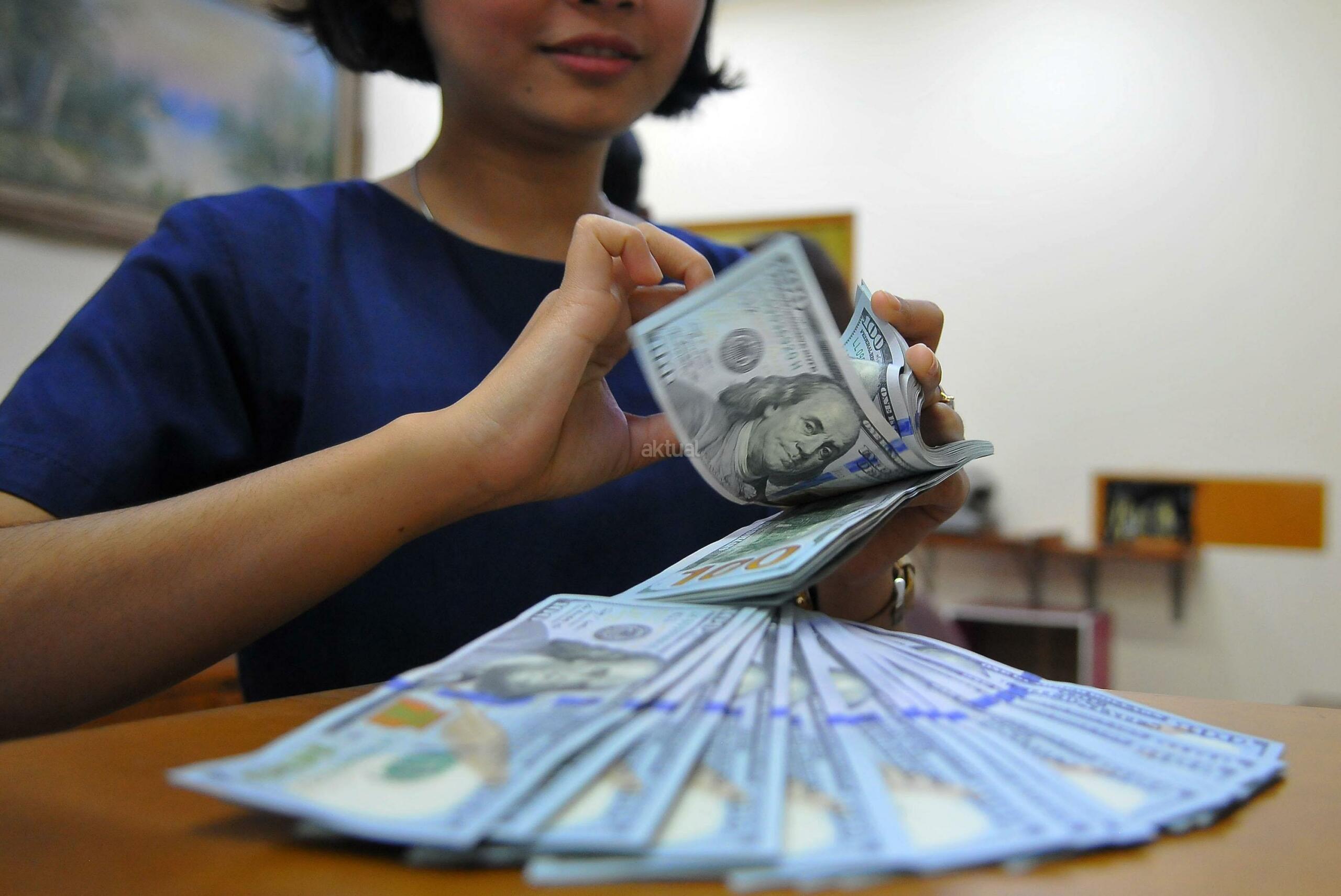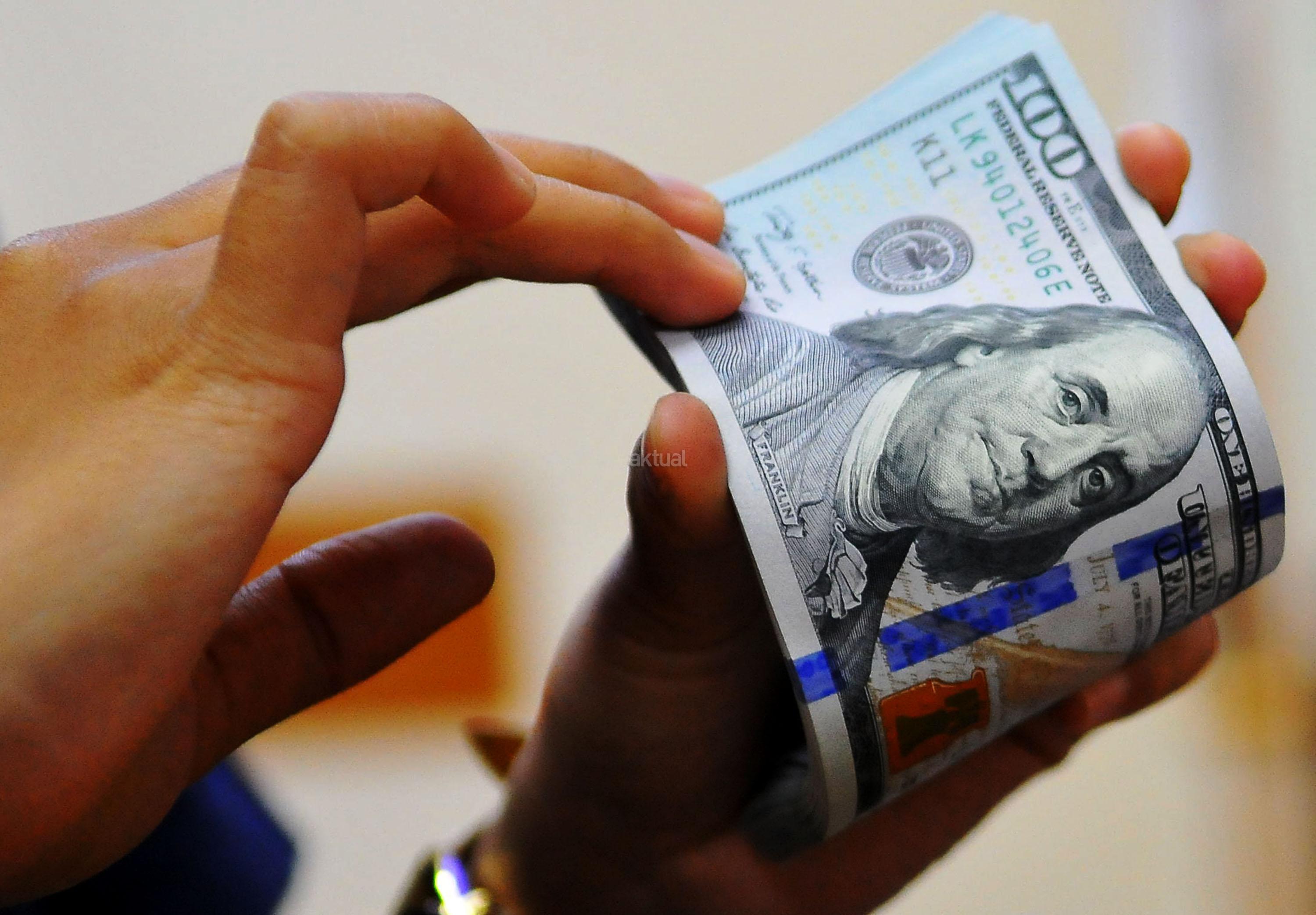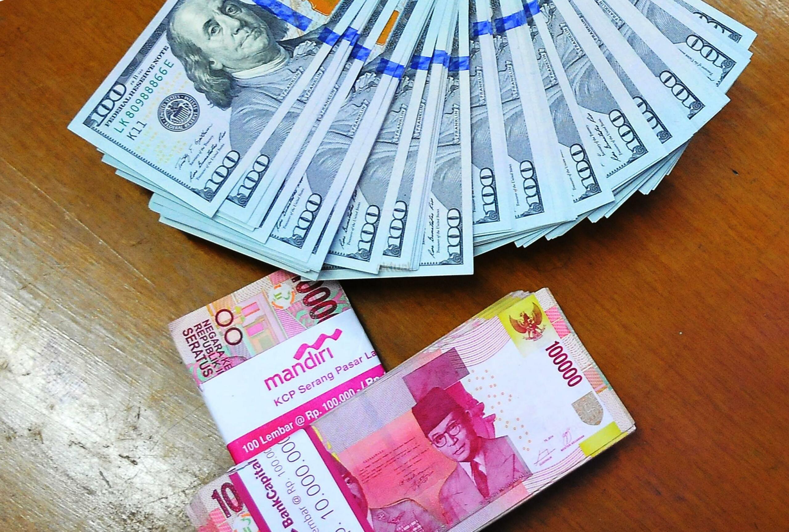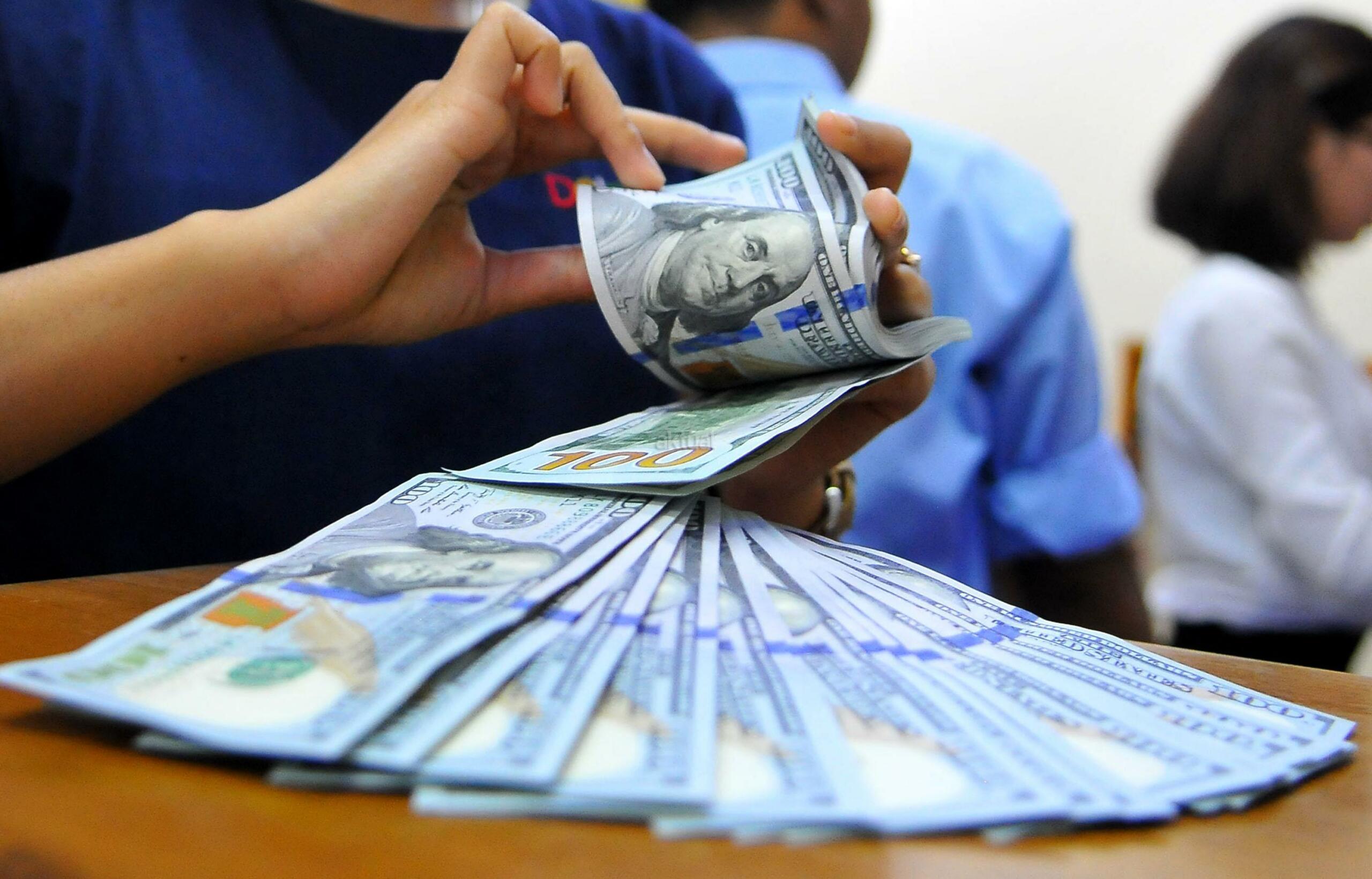 Karyawan penukaran mata uang asing menunjukkan mata uang dolar dan mata uang rupiah di penukaran uang di Jakarta, Rabu (9/11). Nilai tukar rupiah terhadap dolar Amerika Serikat (AS) pada saat jeda siang ini kian terpuruk di zona merah. Rupiah ditutup terapresiasi tipis 0,02% atau 2 poin ke level Rp13.084 per dolar AS setelah diperdagangkan pada kisaran Rp13.058 – Rp13.099 per dolar AS. AKTUAL/Tino Oktaviano