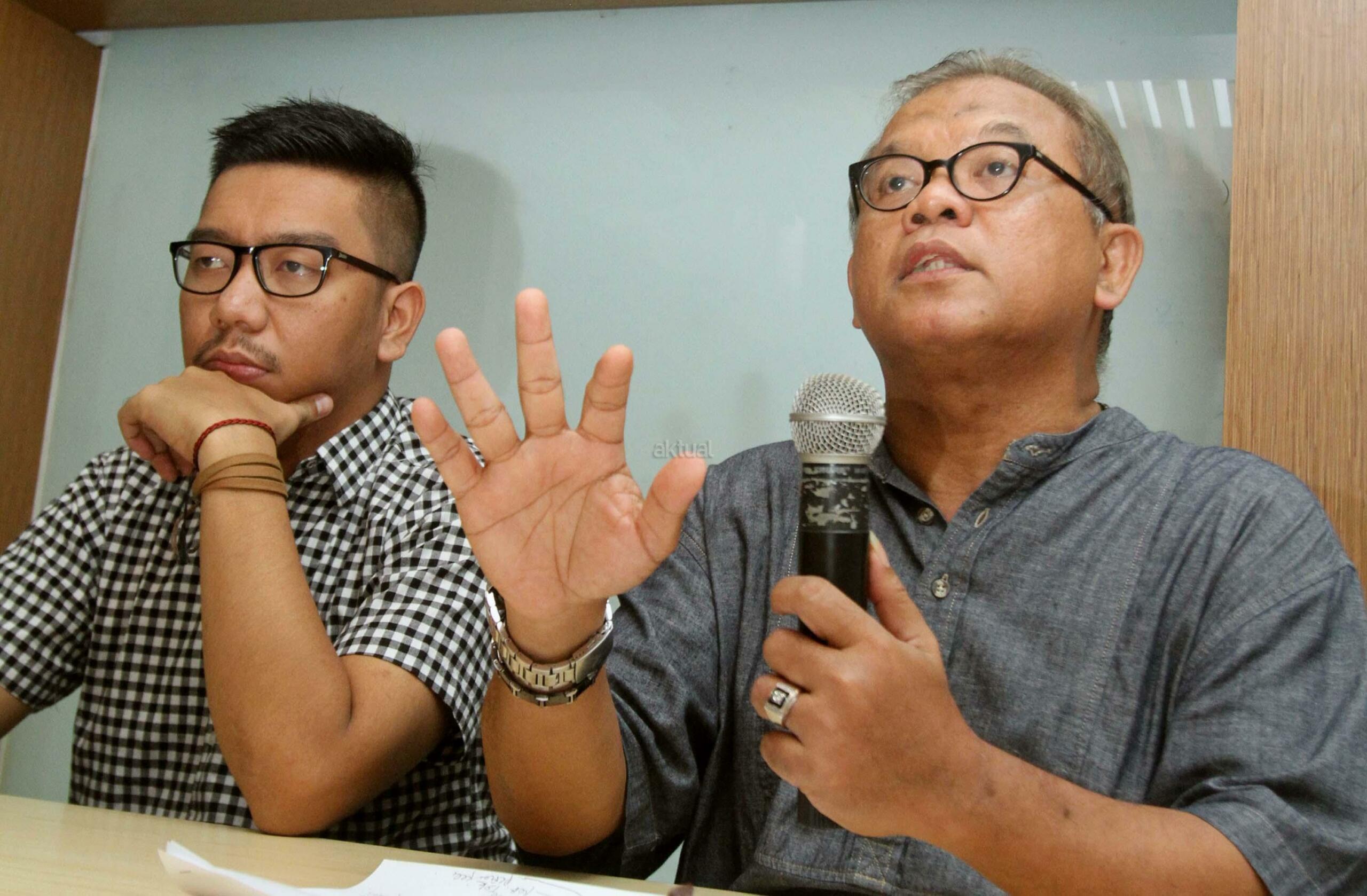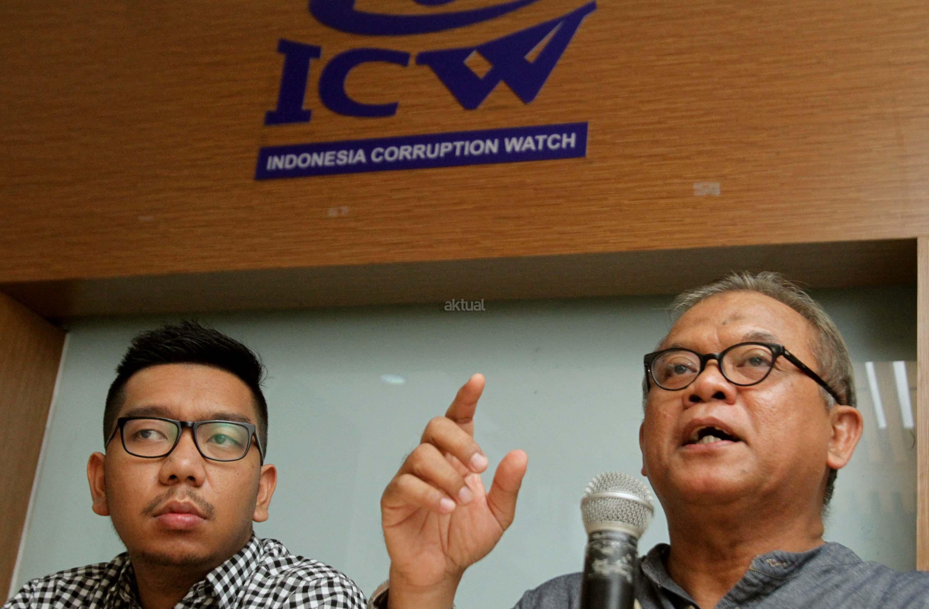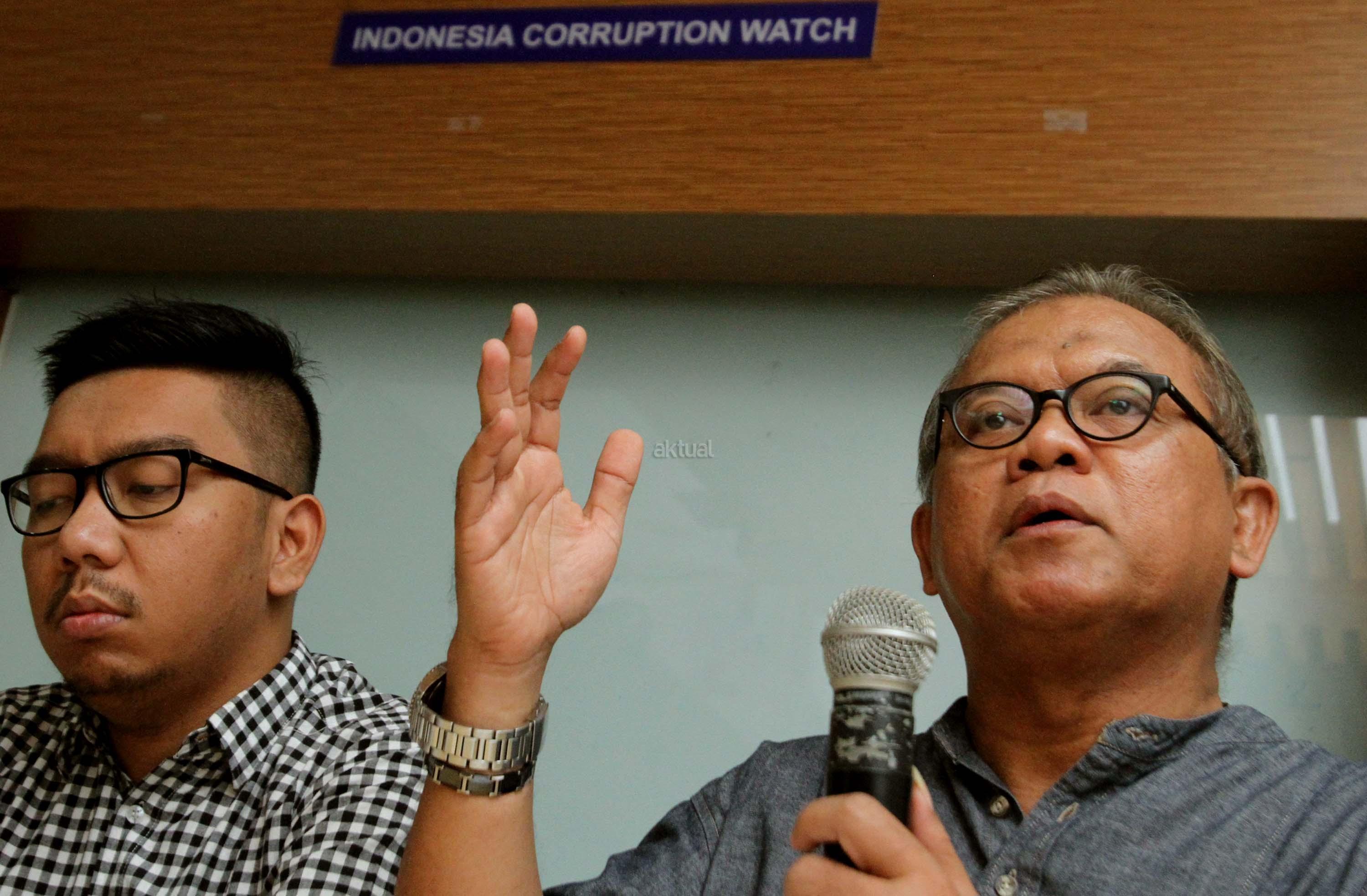 Akademisi ilmu hukum Abdul Fickar Hadjar (kanan), bersama Peneliti Indonesia Corruption Watch (ICW) Kurnia Ramadhana (kiri), berbicara saat diskusi Mendorong Independensi Hakim Dalam Penanganan Korupsi Proyek e KTP di Jakarta, Minggu (30/7/2017). ICW berharap jangan sampai ada tawar menawar antara pengadilan dengan pihak di perleman terkait penanganan kasus korupsi e-KTP. AKTUAL/Munzir