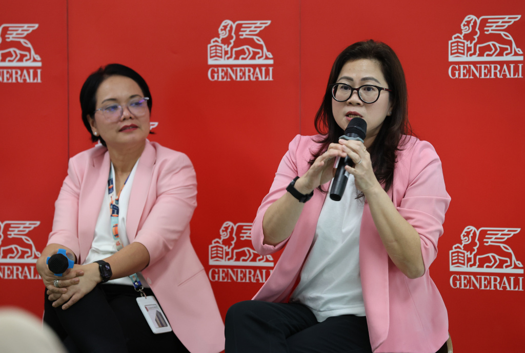 Chief Product Management and Marketing Officer Generali Indonesia, Jong Wie Siu (kanan) bersama Veranita Director of Enterprise and Business Service Telkom Indonesia yang juga former CEO PT AirAsia Indonesia, Yosephine (kiri) saat acara talkshow dengan tema ‘Women Leading with Impact’ yang diselenggarakan di Kantor Pusat Generali Indonesia, Jakarta, Rabu (1/4/2026).