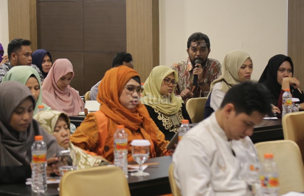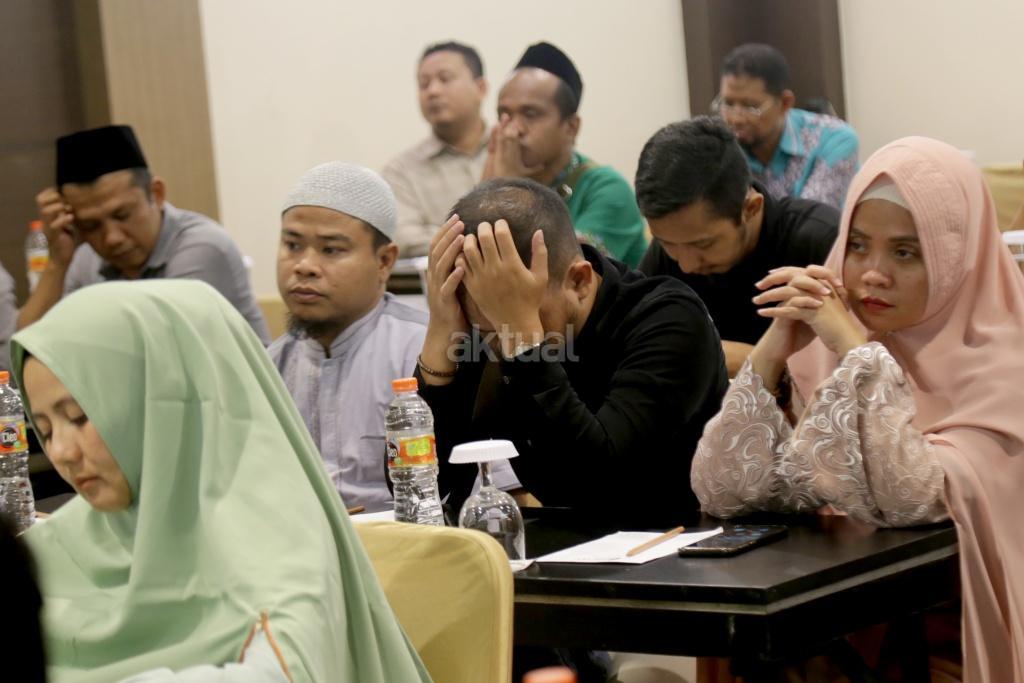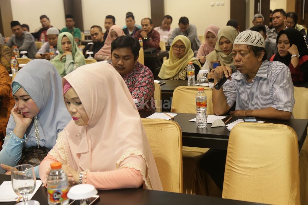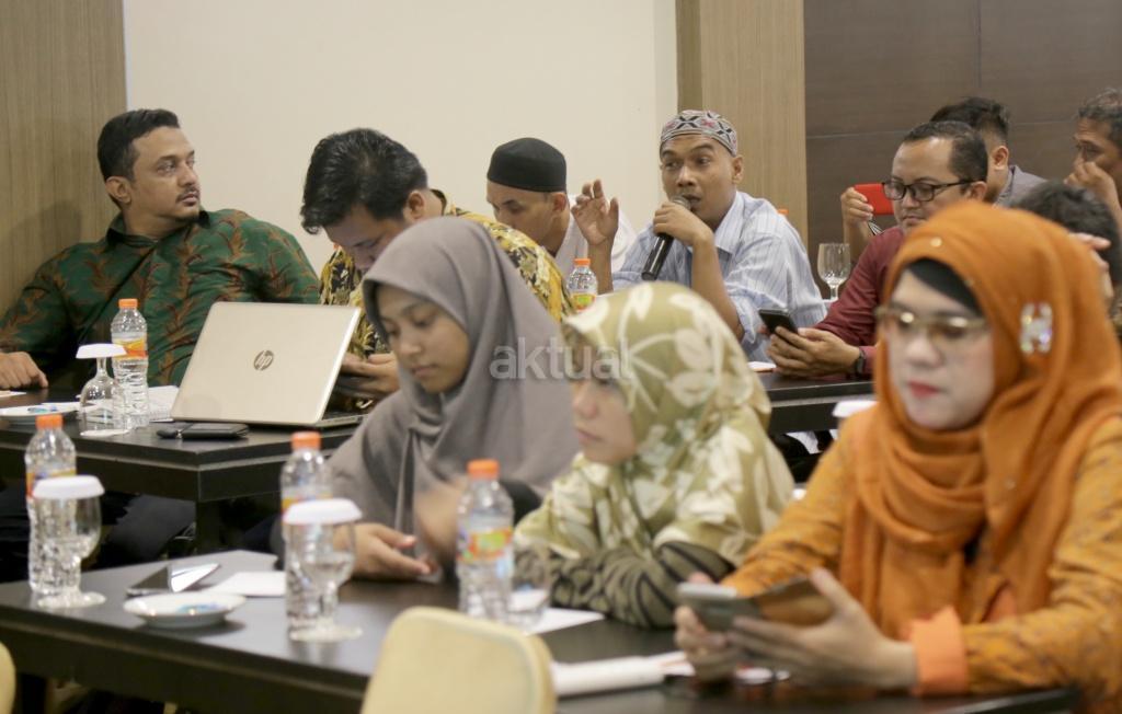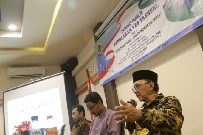 Sejumlah peserta melakukan Diskusi Penolakan VFS Tasheel di Hotel Sopyan, Jalan Soepomo, Jakarta Selatan, Jumat (28/12/2018). Dalam diskusi tersebut sejumlah pemilik travel umrah mendorong pemerintah melalui DPR untuk menolak VFS Tasheel terkait penerbitan visa haji dan umrah yang dikaitkan dengan perekaman biometrik. Agar tidak membebani calon jemaah haji, Indonesia meminta agar Pemerintah Saudi Arabia tidak menerapkan kebijakan tersebut. AKTUAL/Tino Oktaviano