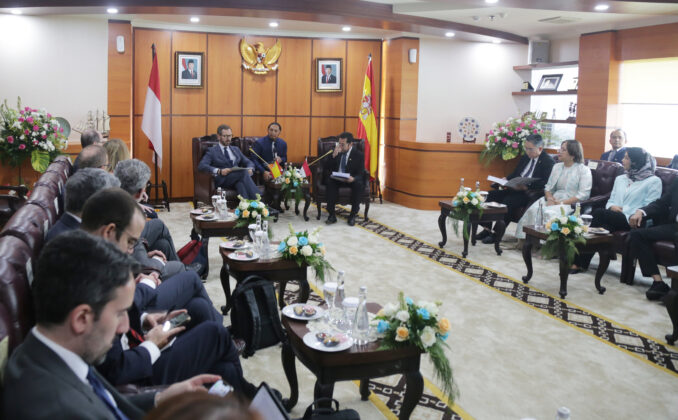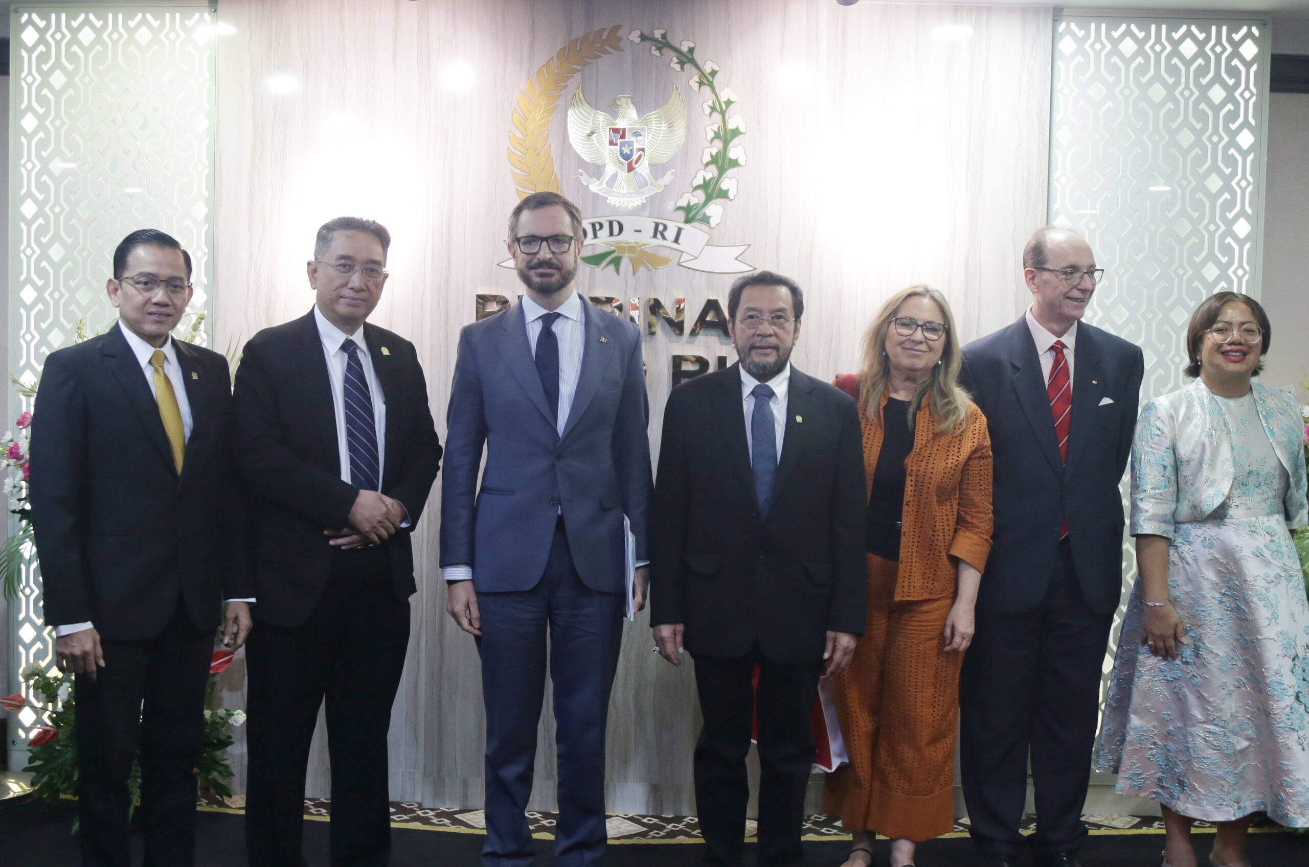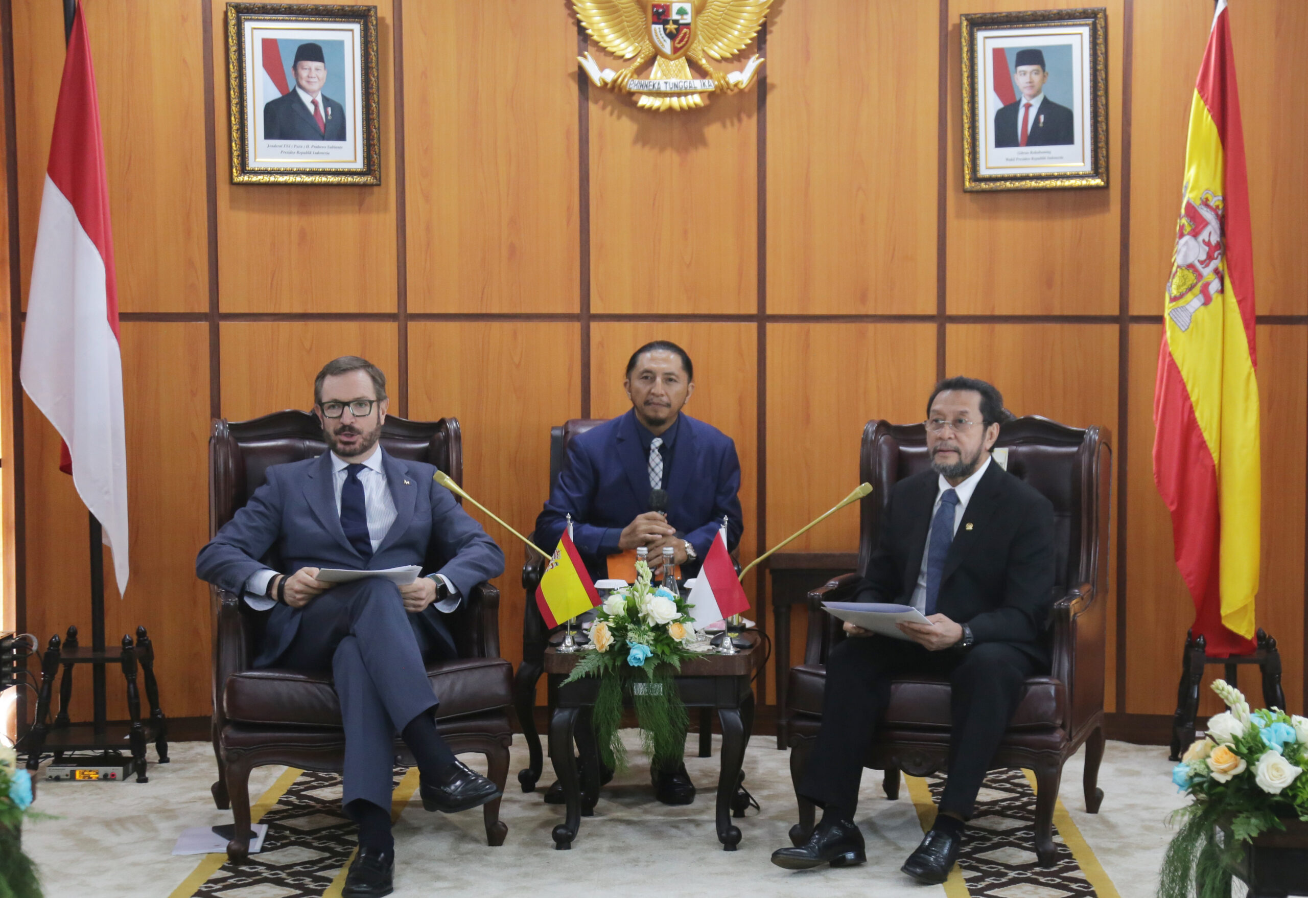 Wakil Ketua DPD RI Yorris Raweyai (kanan) saat menerima Delegasi Senator Spanyol yang dipimpin Javier Maroto Aranzabal di ruang Delegasi DPD RI, Senayan, Jakarta, Jumat (20/6/2025).