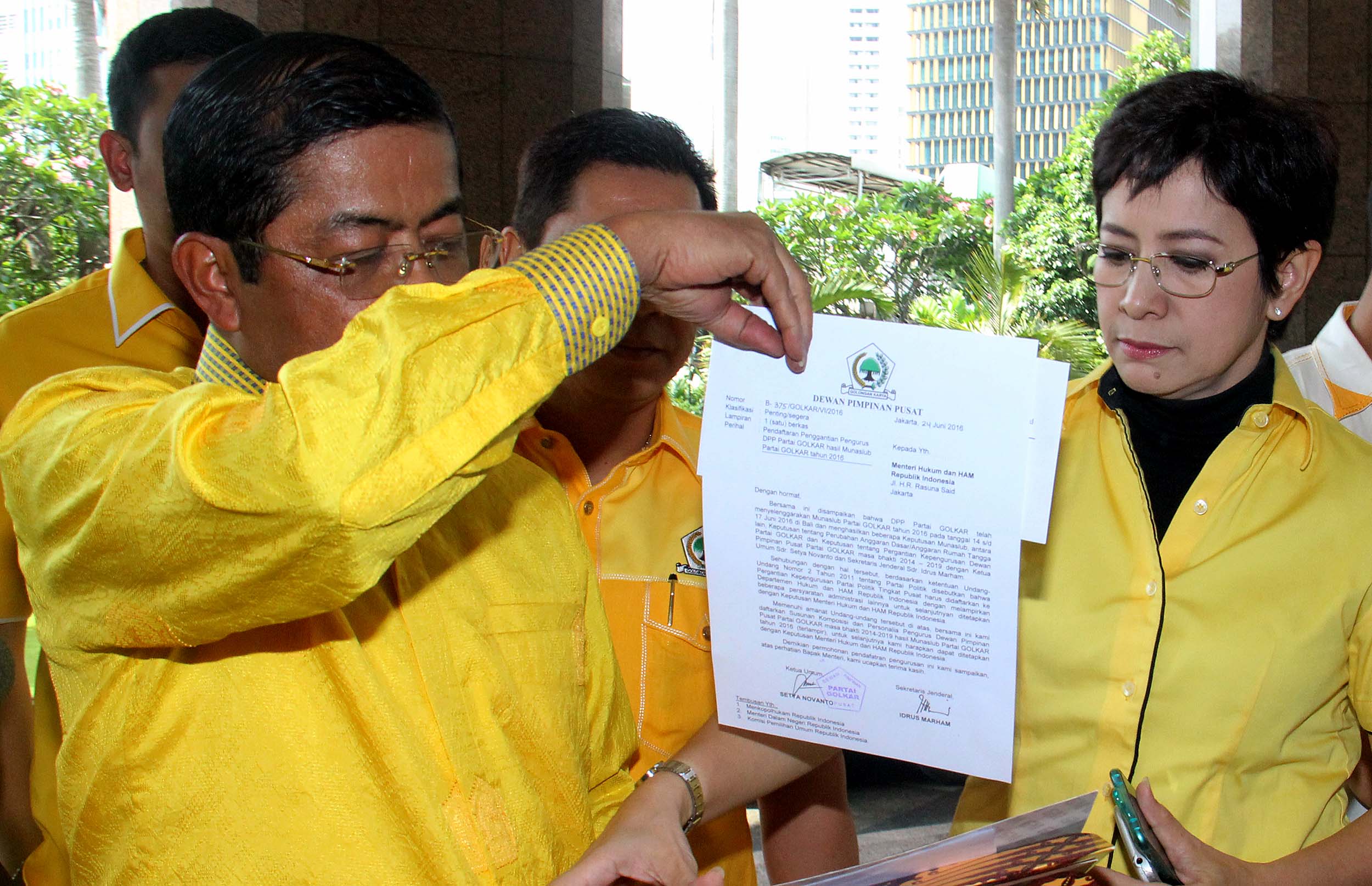 Dewan Pimpinan Pusat (DPP) Partai Golkar mendaftarkan kepengurusan hasil Musyawarah Nasional Luar Biasa (Munaslub) ke Kementerian Hukum dan HAM (Kemenkumham).