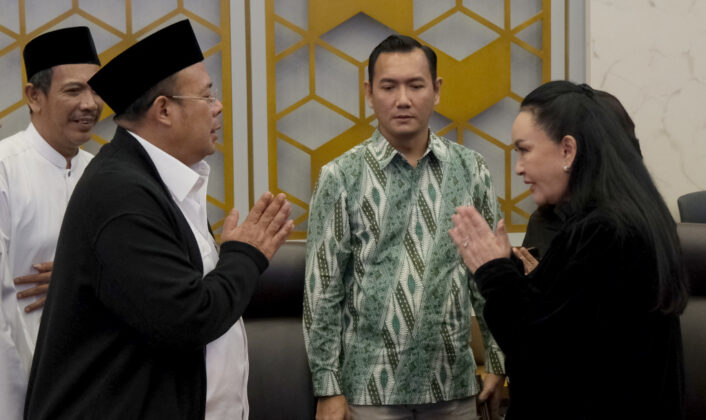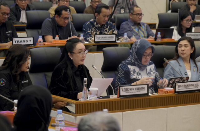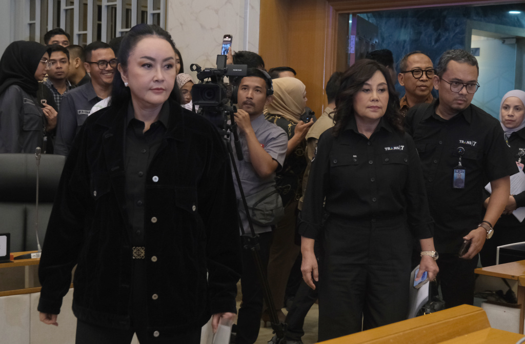 Dirut Trans TV Atiek Nur Wahyuni (kiri) saat pertemuan antara Kementerian Komunikasi dan Digital, Komisi Penyiaran Indonesia (KPI), Trans7, dan Himpunan Alumni Santri Lirboyo di kompleks parlemen, Senayan, Jakarta, Kamis (16/10/2025). Aktual/TINO OKTAVIANO