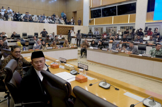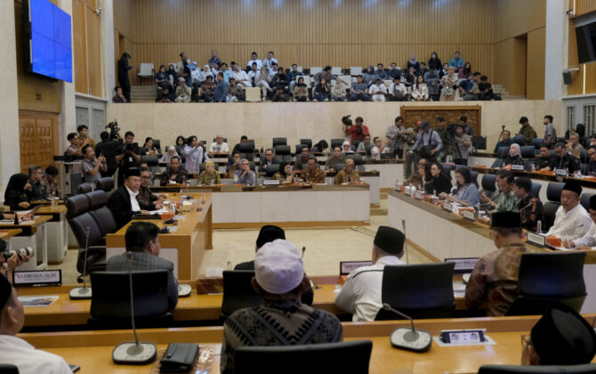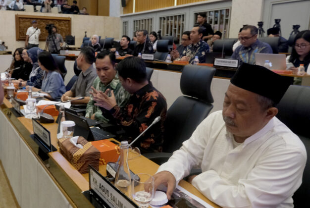 Kementerian Komunikasi dan Digital, Komisi Penyiaran Indonesia (KPI), Trans7, dan Himpunan Alumni Santri Lirboyo di kompleks parlemen, Senayan, Jakarta, Kamis (16/10/2025). Aktual/TINO OKTAVIANO