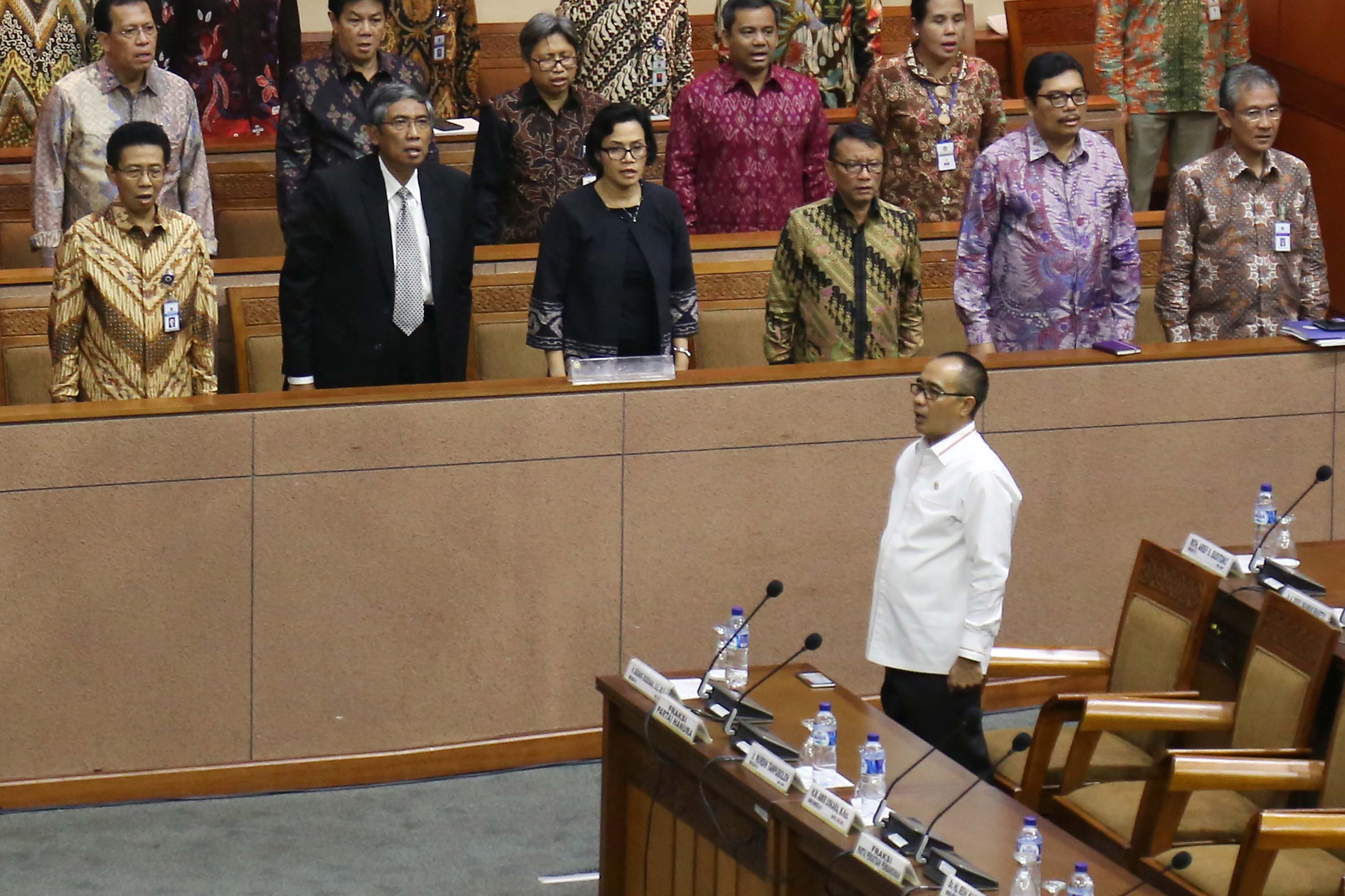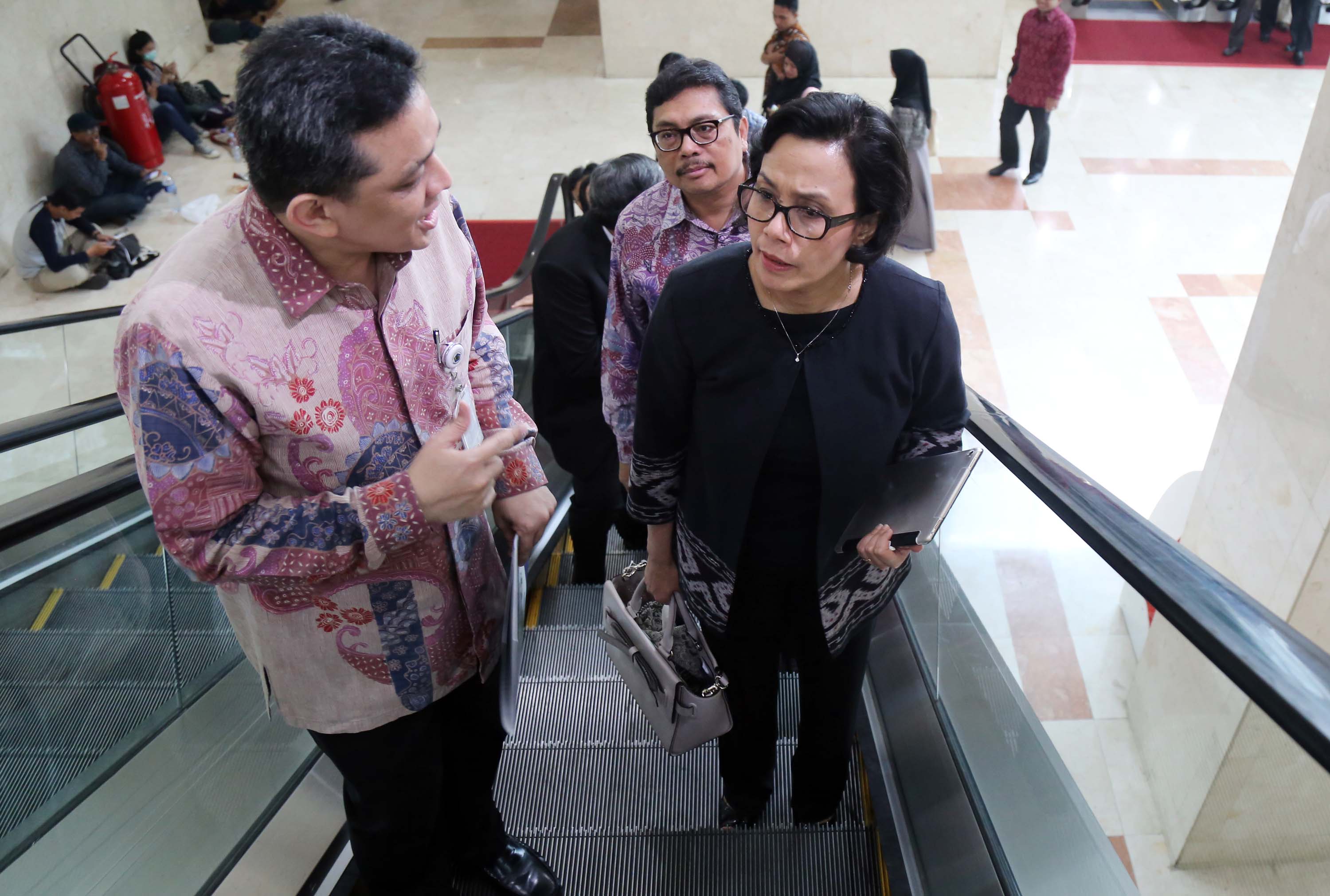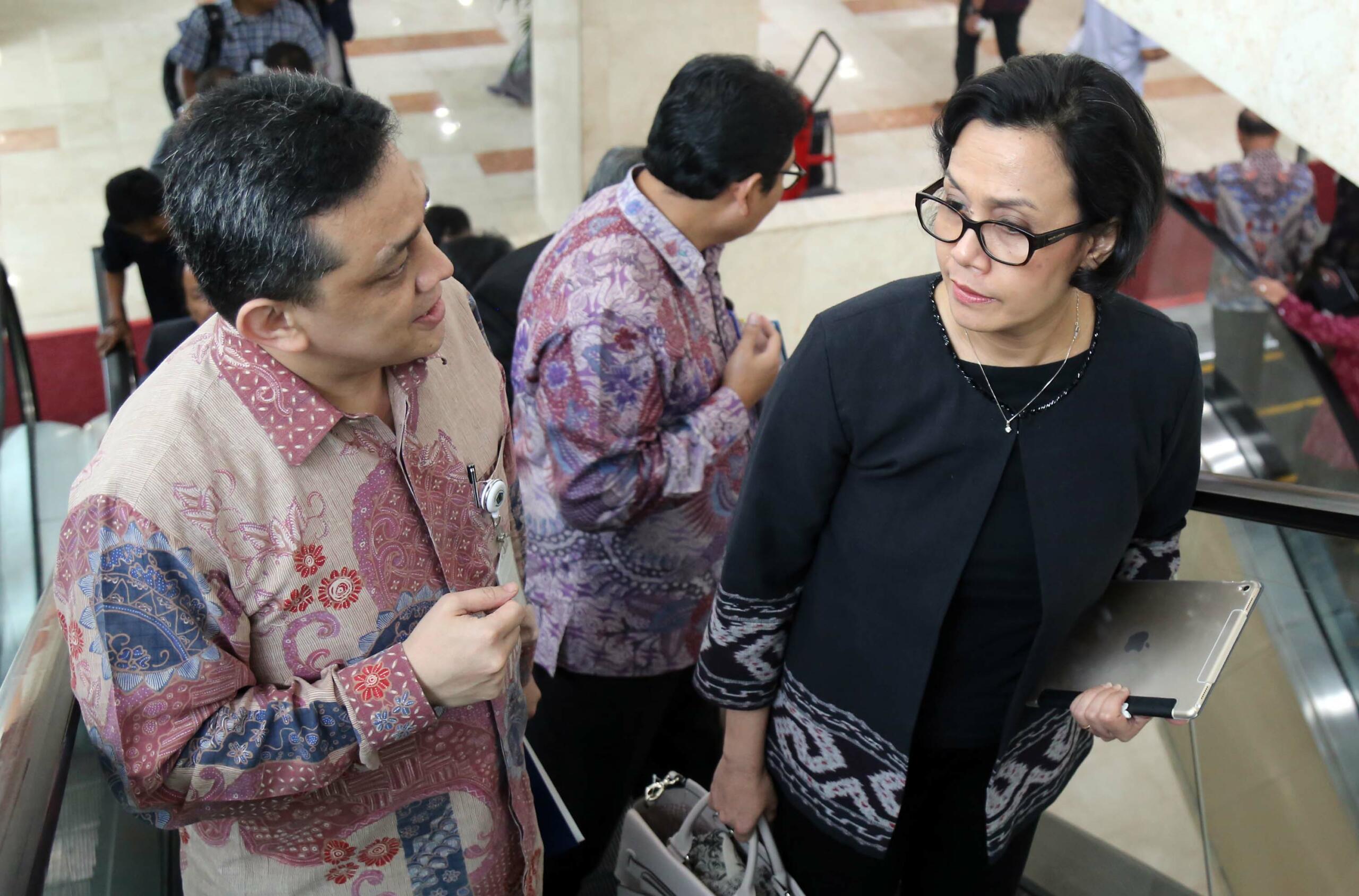 Menteri Keuangan Sri Mulyani saat akan rapat paripurna membahas Rencana Anggaran Pendapatan dan Belanja Negara (R-APBN) 2017 di gedung Parlemen, Senayan, Jakarta, Selasa (30/8). Pembahasan Rencana Anggaran R-APBN 2017 ini mendengarkan jawaban pemerintah terhadap pandangan fraksi-fraksi yang akan dilakukan persetujuan tingkat dua terhadap pertanggungjawaban pelaksanaan APBN 2015. AKTUAL/TINO OKTAVIANO