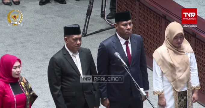“Selanjutnya marilah kita mengikuti pelantikan anggota pengganti antarwaktu DPR RI, kepada Sekjen DPR kami persilakan menyelenggarakan upacara pelantikan anggota pengganti antarwaktu DPR RI,” kata Dasco saat rapat paripurna.