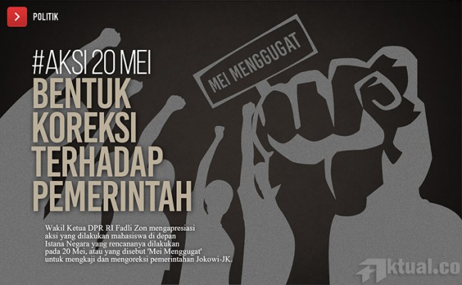 Jakarta, Aktual.co — Wakil Ketua DPR RI Fadli Zon menyebut mahasiswa memang seharusnya mengoreksi pemerintah melalui aksi yang rencananya dilakukan pada 20 Mei, atau yang disebut ‘Mei Menggugat’.