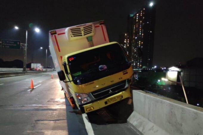 Kejadian dilaporkan pukul 05.40 WIB saat truk bernomor polisi Z 8287 YD dan truk B 9526 UXU terlibat tabrakan di KM 19,400 arah ke Pluit.