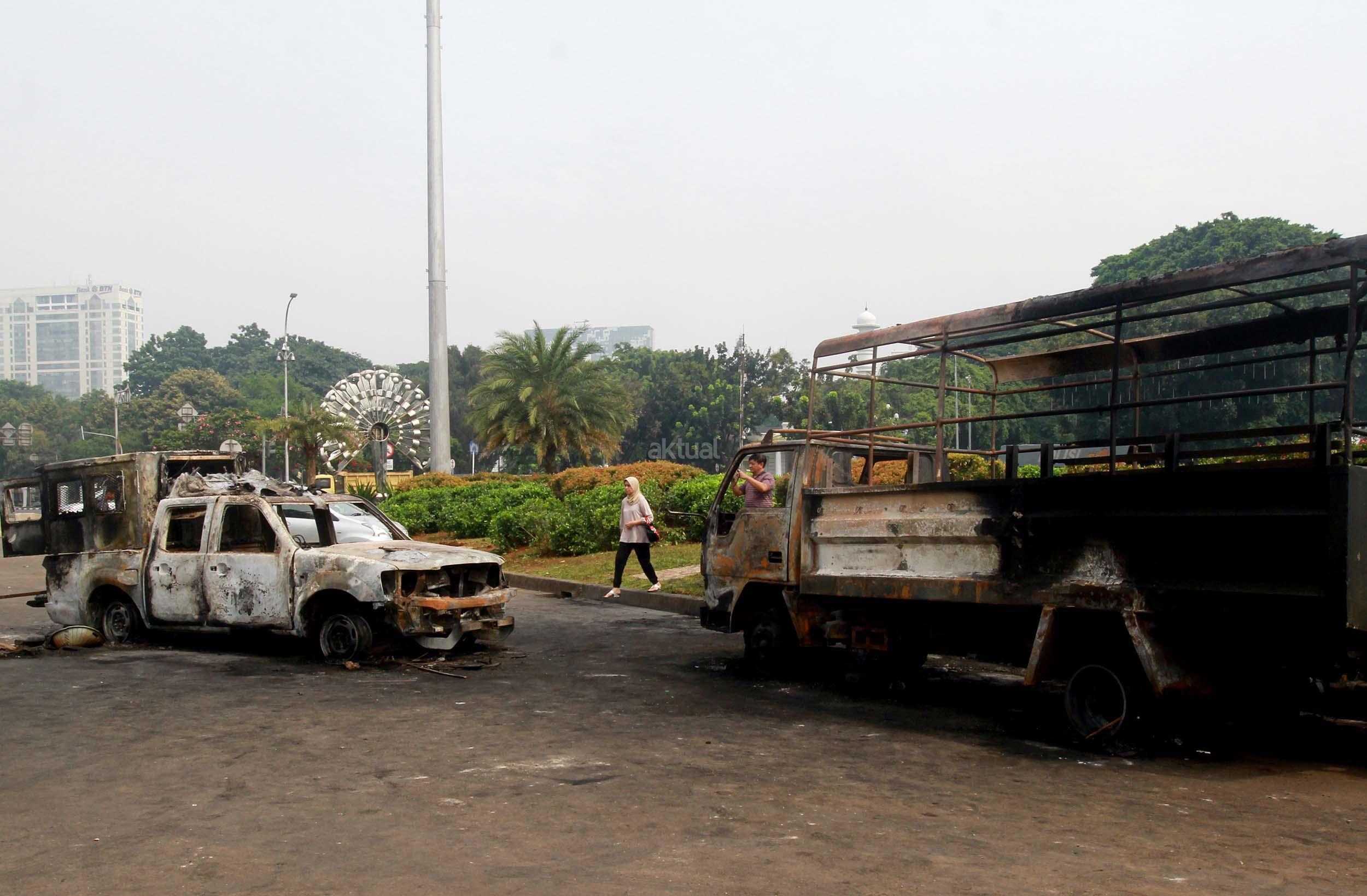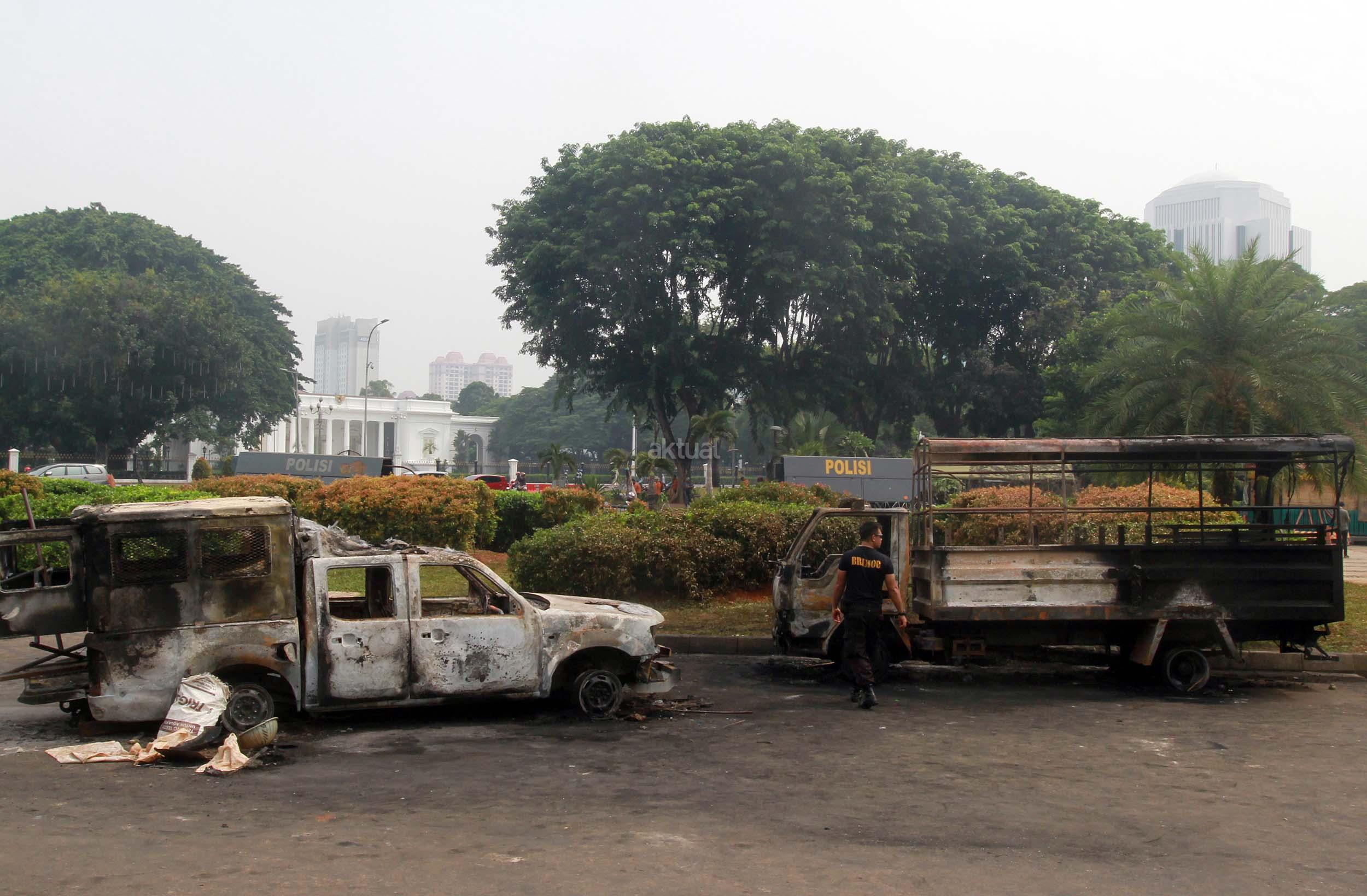 Dua Mobil Dinas Kepolisian yang Terbakar Terparkir di Depan Istana
