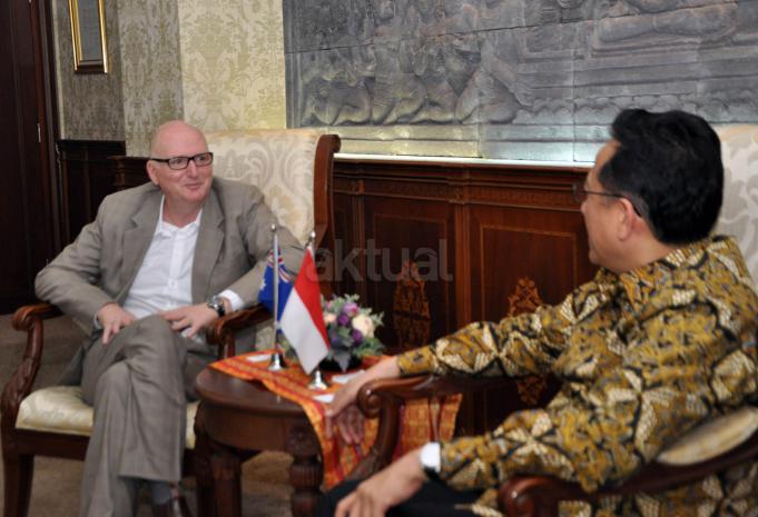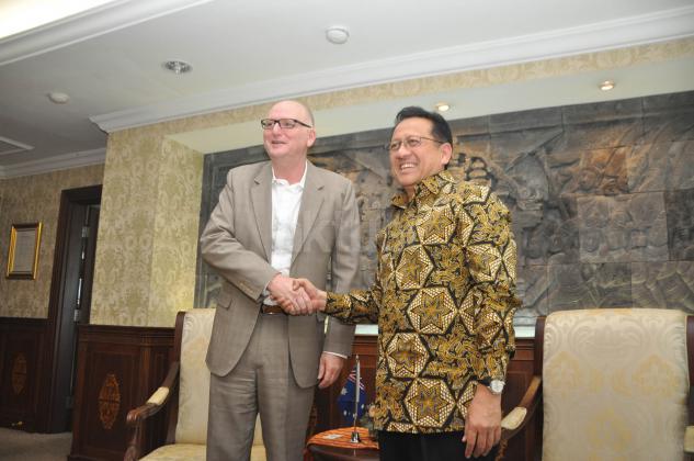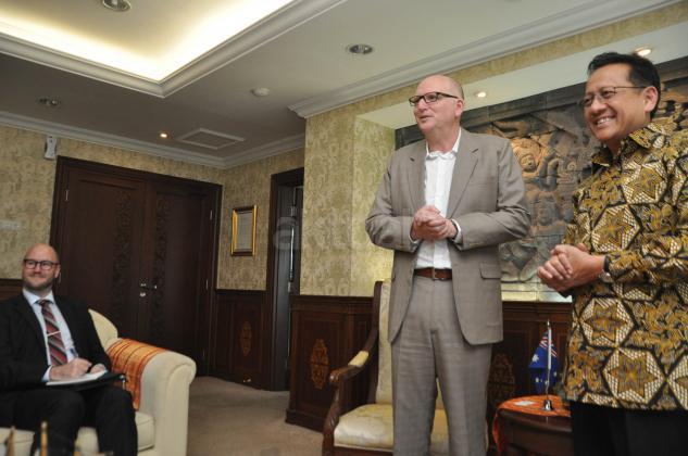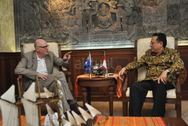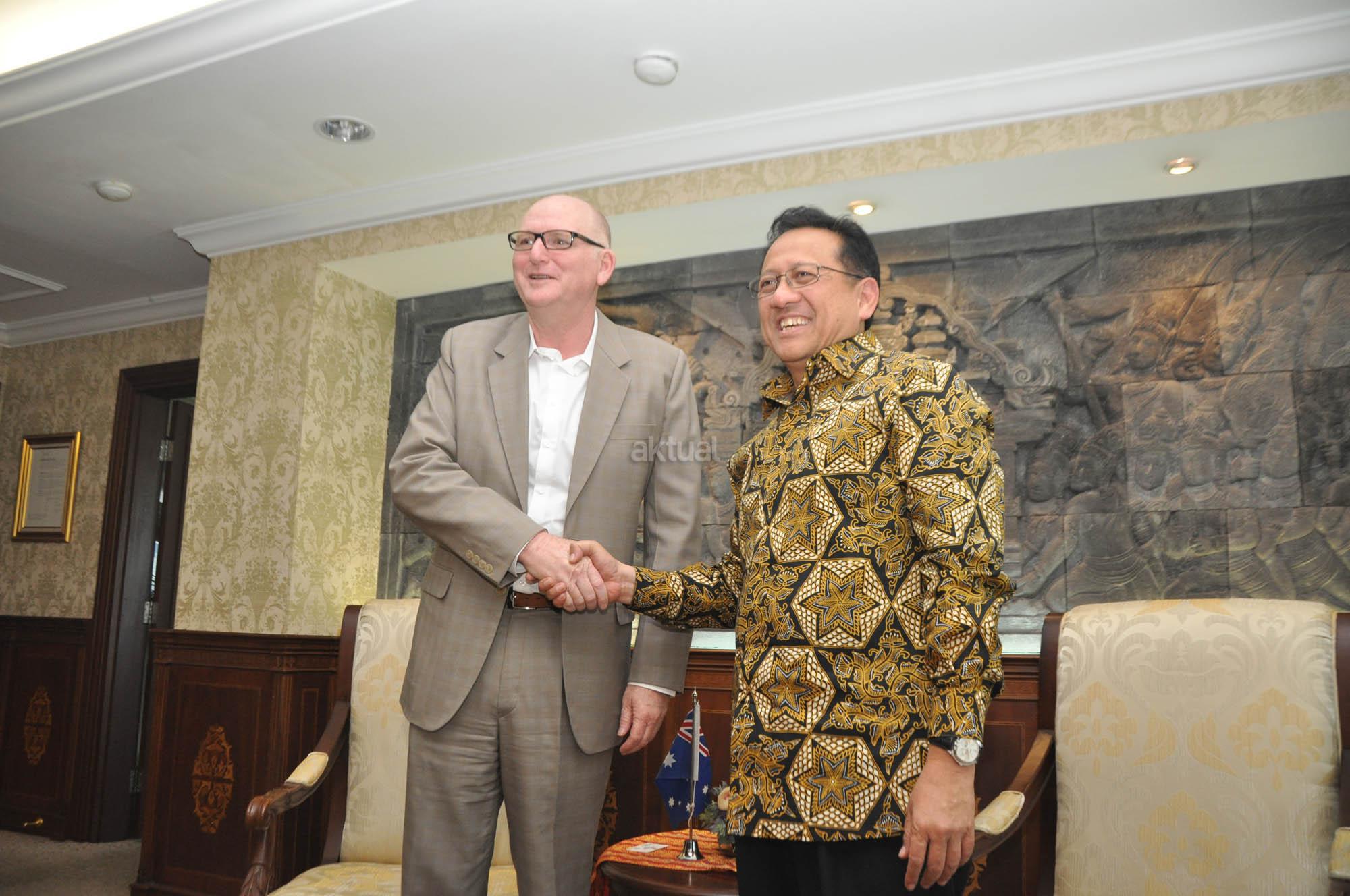 Ketua DPD RI Irman Gusman (kanan) menerima Duta Besar Australia Paul Grigson (kiri) di Komplek Parlemen, Jakarta, Senin (10/8/2015). Pertemuan tersebut membahas hubungan bilateral antar dua negara.