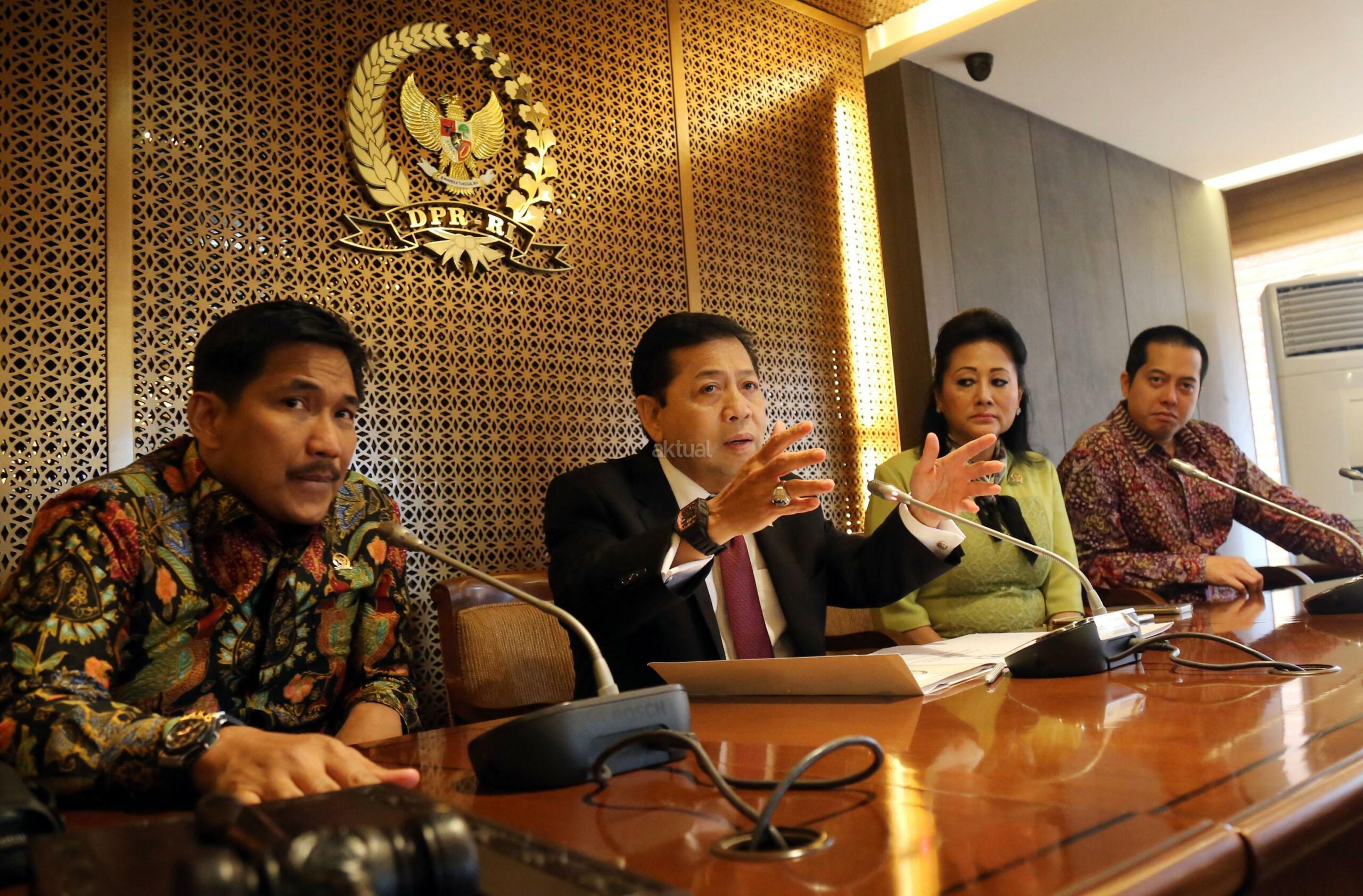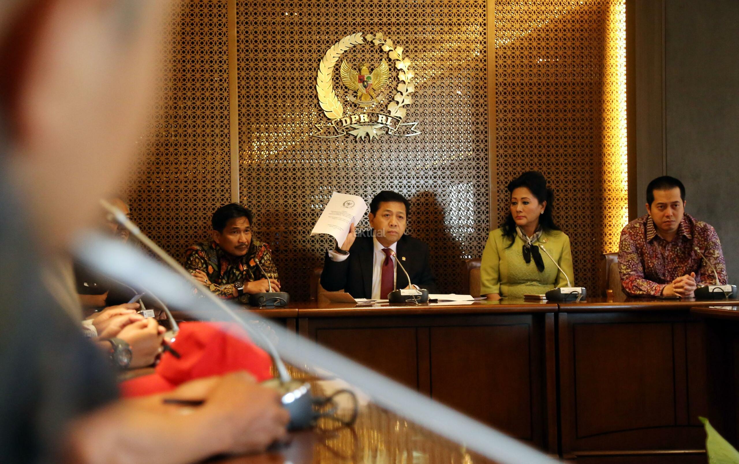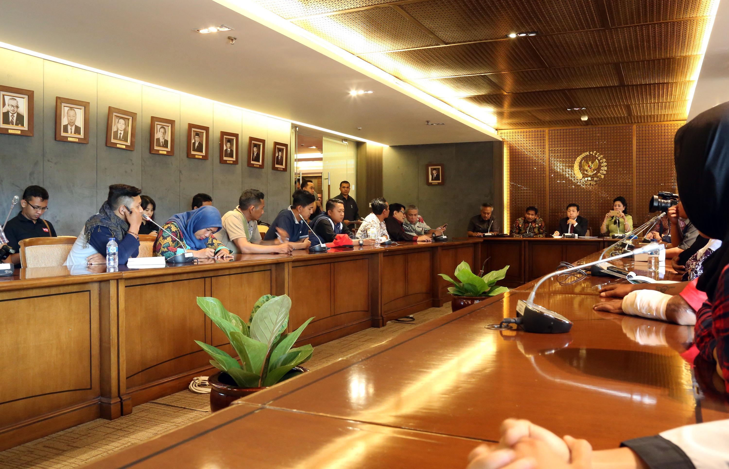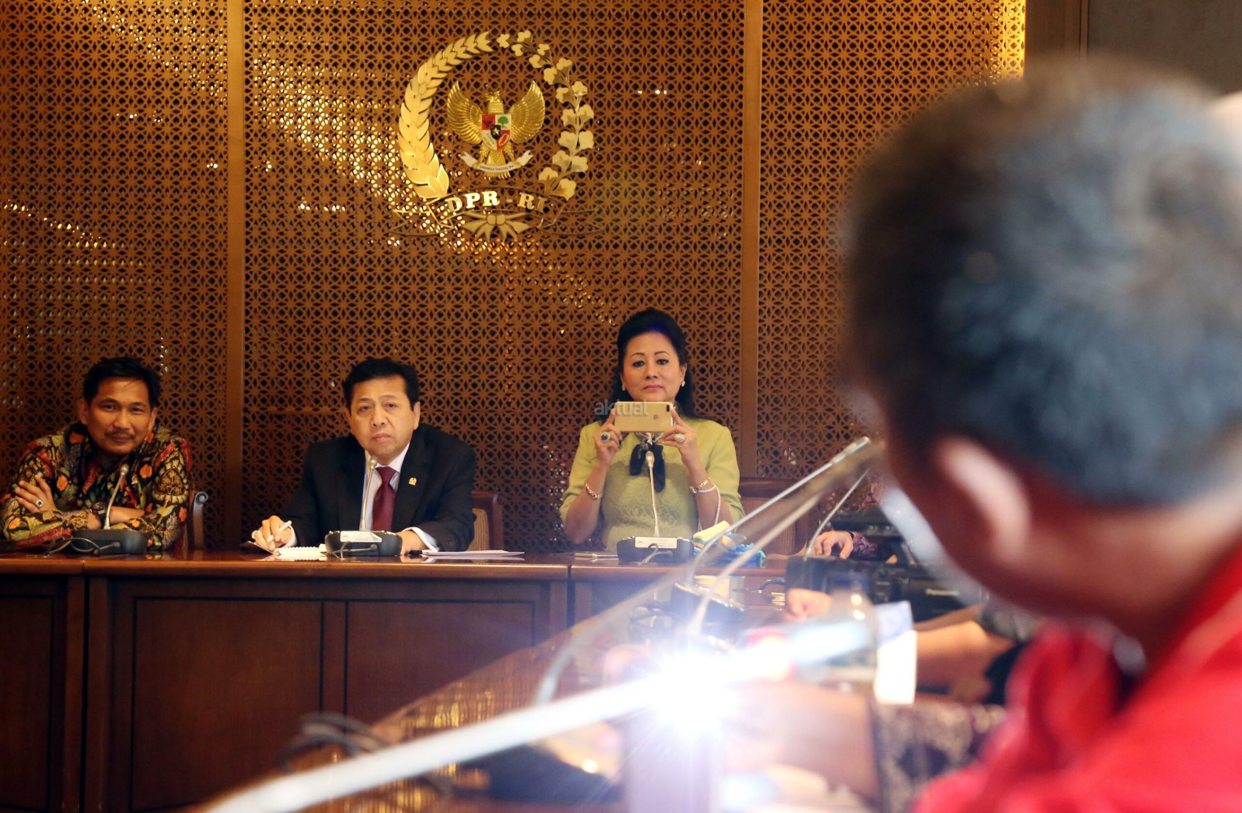 Ketua DPR RI Setya Novanto menerima perwakilan warga Desa Rembang Jawa Tengah di Jakarta, Kamis (12/1). Warga yang berada di sekitar Pabrik Semen Indonesia Rembang ini meminta agar proses pembangunan pabrik ini kembali dilanjutkan. Beberapa waktu sebelumnya MA mengabulkan tuntutan PK sebagian warga Rembang yang menolak pembangunan pabrik. AKTUAL/Tino Oktaviano
