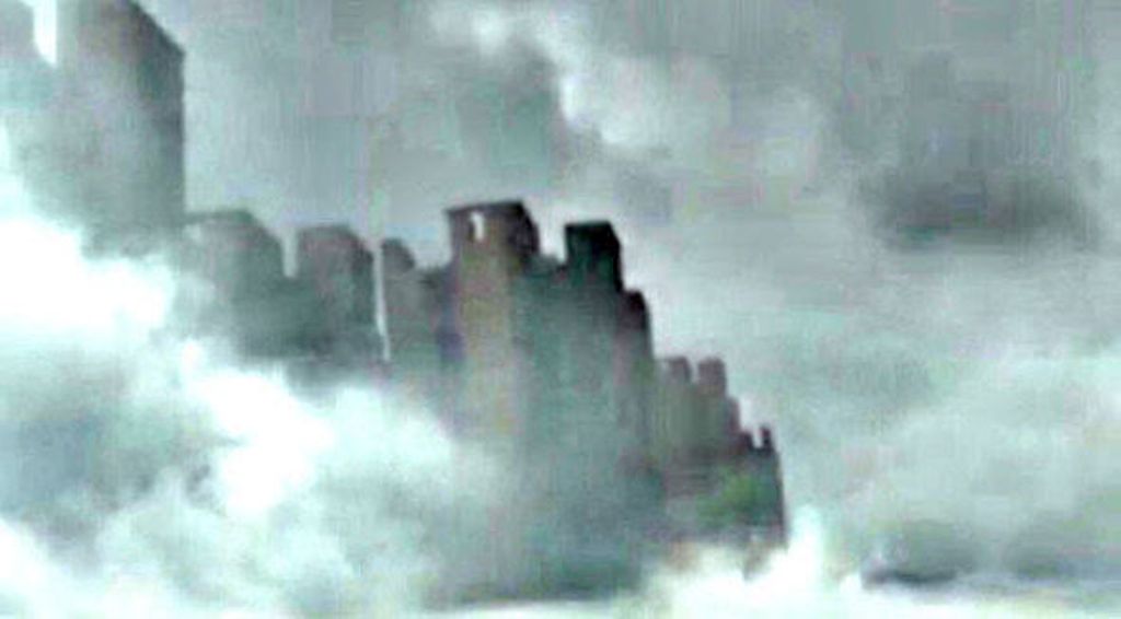 Gambar tersebut menampilkan bentuk bergerigi yang beberapa klaim menyerupai beberapa bangunan runcing atau bahkan pohon di hutan.