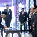 Menteri ESDM Ignasius Jonan (kanan) menyaksikan Kepala SKK Migas Dwi Soetjipto (kiri) menandatangani berita acara pelantikan kepala SKK Migas di Kementerian ESDM, Jakarta, Senin (3/12). Mantan Direktur Utama PT Pertamina (Persero) Dwi Soetjipto dilantik menjadi Kepala SKK Migas menggantikan Amien Sunaryadi yang pensiun pada 20 November 2018 lalu. AKTUAL/Tino Oktaviano