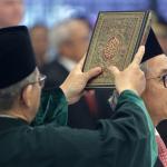 Kepala SKK Migas Dwi Soetjipto mengucapkan sumpah jabatan saat pelantikan kepala SKK Migas di Kementerian ESDM, Jakarta, Senin (3/12). Mantan Direktur Utama PT Pertamina (Persero) Dwi Soetjipto dilantik menjadi Kepala SKK Migas menggantikan Amien Sunaryadi yang pensiun pada 20 November 2018 lalu. AKTUAL/Tino Oktaviano