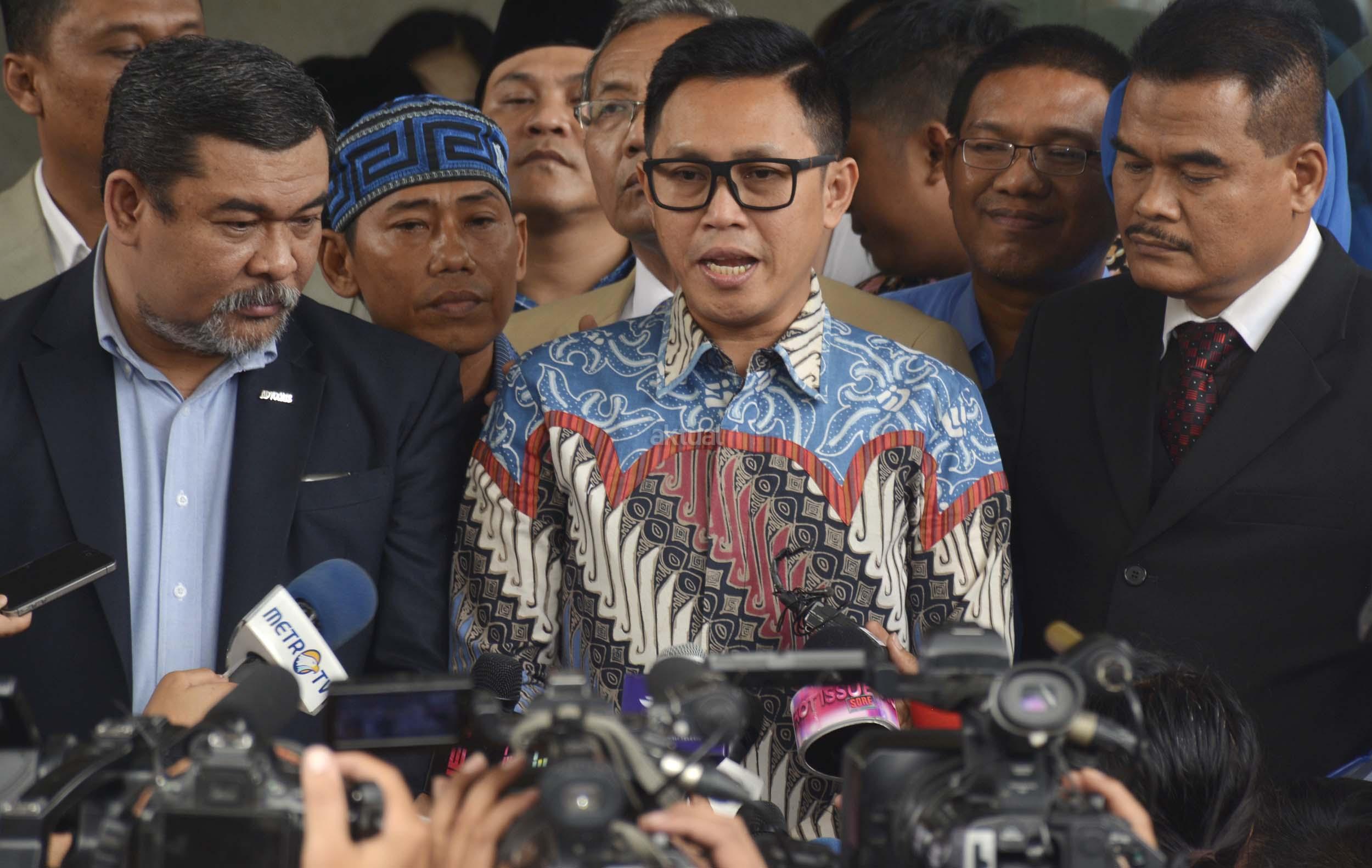 Ketua Dewan Pimpinan Wilayah (DPW) Partai Amanat Nasional (PAN) DKI Jakarta, Eko Hendro Purnomo menjawab pertanyaan wartawan usai memenuhi panggilan di Bareskrim Polri, Jakarta, Jumat (16/12/2016). Kedatangan Eko itu untuk memenuhi panggilan Bareskrim Polri terkait dengan ucapannya di media yang mengatakan penangkapan terduga teroris di Bekasi adalah pengalihan isu kasus Calon Gubernur DKI Jakarta Basuki Tjahaja Purnama. AKTUAL/Munzir