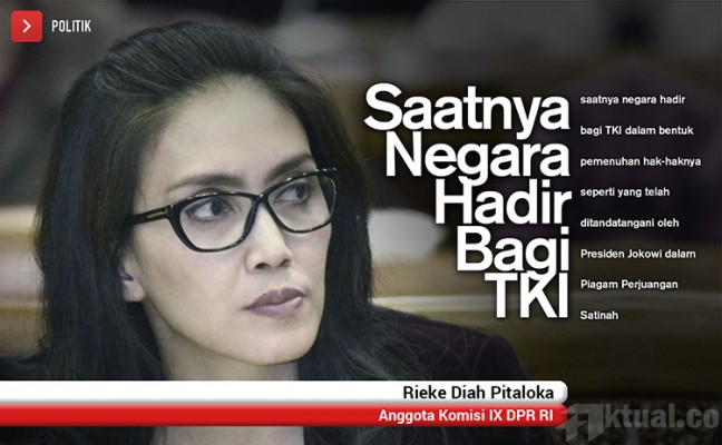 “Bukan saatnya mencari pembenaran. Ini saatnya negara hadir bagi TKI dalam bentuk pemenuhan hak-haknya seperti yang telah ditandatangani oleh Presiden Jokowi dalam Piagam Perjuangan Satinah,” ujarnya.