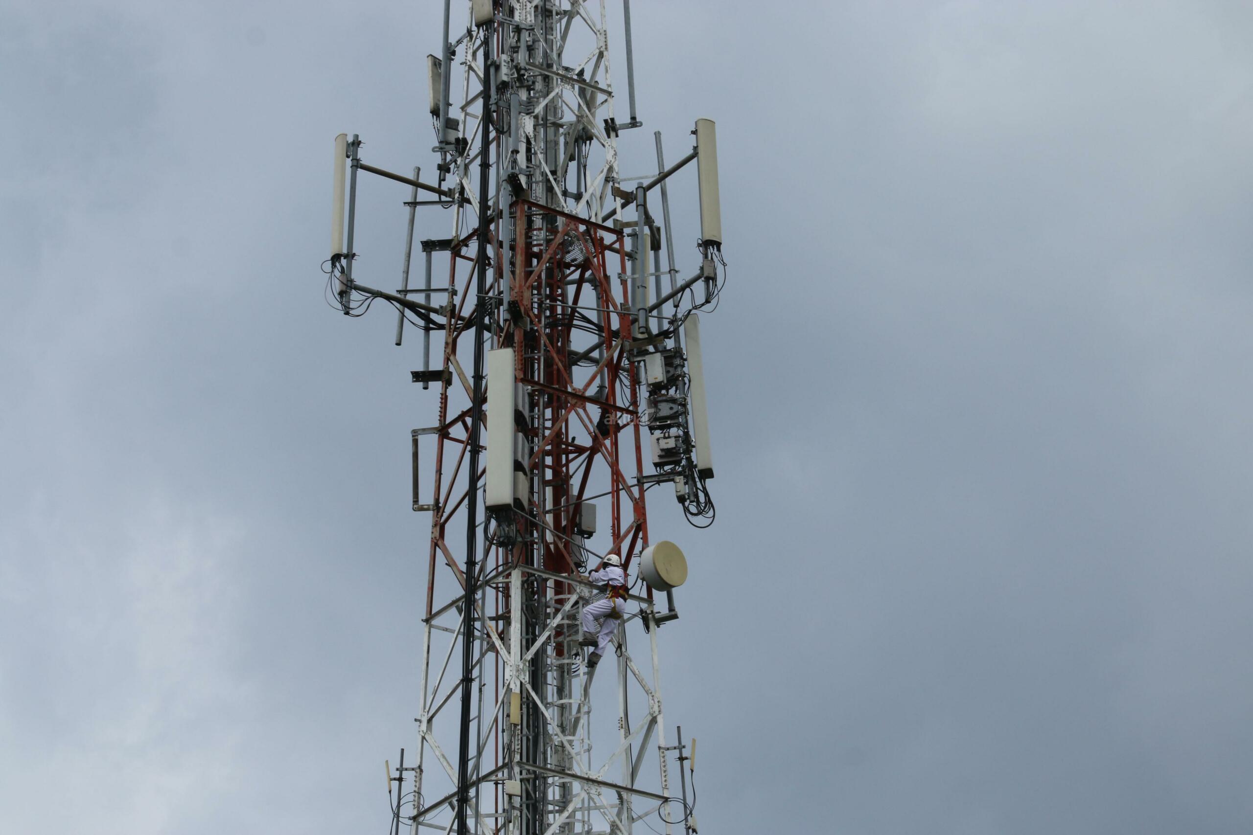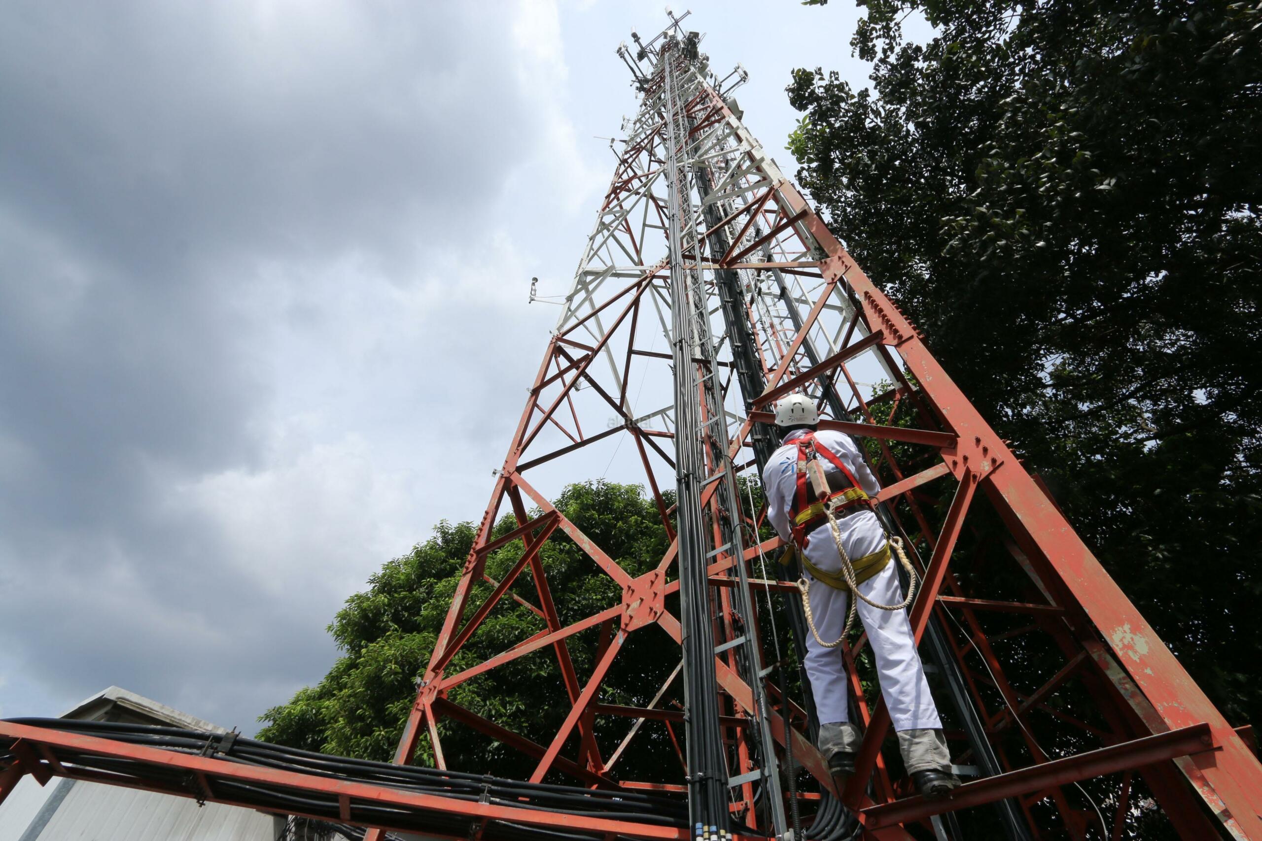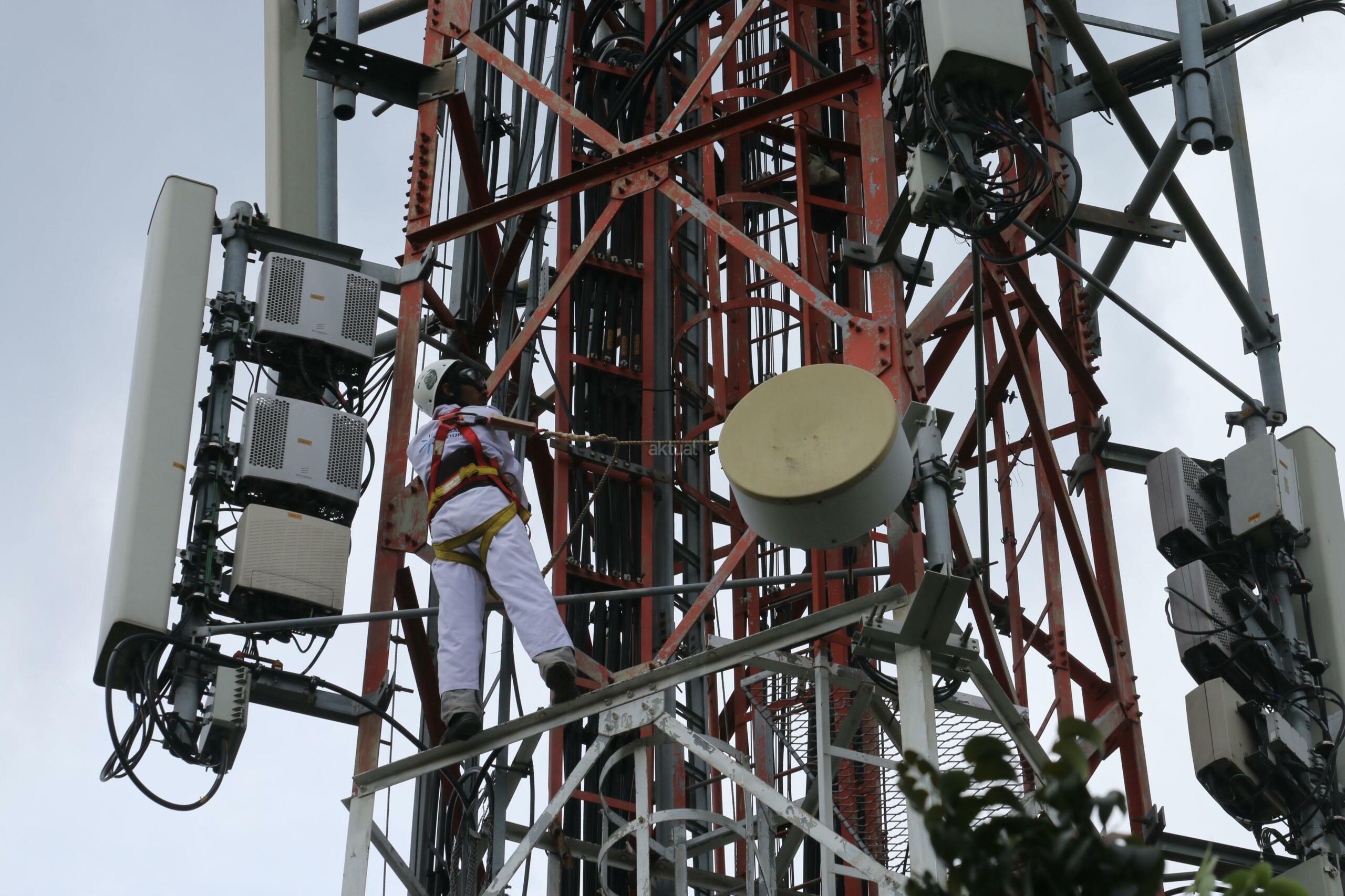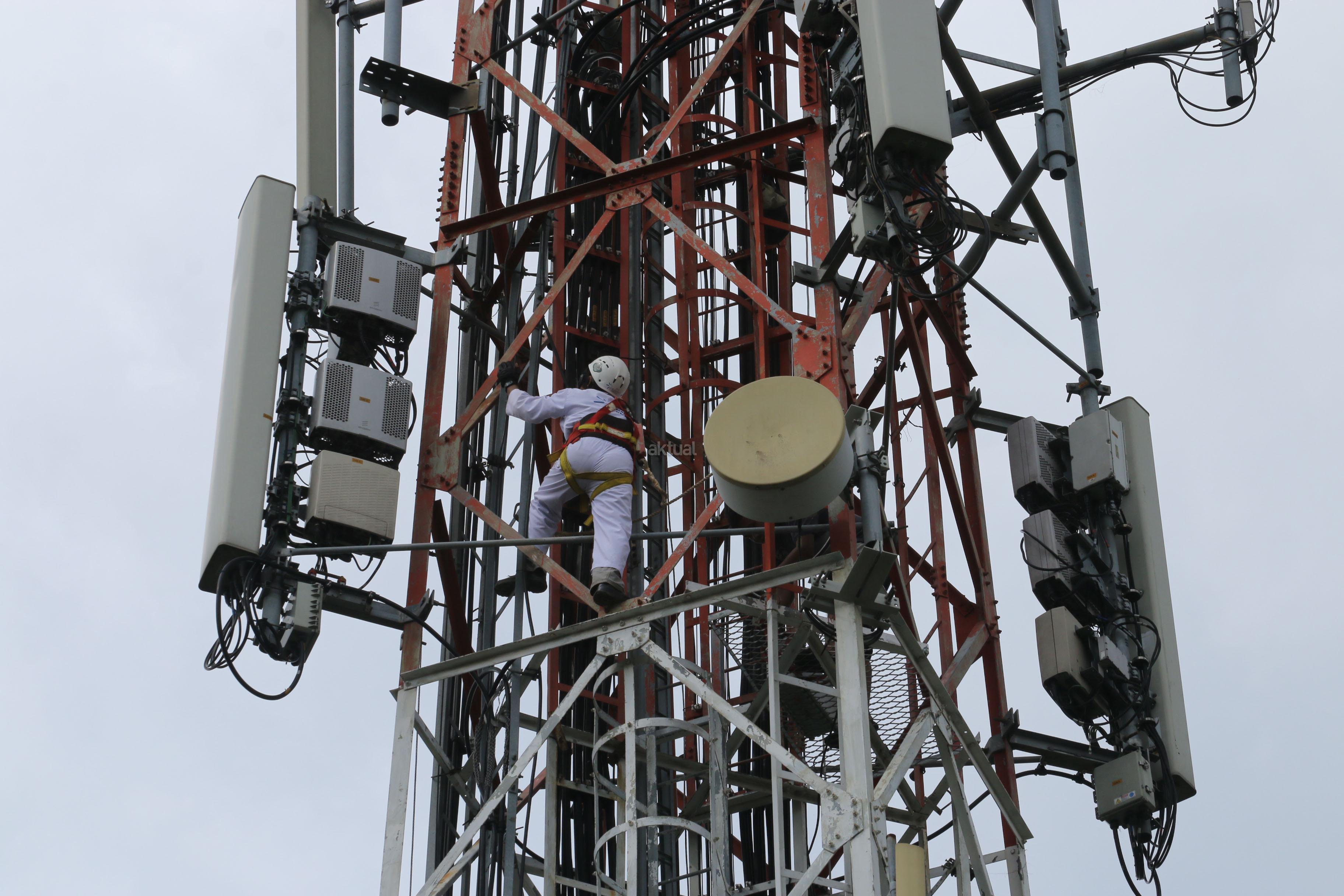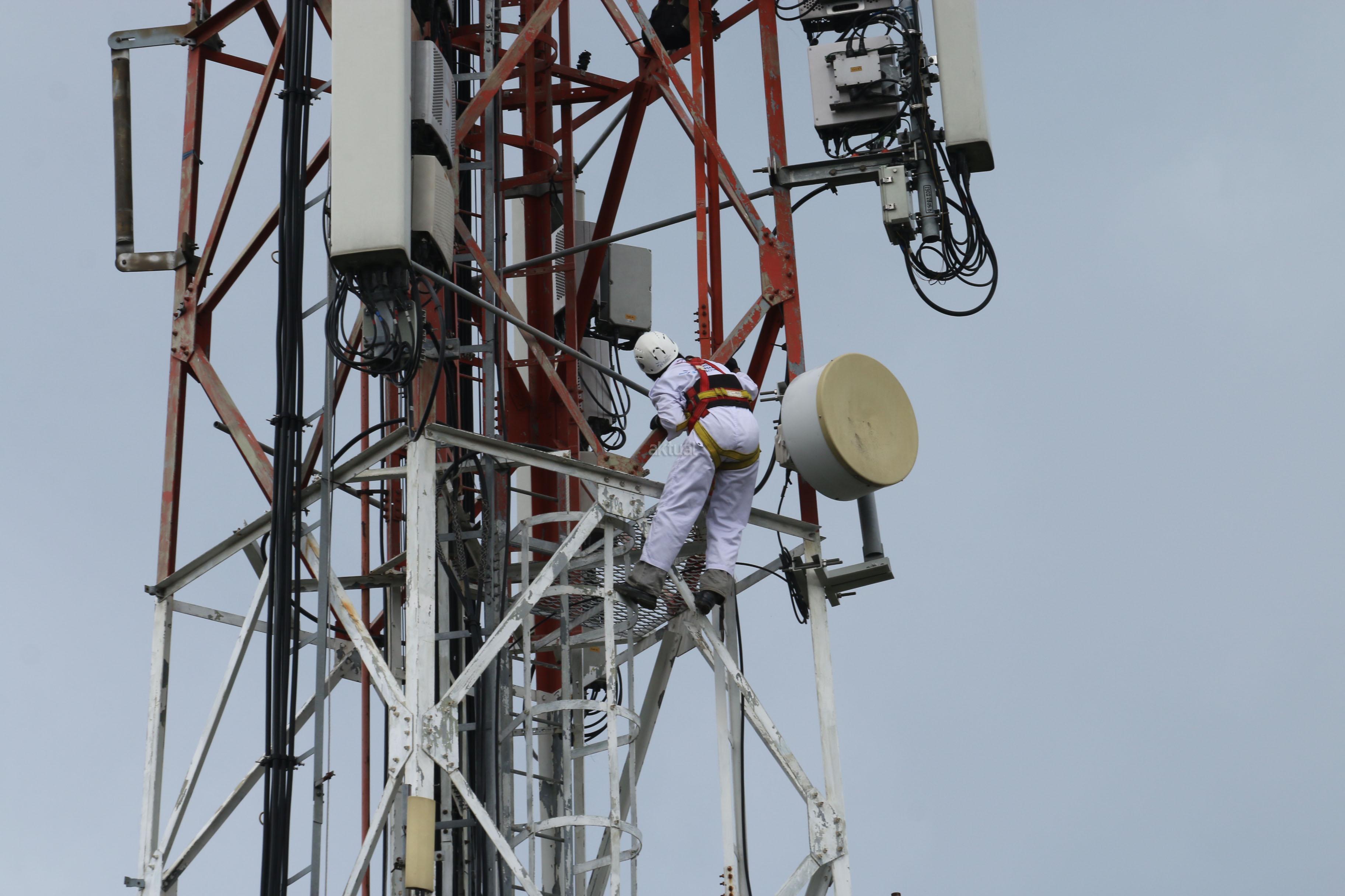 Seorang teknisi melakukan perawatan rutin menara PT Tower Bersama Infrastructure Tbk, di Kampus Dharma Persada Jakarta, Rabu (2/11). Seiring tingginya akses data komunikasi 4G, PT Tower Bersama Infrastructure Tbk terus melakukan ekspansi bisnisnya yang per Juni 2016 telah memiliki total 13 ribu sites terdiri berbagai tipe menara dan akan menargetkan tambahan 2000 tower pada tahun ini. AKTUAL/Tino Oktaviano