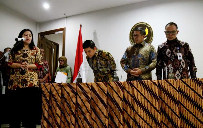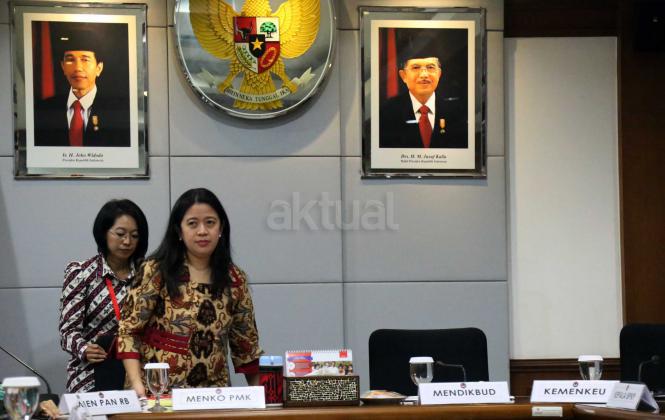 Menko PMK Puan Maharani saat menghadiri Rapat Koordinasi Implementasi UU No. 23 Tahun 2014 di Jakarta, Kamis (14/4/2016). Dalam rakor tersebut dibahas tentang kesiapan pengalihan wewenang pengelolaan pendidikan dari tingkat kabupaten hingga provinsi yang akan dilaksanakan1 Oktober 2016-1Januari 2017.