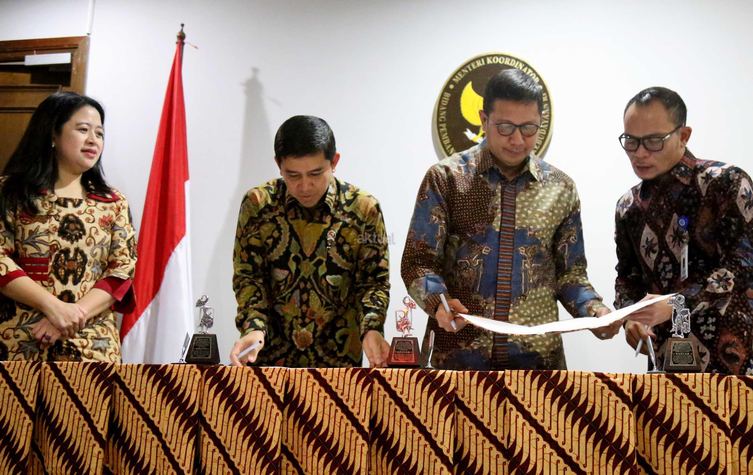 kiri-kanan; Menko PMK Puan Maharani, Menpan RB Yuddy Chrisnandi, Menag Lukman Hakim, Menaker Hanif Dhakiri usai penandatanganan surat keputusan bersama penetapan Libur Nasional dan Cuti Bersama tahun 2017 di Jakarta, (14/4/2016). Hasil petetapan SKB tiga Menteri bahawa Hari Libur Nasional sebanyak 15 hari dan cuti bersama sebanyak 4 hari untuk Hari Raya Idul Fitri 1438 dan Natal.