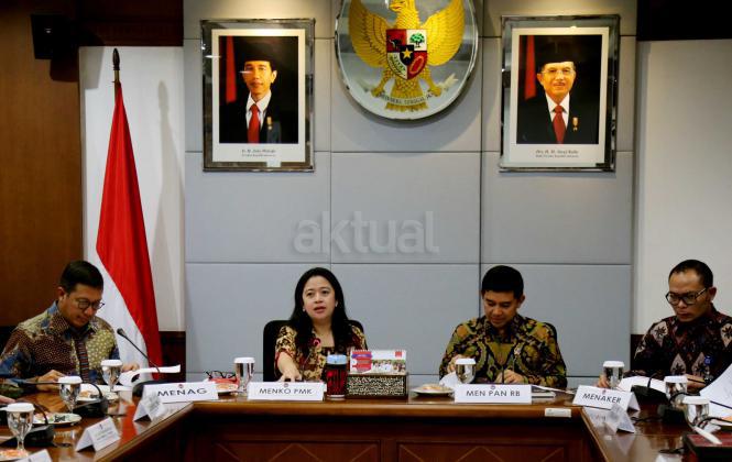Kiri-kanan ; Menag Lukman Hakim , Menko PMK Puan Maharani, Menpan RB Yuddy Chrisnandi, Menaker Hanif Dhakiri saat rapat keputusan penetapan Libur Nasional dan Cuti Bersama tahun 2017,di kantor Menko PMK, Jakarta, Kamis (14/4/2016). Hasil petetapan SKB tiga Menteri bahawa Hari Libur Nasional sebanyak 15 hari dan cuti bersama sebanyak 4 hari untuk Hari Raya Idul Fitri 1438 dan Natal.