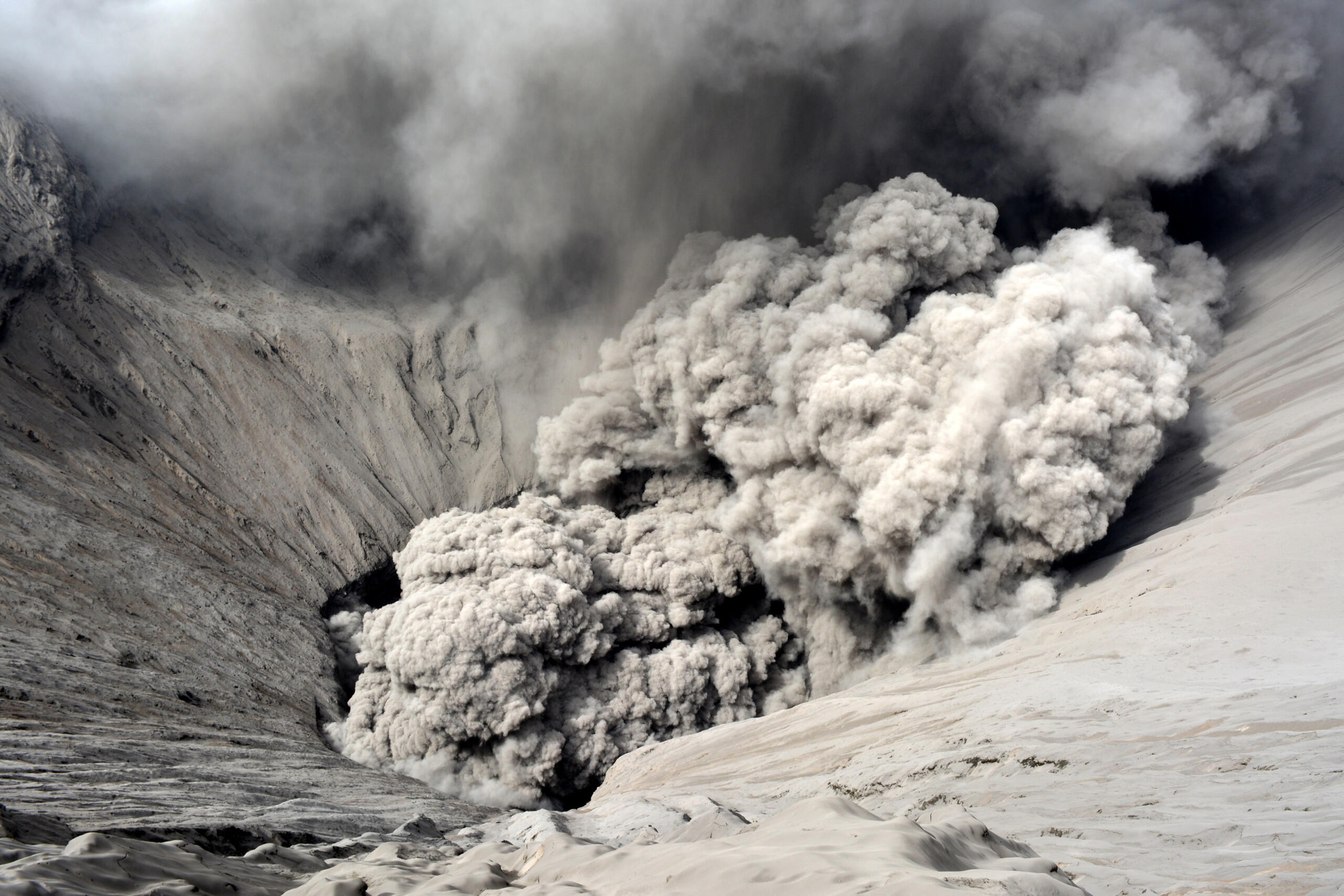 Semburan abu vulkanis keluar dari kawah Gunung Bromo, Probolinggo, Jawa Timur, Selasa (12/7). Aktivitas Gunung Bromo mengalami peningkatan dengan gempa tremor amplitudo maksimal 3-21 milimeter dan tinggi asap abu vulkanis 300-800 meter dari puncak kawah. ANTARA FOTO/Umarul Faruq/aww/16.