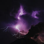 Petir menyambar ketika Gunung Sinabung Erupsi, tampak dari Desa Tiga Pancur, Karo, Sumatera Utara, Kamis (28/7) malam. Aktifitas Gunung Sinabung berstatus Awas (level IV) masih meningkat ditandai dengan erupsi dan lava pijar yang mengalir di Gunung Sinabung. ANTARA FOTO/Tibta Perangin angin/im/pd/16