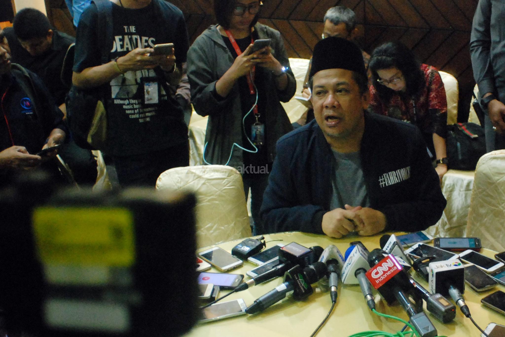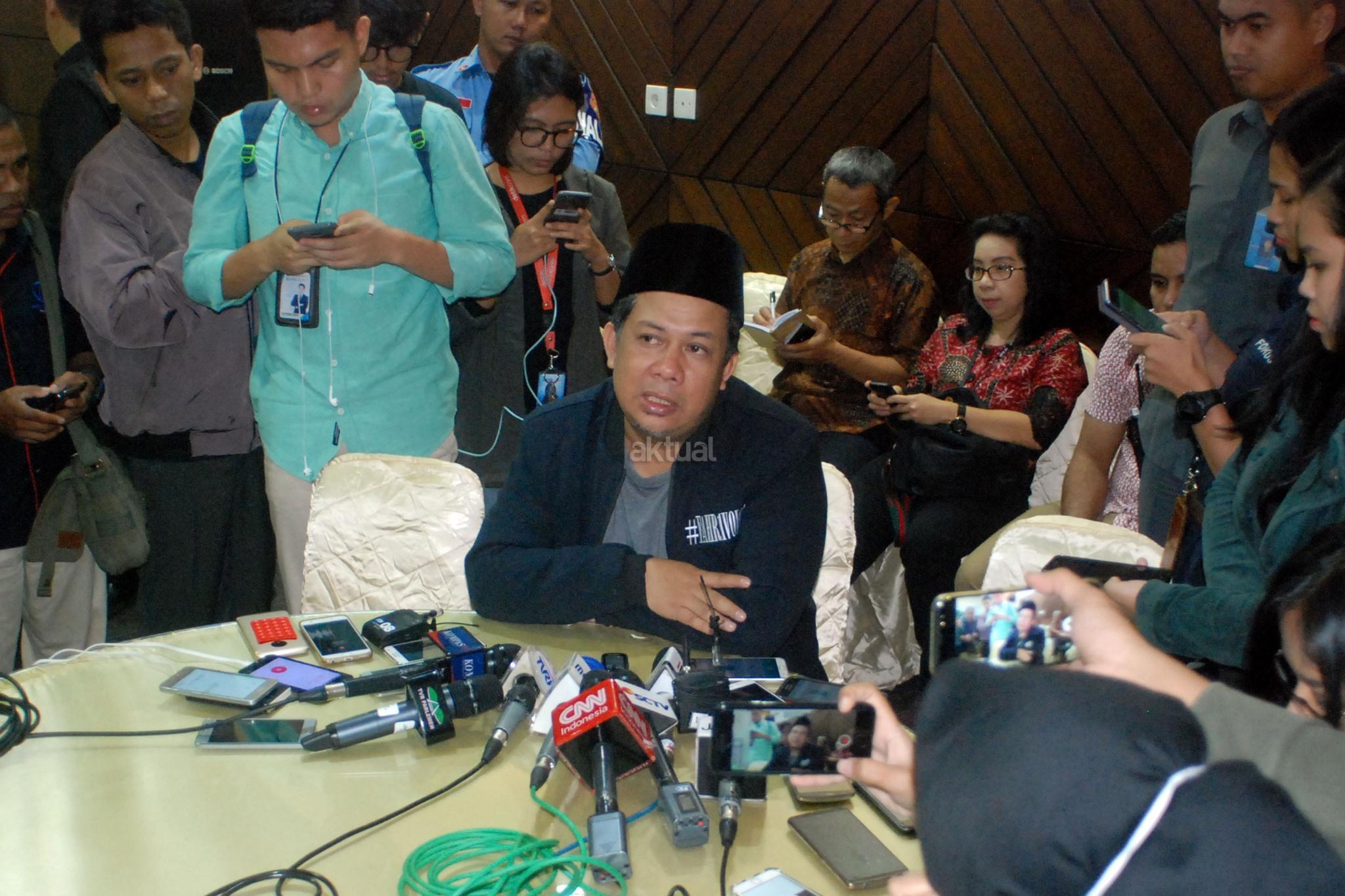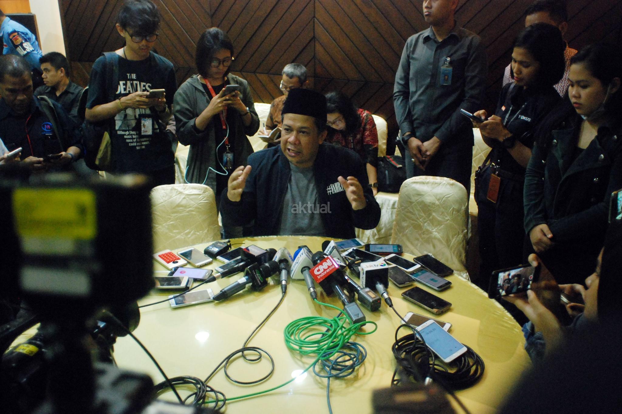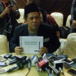 Wakil Ketua DPR Fahri Hamzah, memberikan bantahan dihadapan wartawan, di Gedung Nusantara III, Kompleksp Parlemen Senayan, Jakarta, Selasa (20/2), terkait perkataan Nazaruddin dalam persidangan kasus E-KTP. Selain menyampaikan bantahan secara tertulis yang berjudul “Grand Korupsi M.Nazaruddin”, Fahri yang mengaku tidak pernah ada bisnis di DPR selama hampir 14 tahun menjadi anggota dan Pimpinan DPR, akan terus melawan persekongkolan Nazar dan KPK. AKTUAL/Tino Oktaviano