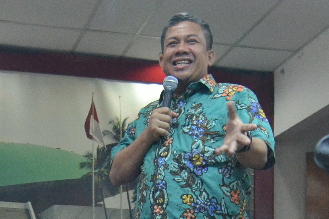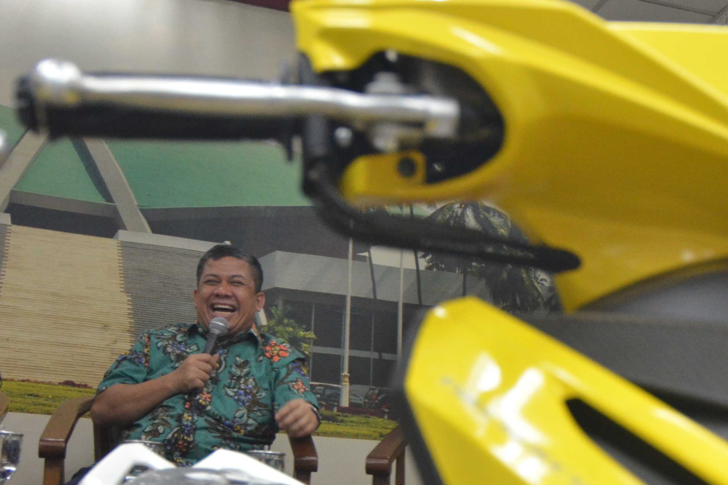 Wakil Ketua DPR Fahri Hamzah memberikan keterangan disela acara penganugerahan lomba dan pameran foto warna-warni parlemen di Kompleks Parlemen, Senayan, Jakarta, Jumat (11/9). Saat diwawancara media sebelum berlangsungnya acara, Fahri mengatakan, pertemuan Pimpinan DPR Setya Novanto dan Fadli Zon dengan Donald Trump tidak perlu dipermasalahkan, karena pengusaha asal Las Vegas itu belum ditetapkan sebagai calon presiden Amerika Serikat melainkan baru berstatus sebagai bakal calon.