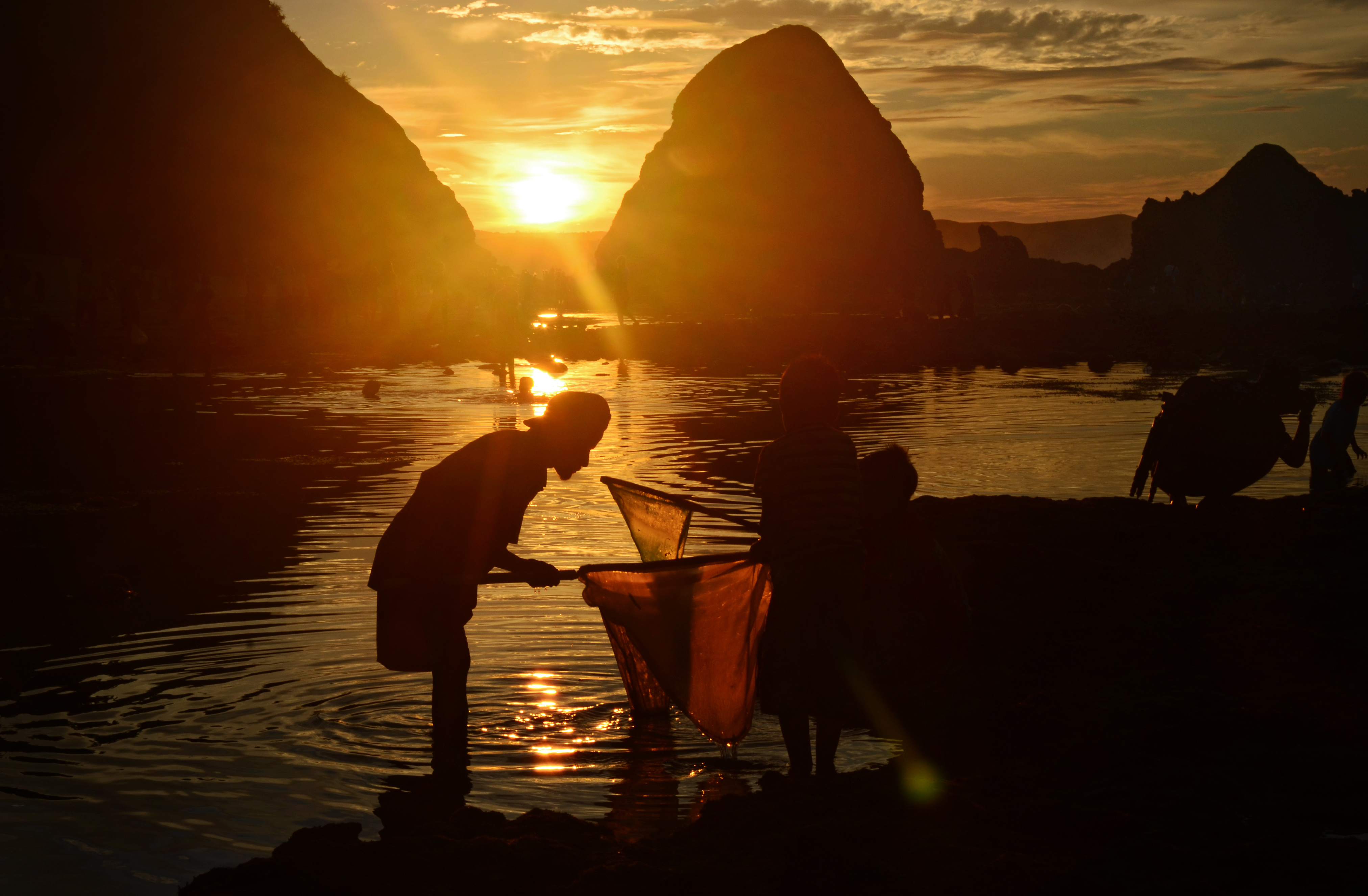 Ribuan warga dan wisatawan mengumpulkan "Nyale" (cacing laut warna-warni) pada Festival Bau Nyale di pantai Seger, Desa Kuta, Praya, Lombok Tengah, NTB, Minggu (28/2). Festival bertaraf internasional tersebut digelar setahun sekali di Kawasan Ekonomi Khusus (KEK) Mandalika yang dikelola Badan Usaha Milik Negara Indonesia Tourism Development Corporation (ITDC). ANTARA FOTO/Ahmad Subaidi/nz/16.