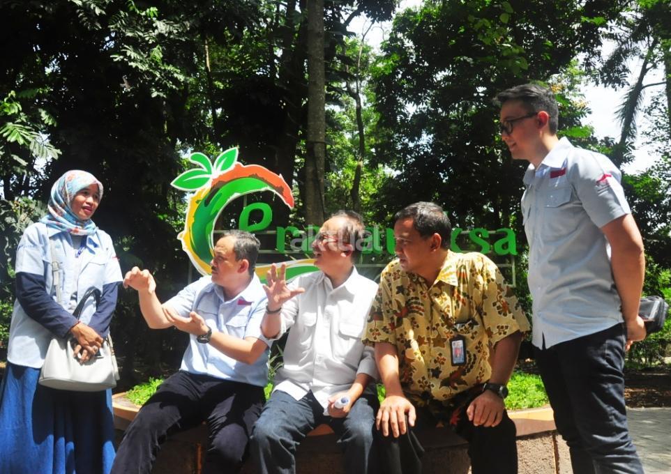 Staf Ahli Bidang Infrastruktur Kementerian Riset Teknologi & Pendidikan Tinggi RI Hari Purwanto (tengah), Deputi Bidang Jasa Ilmiah LIPI Mego Pinandito (kedua kanan), Head of Environment & Social Responsibility PT Astra International Tbk Riza Deliansyah (kedua kiri) dan Head of Corporate Communications PT Astra International Tbk Boy Kelana Soebroto (kanan) berbincang bersama salah satu staf LIPI mengenai konservasi buah langka nusantara melalui Program Konservasi Keanekaragaman Buah Langka Nusantara (Pranaraksa) pada Festival Kampung Berseri Astra (KBA) di Cibinong, Bogor, Jawa Barat, Sabtu (28/4). AKTUAL/Astra