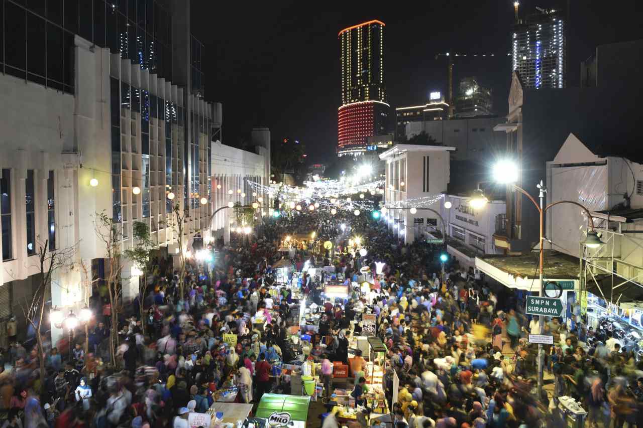 Warga memadati stan makanan saat digelar Festival Kuliner Surabaya di Surabaya, Jawa Timur, Selasa (26/7). Festival kuliner tersebut menyajikan berbagai makanan khas Jawa Timur. ANTARA FOTO/Zabur Karuru/aww/16.