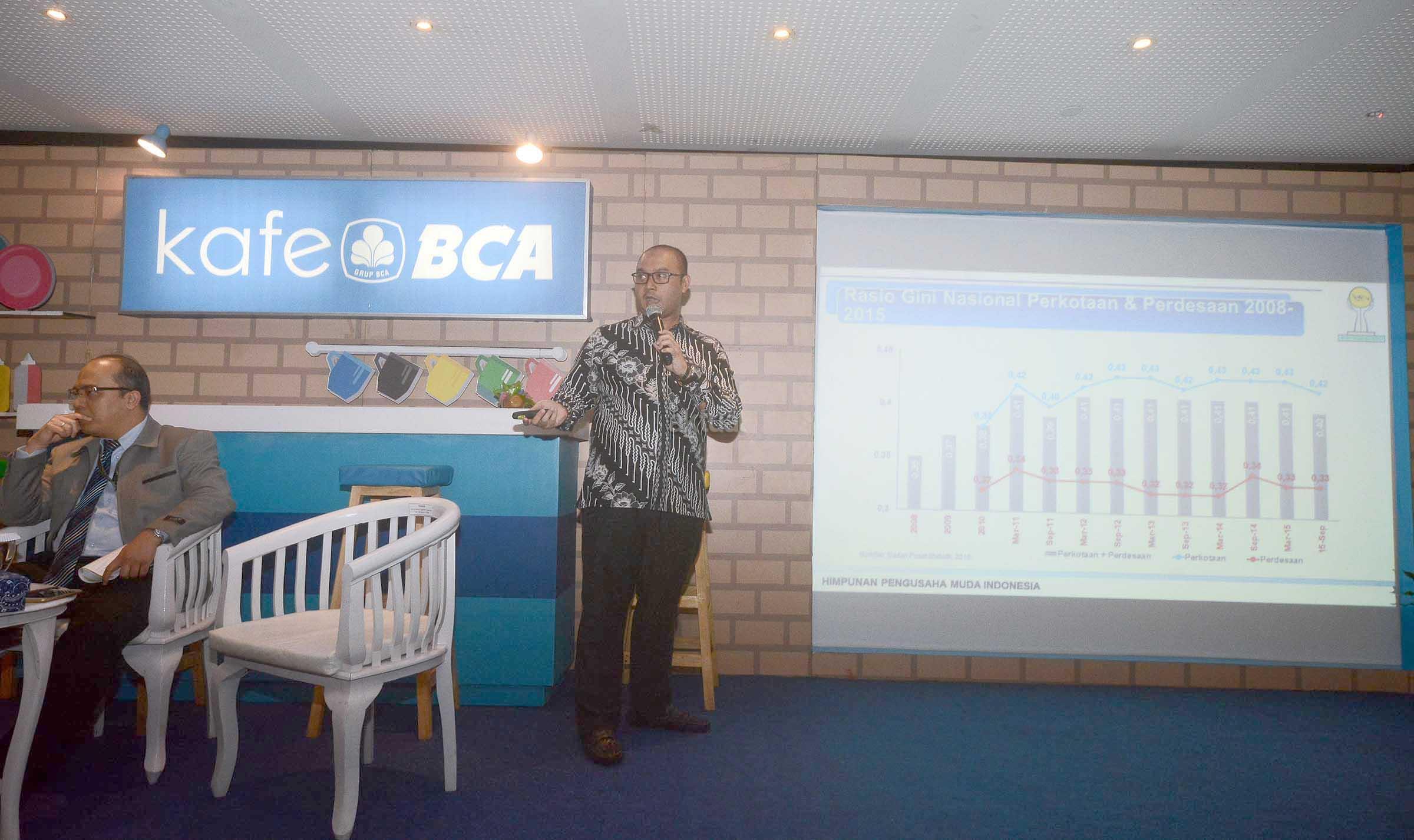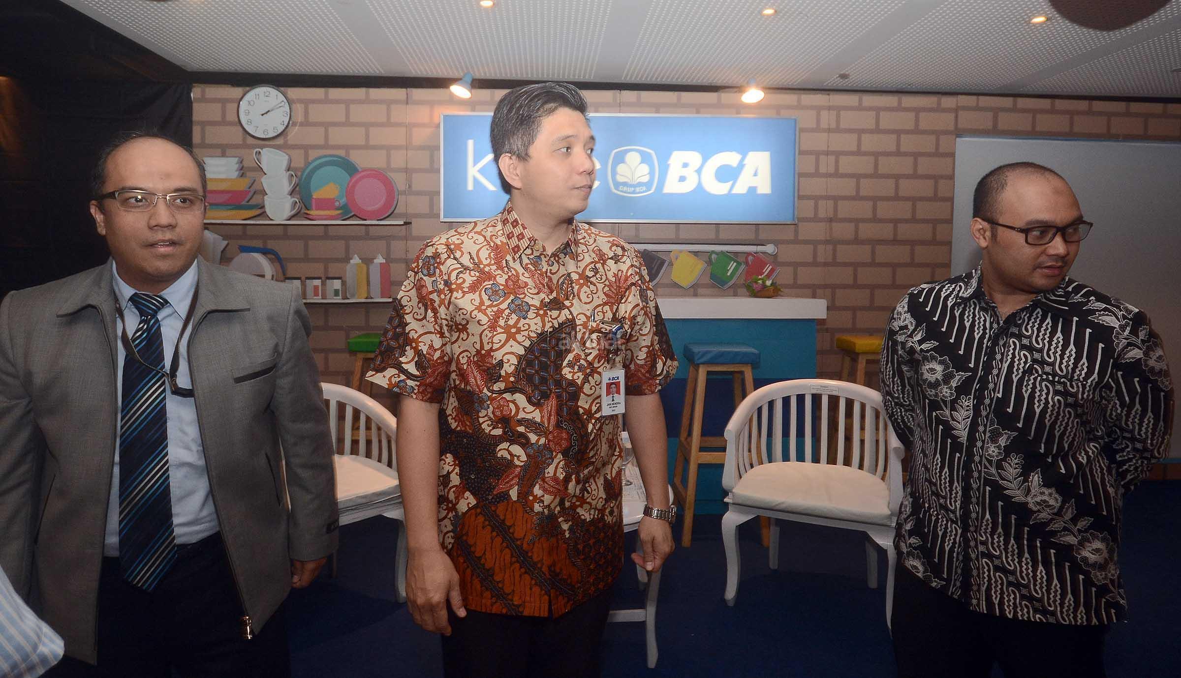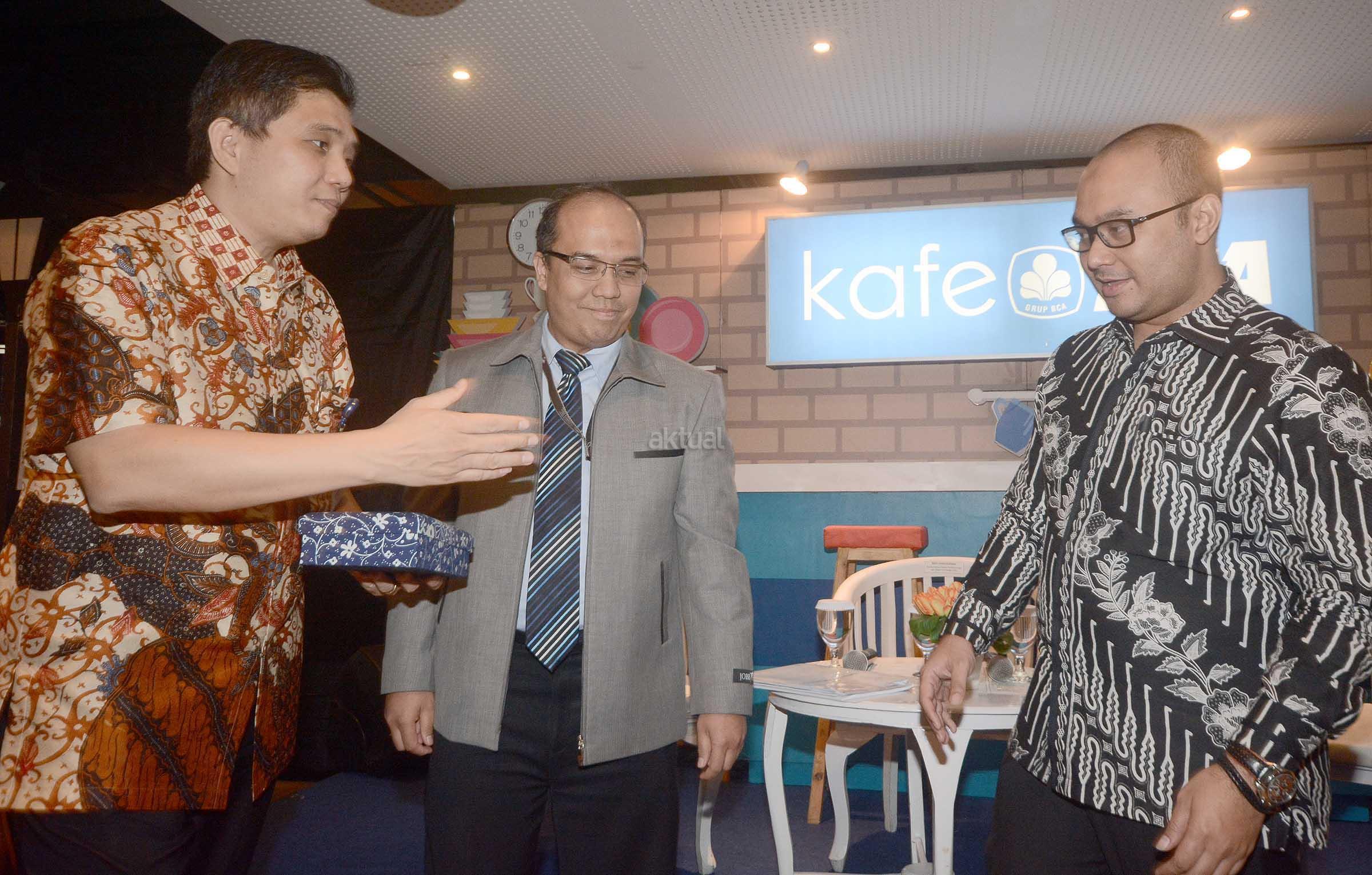 Sekretaris Perusahaan BCA Jan Hendra (tengah) menyerahkan cinderamata kepada Ketua Bidang Organsasi Kaderisasi dan Keanggotaan Himpunan Pengusaha Muda Indonesia (HIPMI) Anggawira disaksikan Direktur Group Risiko Perekonomian dan Sistem Keuangan Lembaga Penjamin Simpanan (LPS) Moh. Doddy Arifianto (kiri) di Jakarta, Rabu (14/12). Forum diskusi dengan tema Outlook Ekonomi 2017 tersebut membahas peran perbankan dalam mendukung pertumbuhan ekonomi nasional. Kafe BCA merupakan forum berbagi insight dan pemahaman akan pelaksanaan service excellence di BCA dan perkembangannya di industri jasa lainnya. AKTUAL/Eko S Hilman