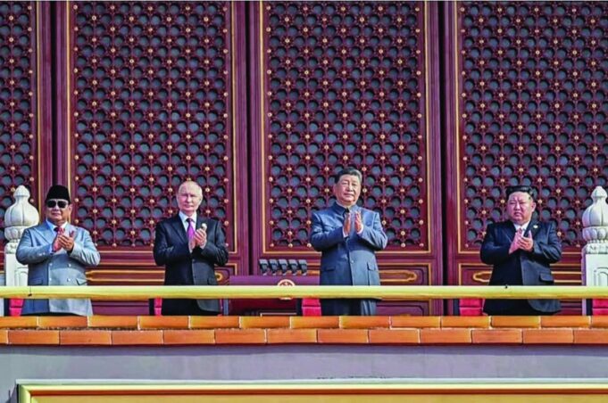 Foto Presiden Prabowo Subianto sejajar dengam Presiden Rusia Vladimir Putin, Presiden RRC Xi Jinping dan Presiden Korea Utara Kim Jong-un, mendapat perahtian khusus dari Presiden Amerika Serikat Donald Trump. Trump sempat menyindir ada andil besar Negeri Paman Sam atas kemenangan China terhadap jepang pada perang 80 tahun lalu.