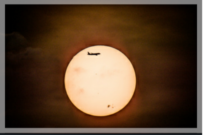 Usut punya usut, rupanya bintik hitam di bintang tata surya kita tersebut adalah sebuah pesawat yang melintas. Astrophotographer Michael Sanders yang mengabadikan gambar tersebut dari kota Bangkok, Thailand.