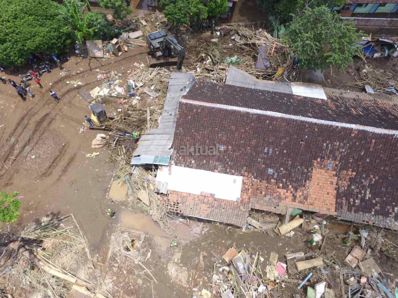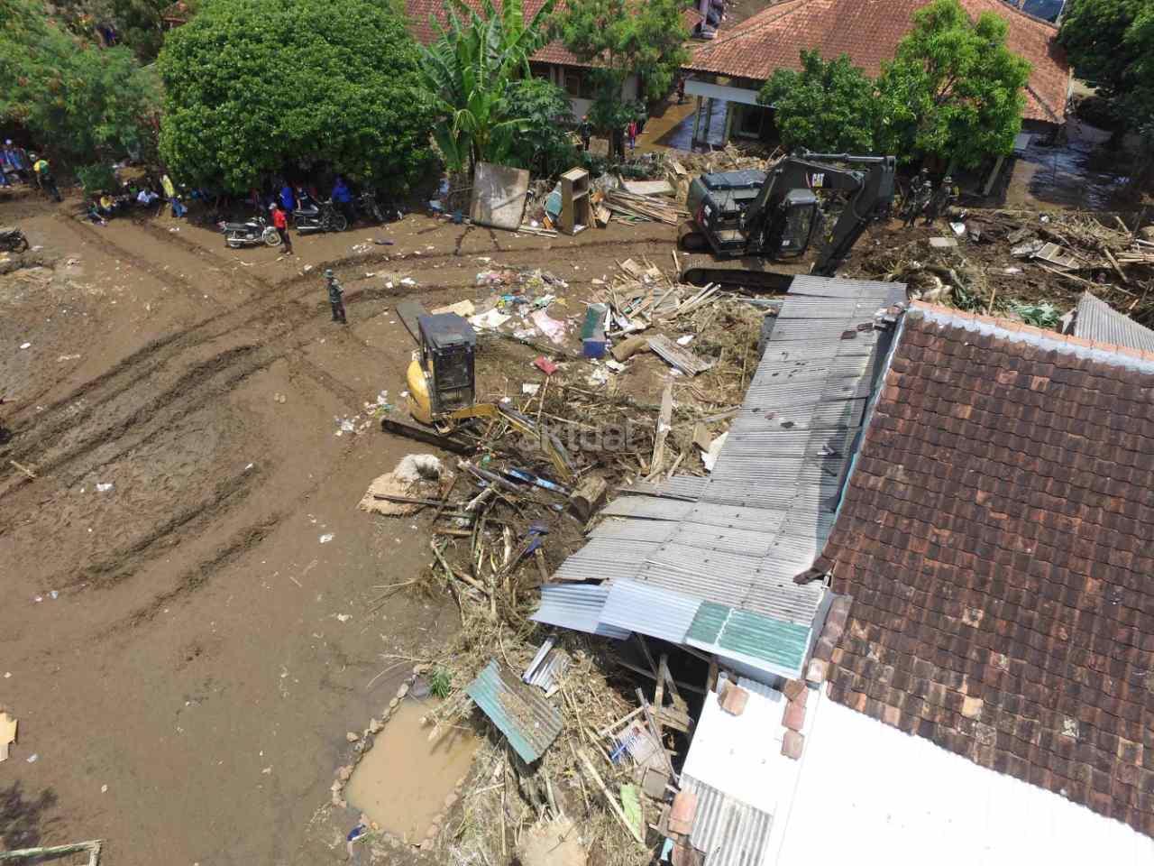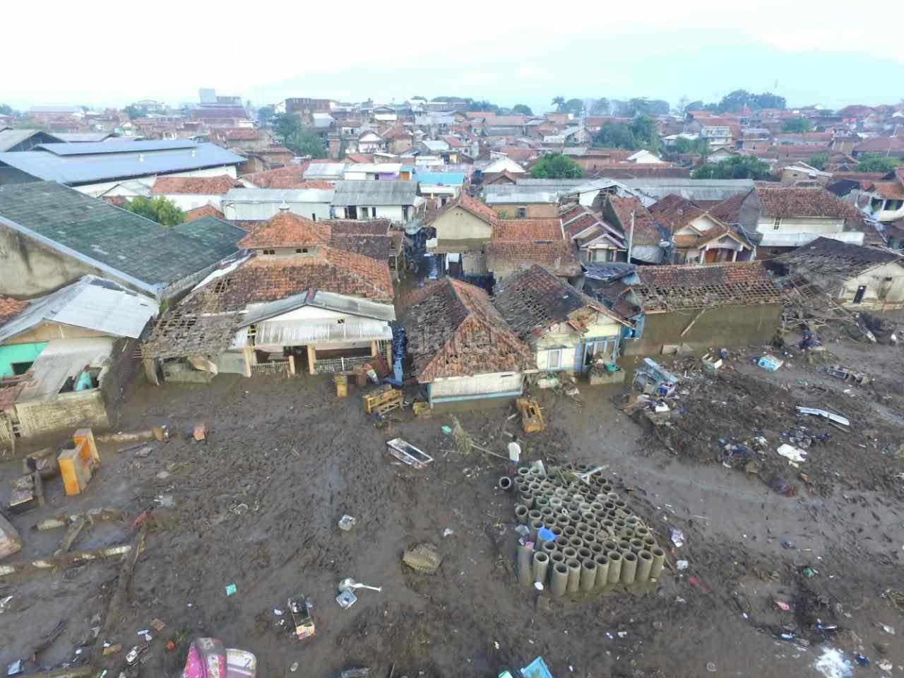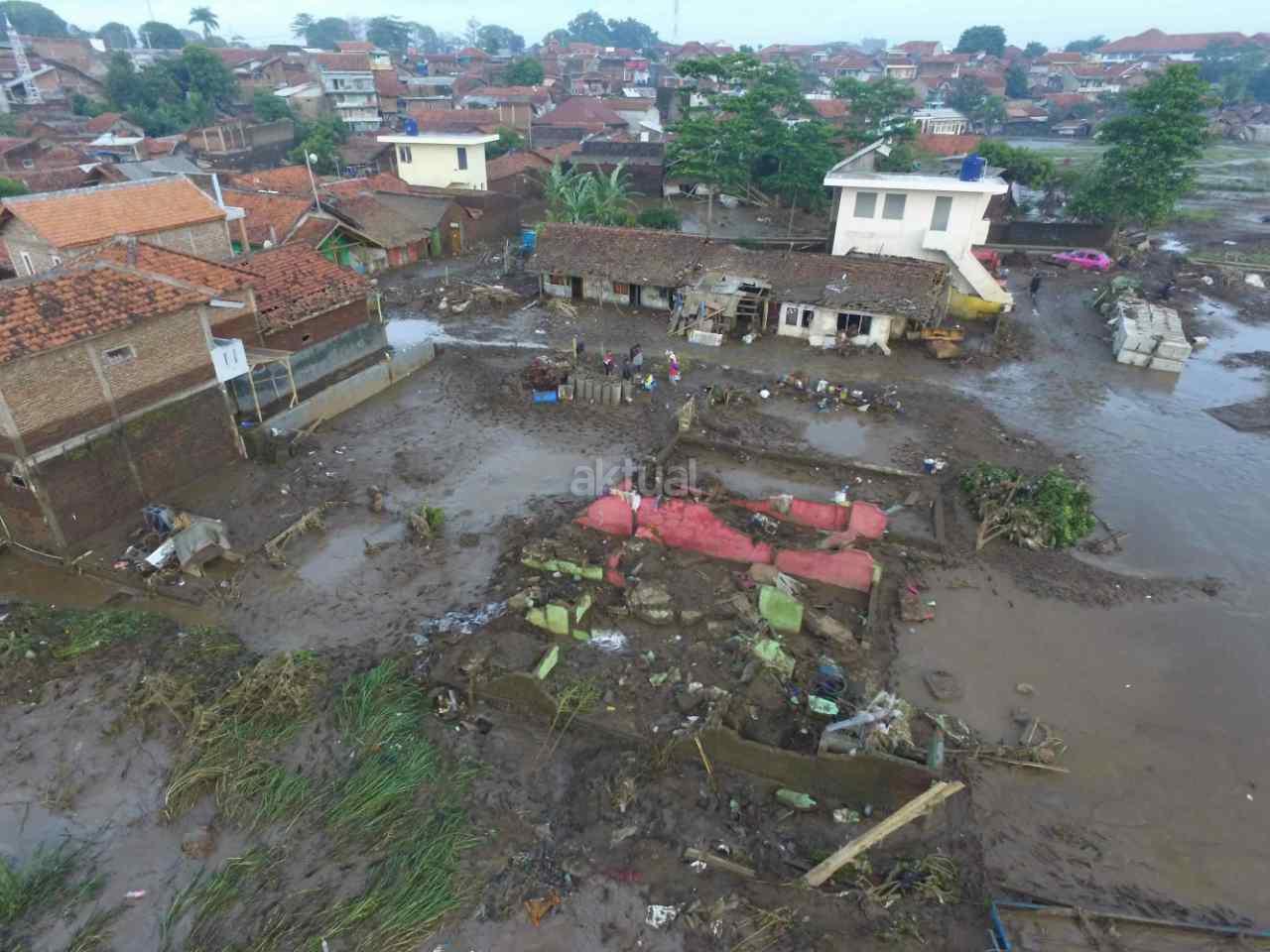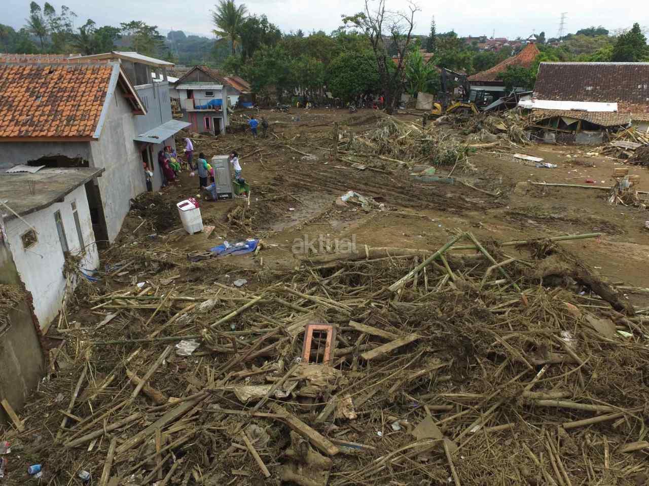 Foto udara lokasi musibah banjir bandang yang terjadi di Garut, Jawa Barat, Kamis (22/9). Data terakhir yang dirilis BNPB, korban tewas akibat banjir bandang di Garut ada 23 orang dan 18 orang lainnya masih hilang. Tim SAR gabungan diharapkan dapat menemukan 18 orang yang hilang ini secepat mungkin. AKTUAL/HO