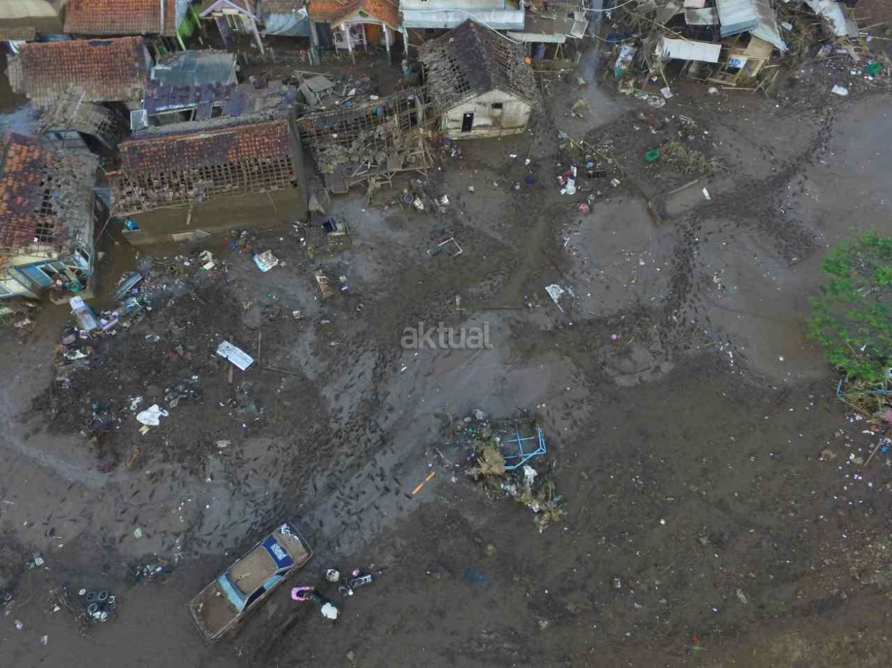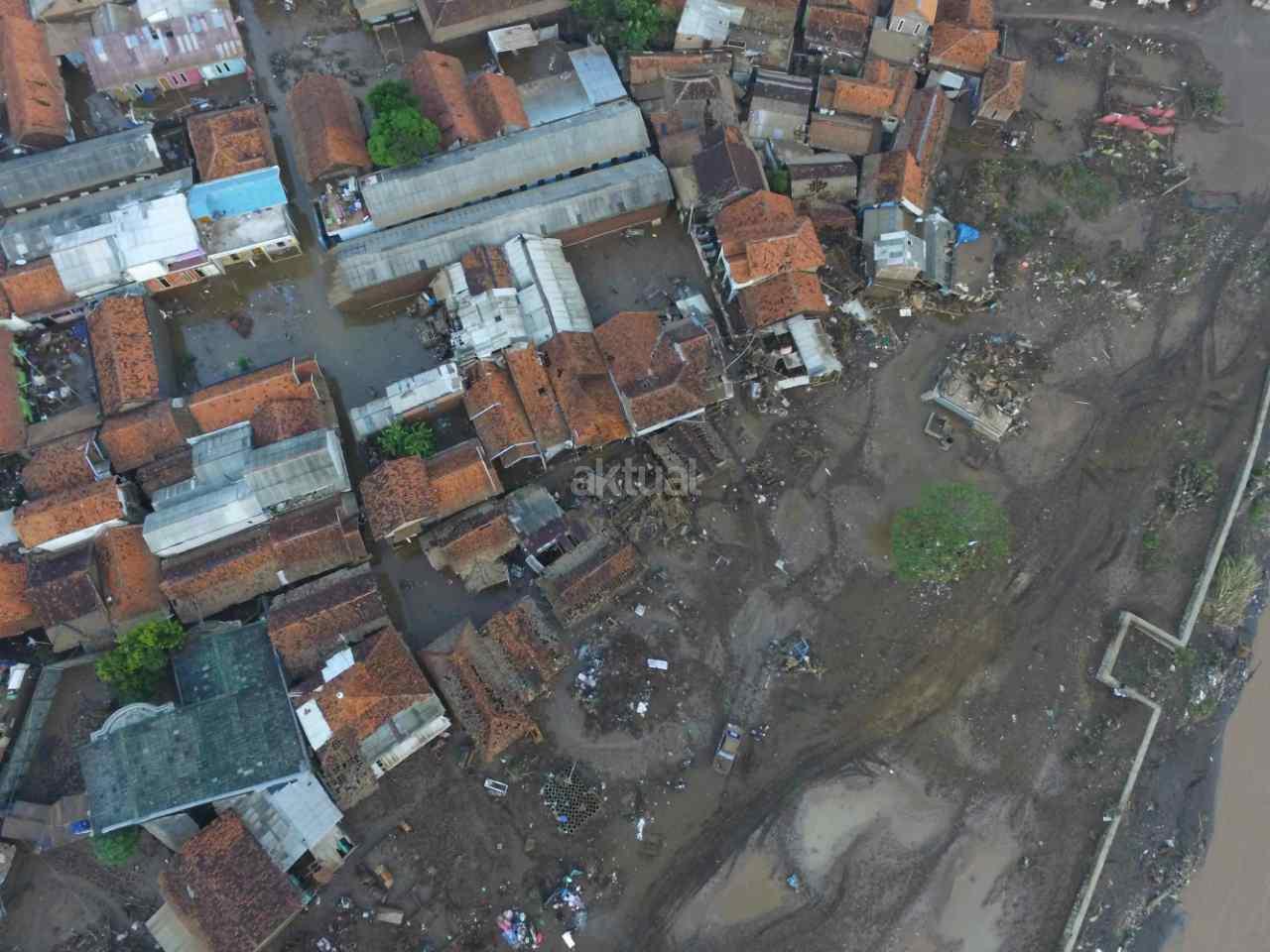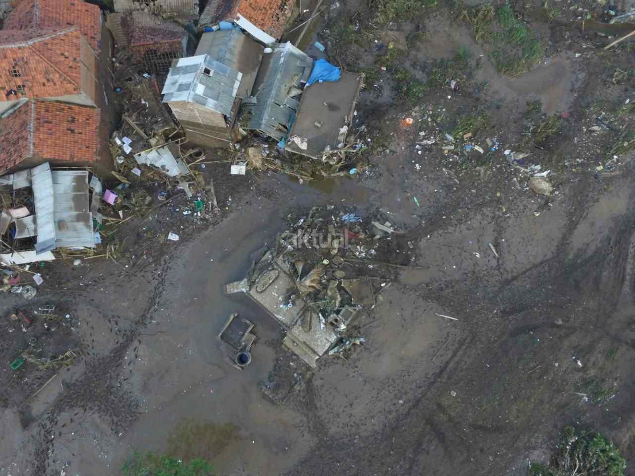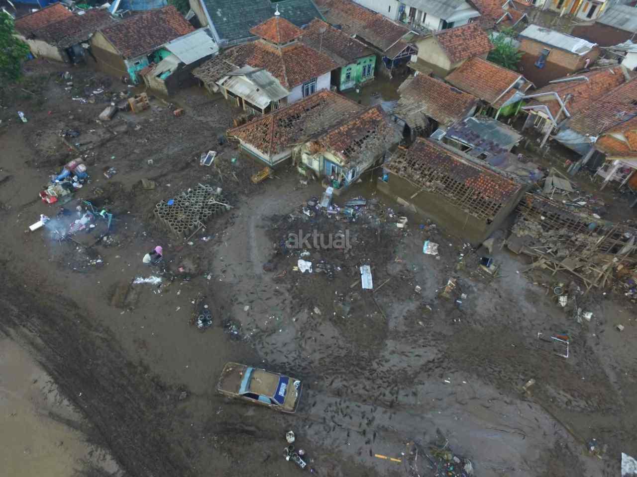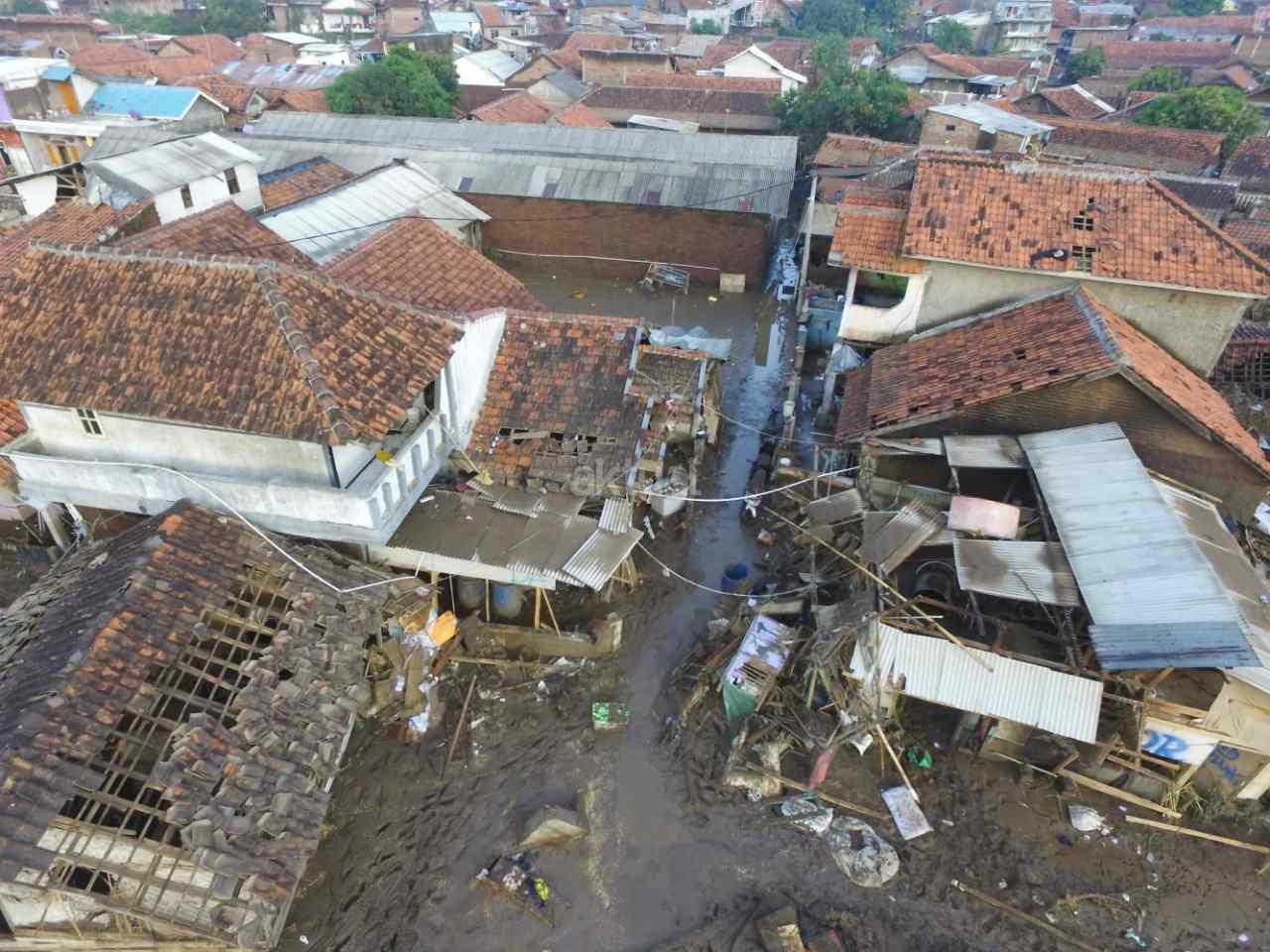 Foto udara lokasi musibah banjir bandang yang terjadi di Garut, Jawa Barat, Kamis (22/9). Data terakhir yang dirilis BNPB, korban tewas akibat banjir bandang di Garut ada 23 orang dan 18 orang lainnya masih hilang. Tim SAR gabungan diharapkan dapat menemukan 18 orang yang hilang ini secepat mungkin. AKTUAL/HO