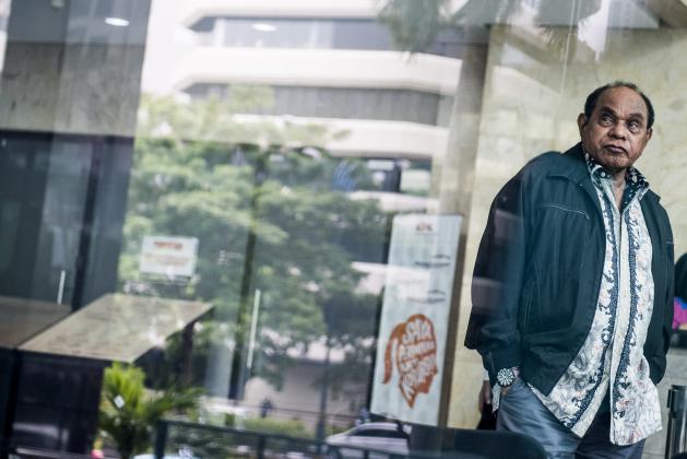 Mantan Menteri Perhubungan Freddy Numberi berada di ruang tunggu seusai menjalani pemeriksaan di gedung KPK, Jakarta, Selasa (15/3). Freddy Numberi diperiksa KPK sebagai saksi terkait kasus Tindak Pidana Korupsi pembangunan balai pendidikan dan pelatihan ilmu pelayaran Sorong tahap III pada Pusat Pengembangan SDM Perhubungan Laut (PPSDML) Badan Pengembangan SDM di Kementerian Perhubungan TA 2011. ANTARA FOTO/M Agung Rajasa/aww/16.