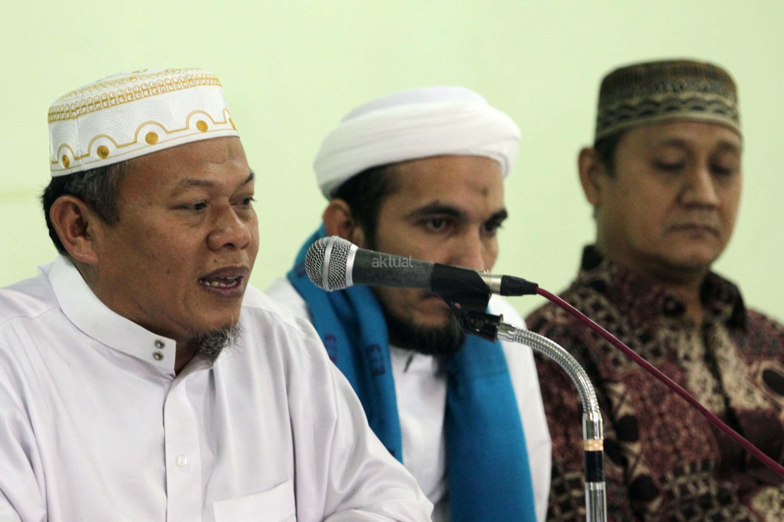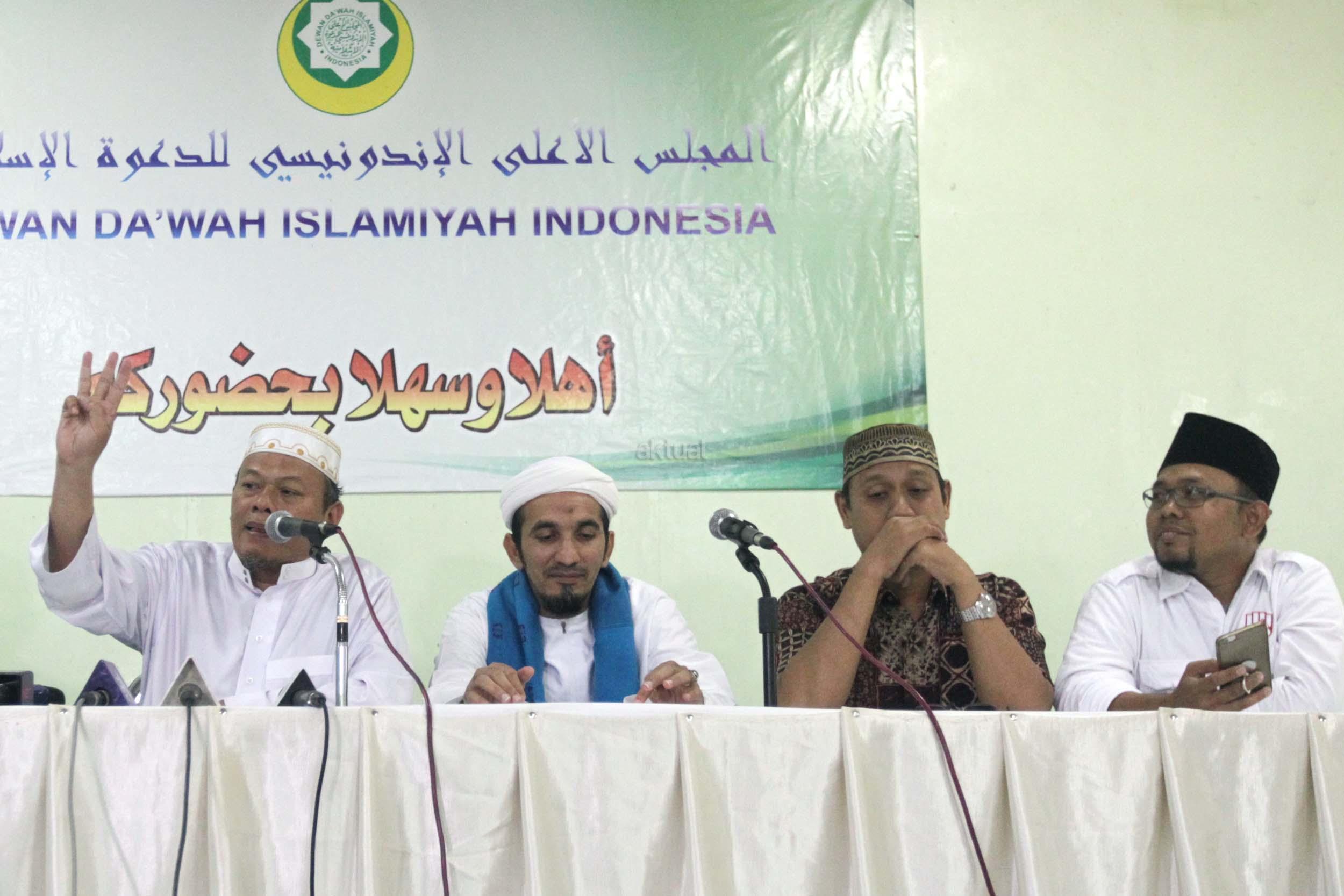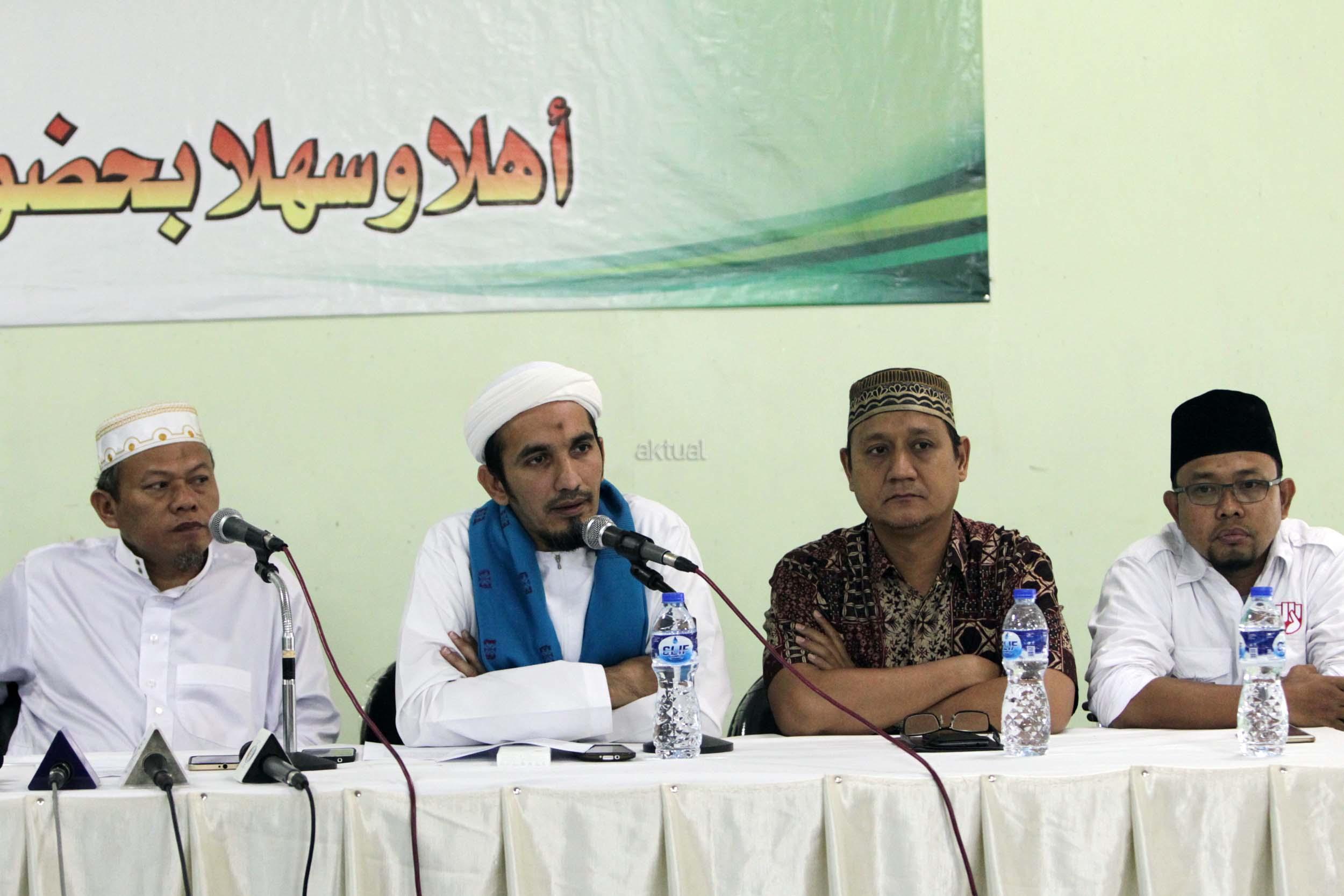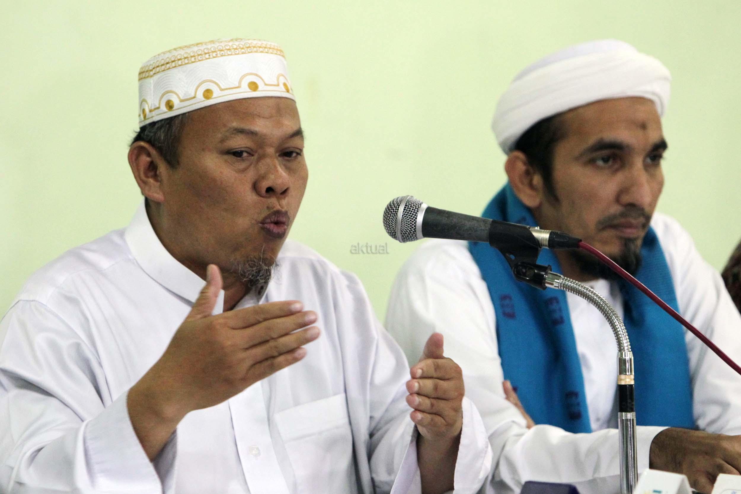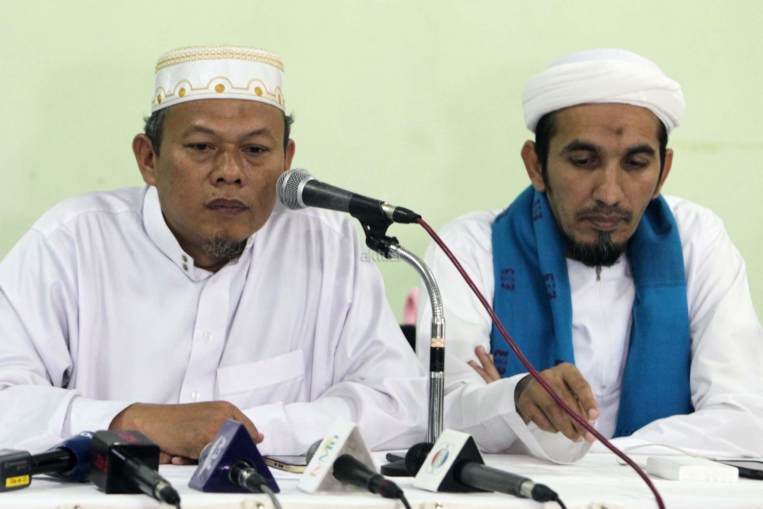 Sekretaris Jenderal Forum Umat Islam (FUI) Muhammad Al Khaththath (kiri) bersama Ketua Umum FPI Ust. Ahmad Shobri Lubis (kedua kiri) saat menggelar jumpa persnya di Gedung Dewan Dakwah, Jakarta, Kamis (9/2/2017). Dalam jumpa persnya Forum Umat Islam (FUI) rencana Aksi 112 Sabtu 11 Februari 2017 "Spirit 212" tetap akan dilakukan dan tidak ada pembatalan Aksi 112 karena tidak ada satupun undang-undang yang dilanggar. AKTUAL/Munzir