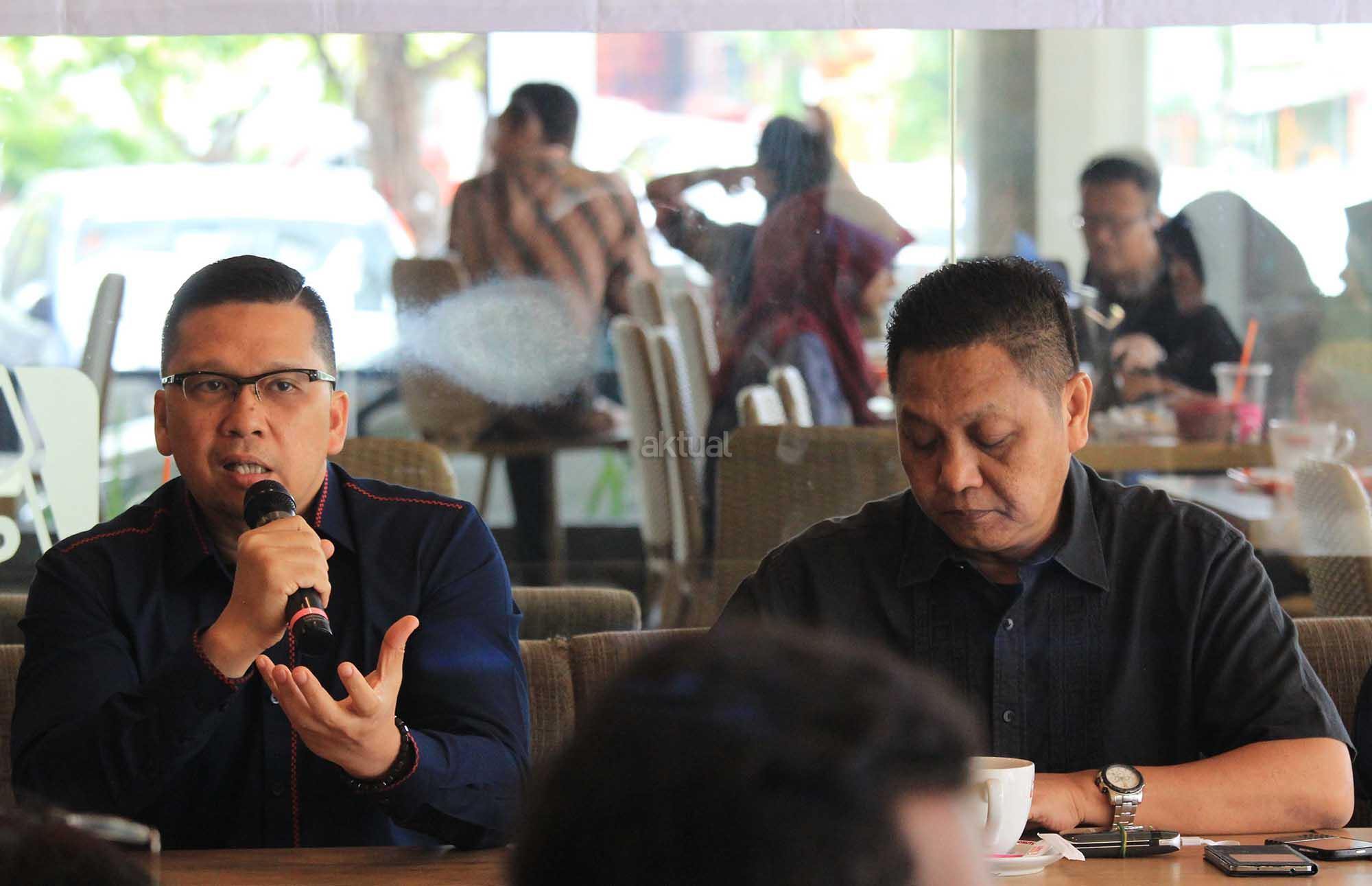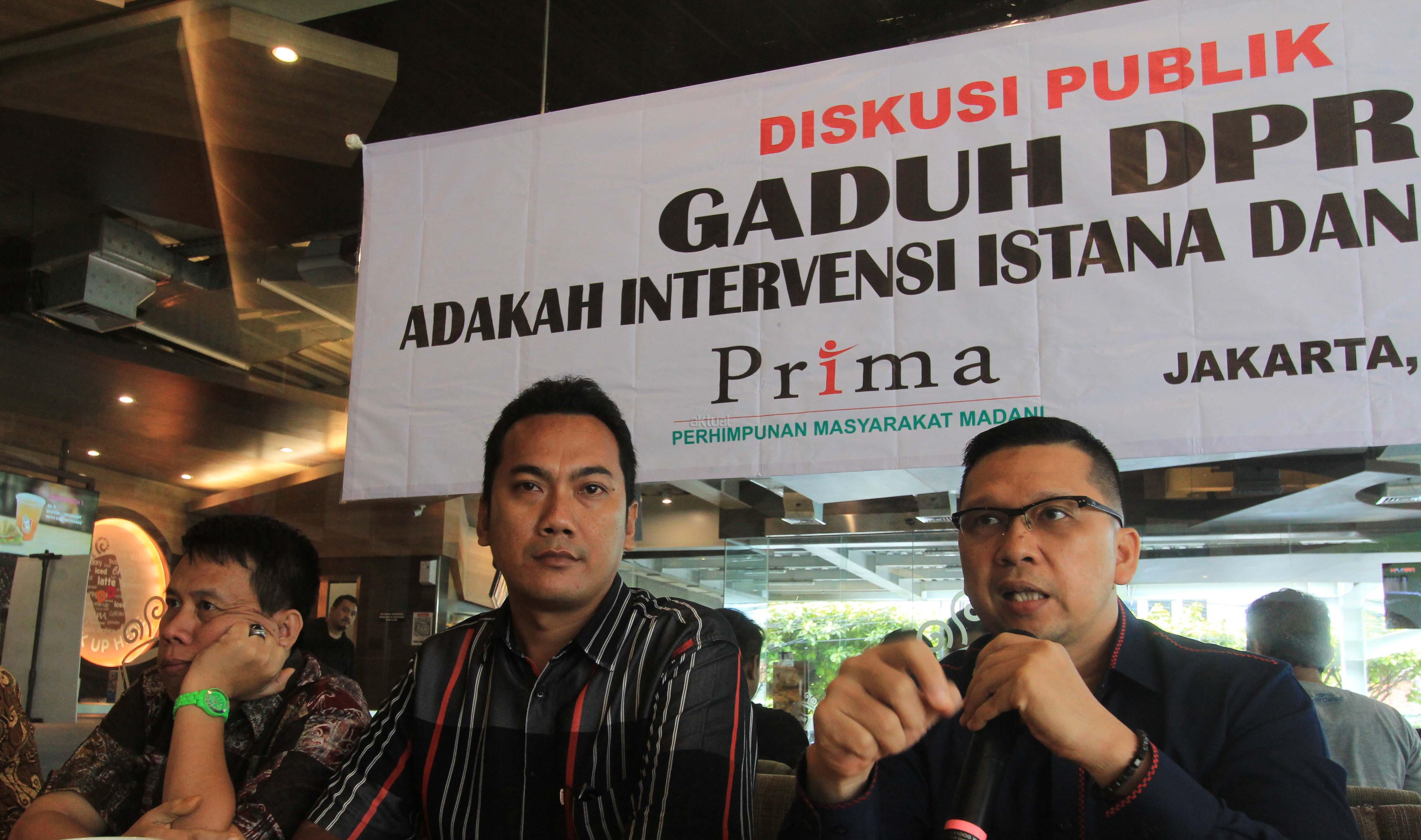 (dari kanan ke kiri) Ketua Gerakan Indonesia Bersih (GIB) Adhie Massardi, Politisi Muda Partai Golkar Ahmad Doli Kurnia, Ketua Presidium Perhimpunan Masyarakat Madani (Prima) Sya'roni saat menjadi narasumber diskusi bertema "Gaduh DPR : Adakah Intervensi Istana dan Freeport ? di Jakarta, Minggu (27/11/16). Sejumlah anggota DPR dan politisi muda Partai Golkar menganggap rencana pergantian Ketua DPR tidak sah dan akan memperburuk citra Golkar di masa mendatang. AKTUAL/Eko S Hilman