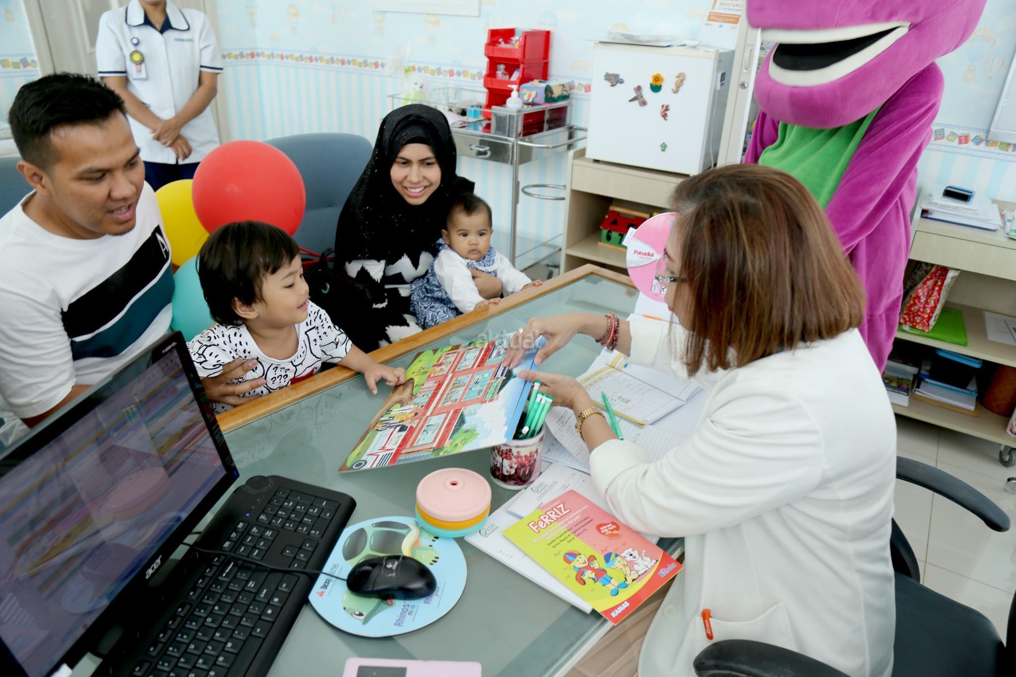 Dr Spesialis Anak Siloam Hospitals Group (SHG) Keumala Pringgardini memberikan puzzle ukuran A3 kepada seorang anak saat konsultasi di SHG, Jalan Duren Tiga, Jakarta Selatan, Sabtu (22/7). Dalam memperingati Hari Anak Nasional sebagai salah satu kegiatan yang menarik perhatian untuk pasien anak di tiap-tiap unit rumah sakit Siloam. Permainan sejenis puzzle ini sendiri memiliki dampak yang baik, yaitu merangsang rasa bahagia. Selain itu anak dapat berpikir lebih fokus, membangun keterampilan persepsi visual, serta menjadi lebih perhatian akan detail. Kordinasi mata dan sensor motorikpun bekerja sehingga bisa mengalihkan rasa sakit atau kesadaran akan kondisi tubuh yang belum pulih. AKTUAL/Tino Oktaviano