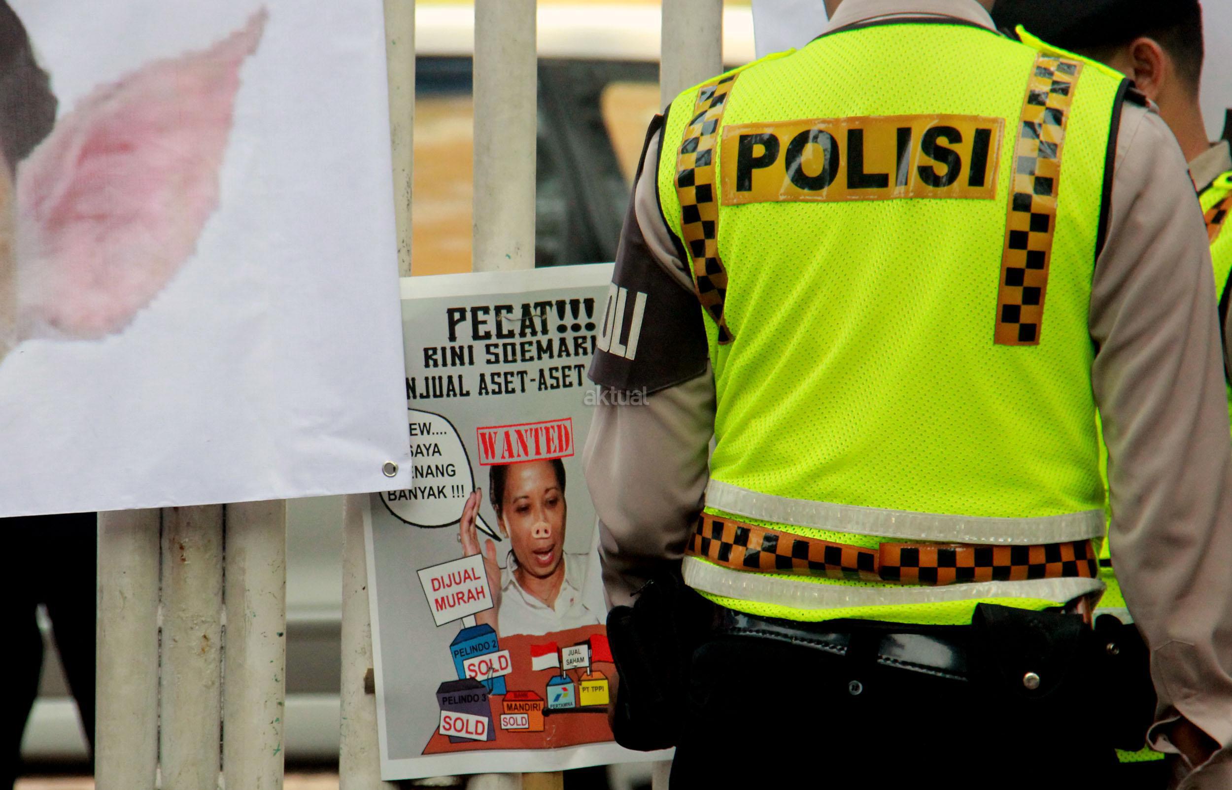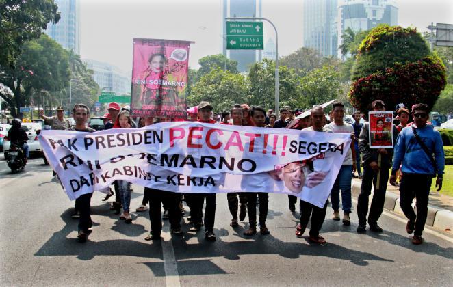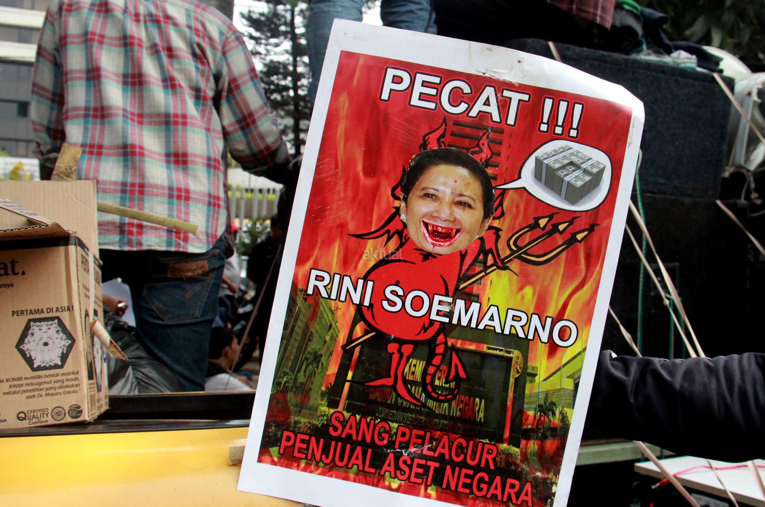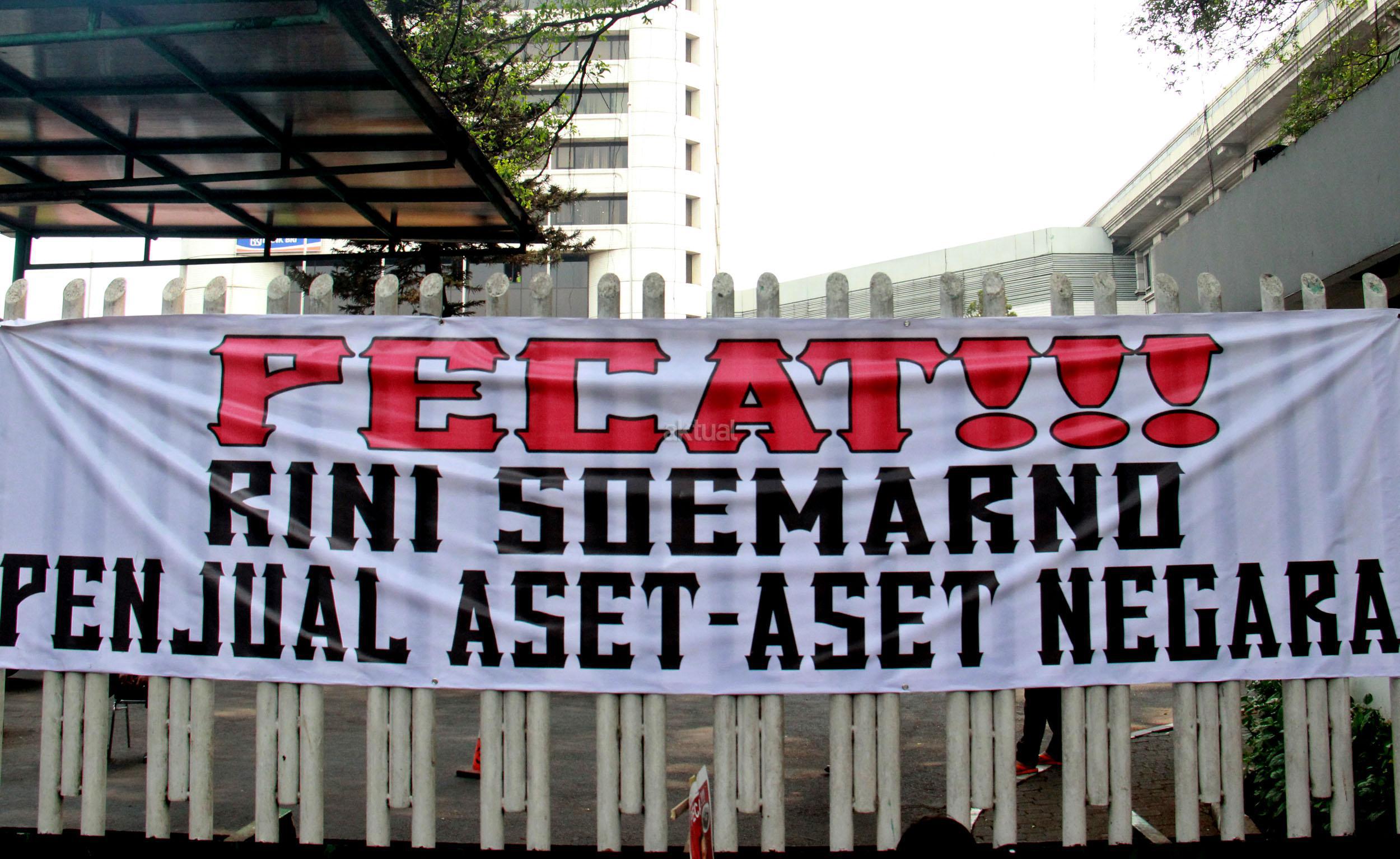 Ratusan massa dari berbagai elemen organisasi yang tergabung dalam Gerekan Penyelamat Aset Bangsa (GANAS) melakukan aksi pendudukan di kantor Kementrian Badan Usaha Milik Negara (BUMN), di Jakarta, Kamis (22/10/2015). Dalam aksi pendudukan kantor Kementrian BUMN GANAS meminta untuk Menteri BUMN Rini Soemarno segera legowo mundur dari Menteri BUMN atau dipaksa untuk turun