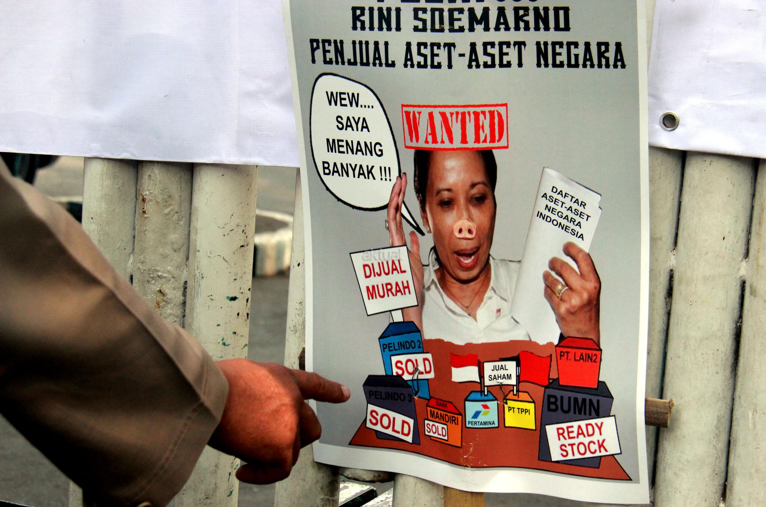 GANAS menilai bahwa dalam 1 tahun kepimpinan Rini Soemarno di Kementrian BUMN hanya mampu merampok dan menjual aset-aset Negara keperusahaan asing dan melakukan persekongkolan jahat dengan para saudagar dan taipan untuk merampok BUMN dan menjual aest -aset bangsa.