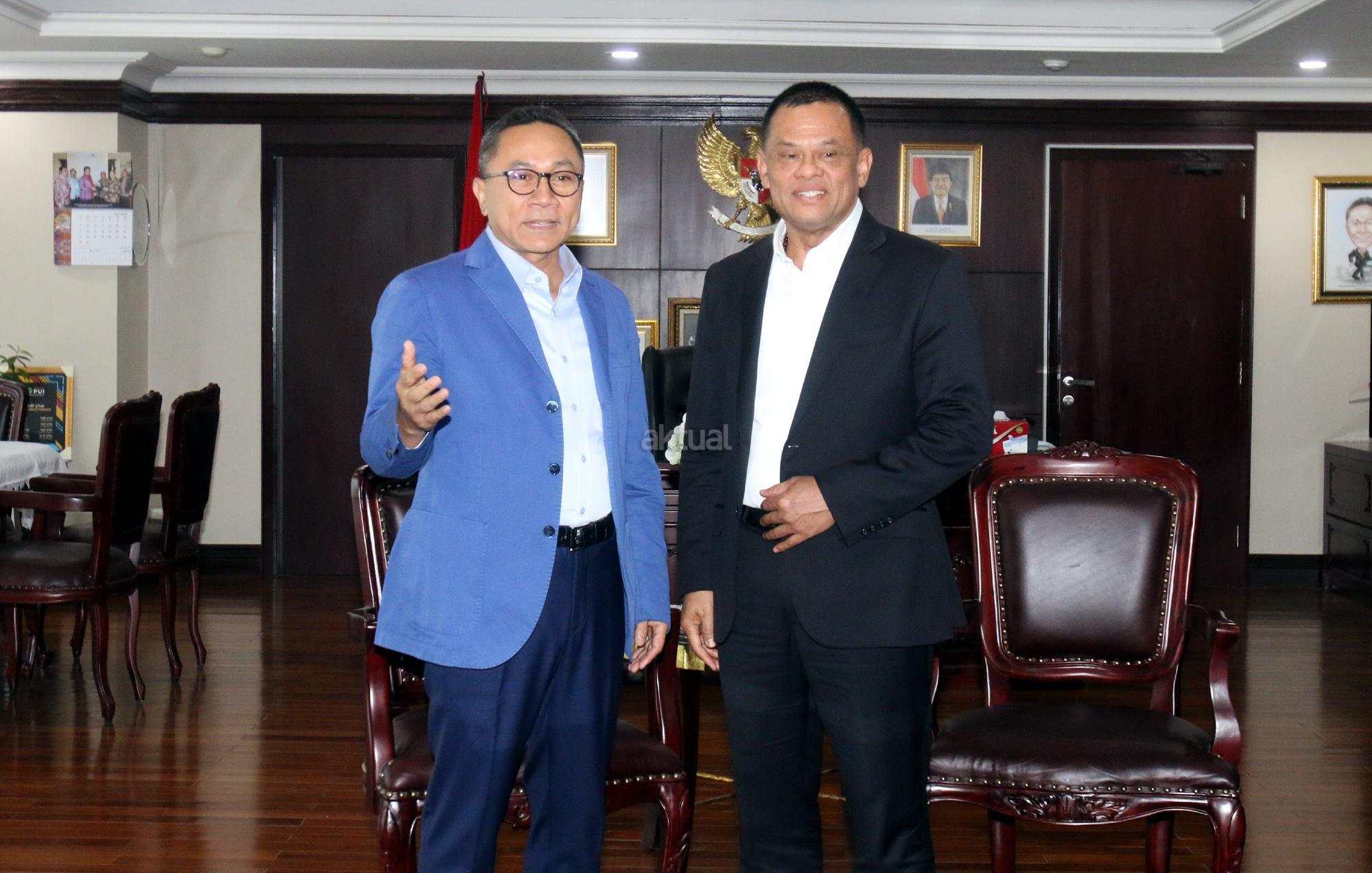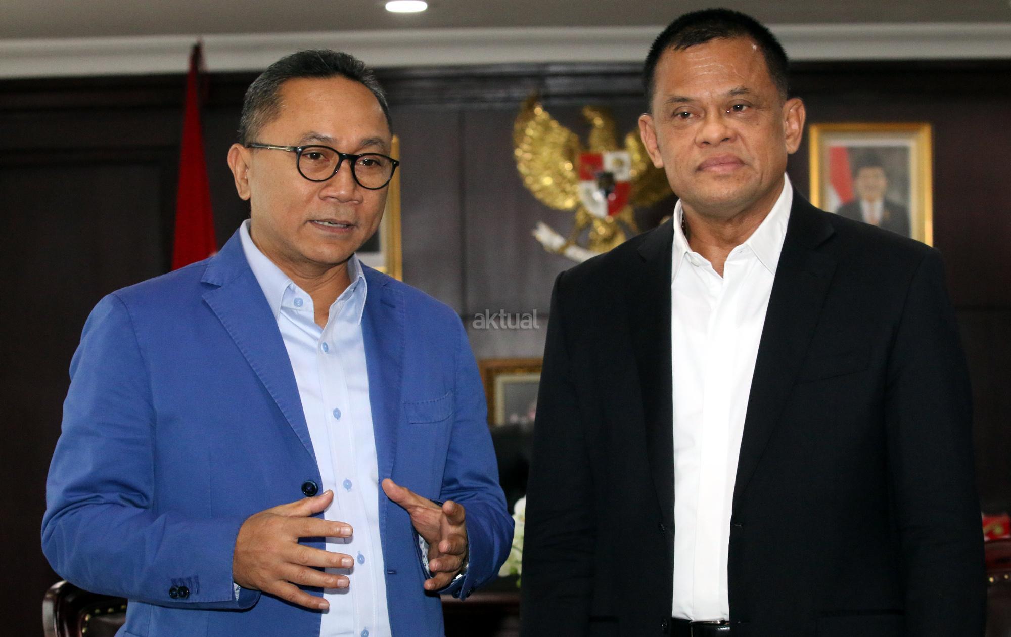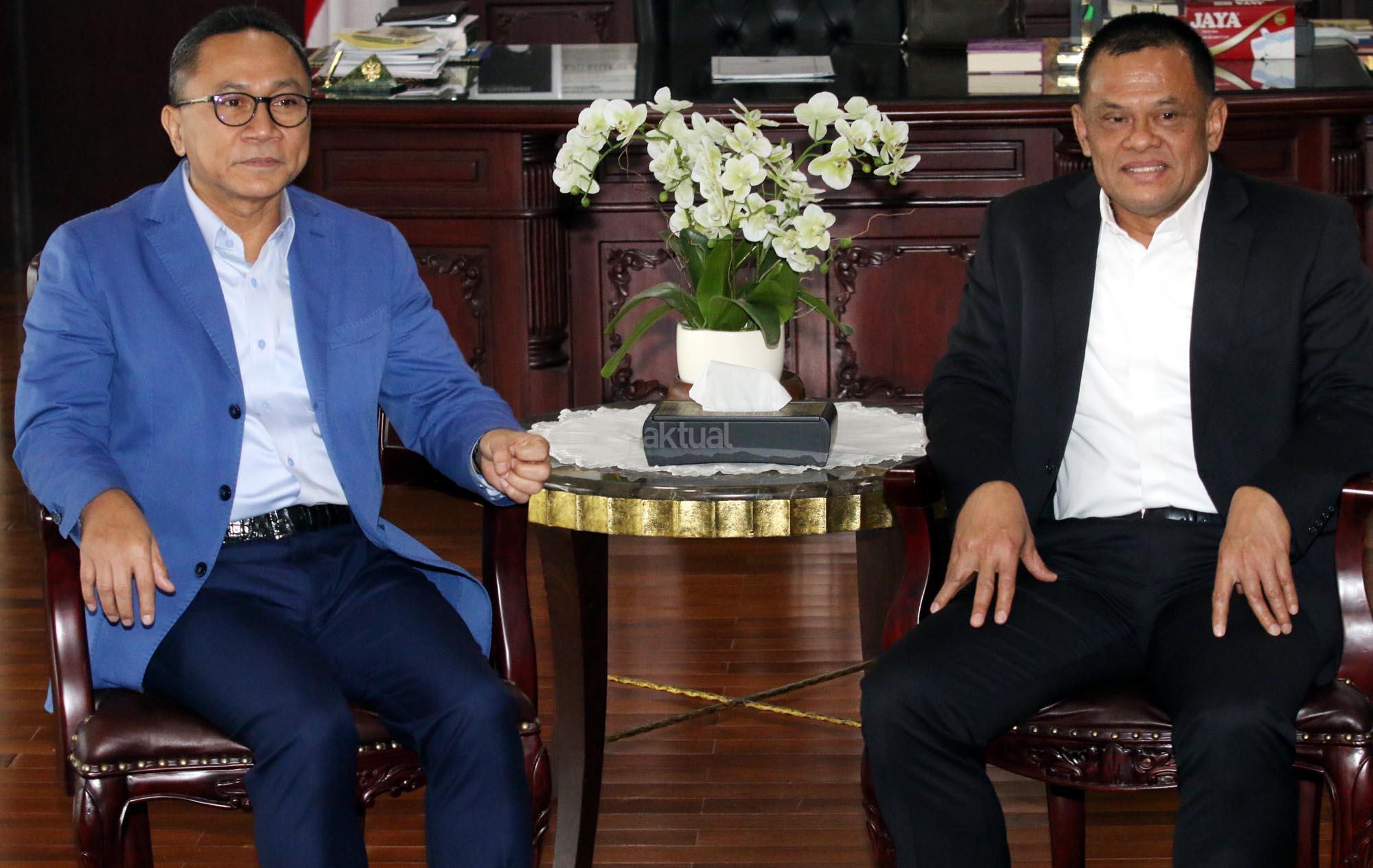 Ketua Majelis Permusyawaratan Rakyat (MPR) Zulkifli Hasan bertemu mantan Panglima TNI Jenderal (Purn) Gatot Nurmantyo di ruang kerja Ketua MPR, Nusantara III, Kompleks Senayan, Jakarta, Selasa (8/5/18). Dalam pertemuan tersebut keduannya akan membahas soal situasi menjelang Pilpres 2019. AKTUAL/Tino Oktaviano