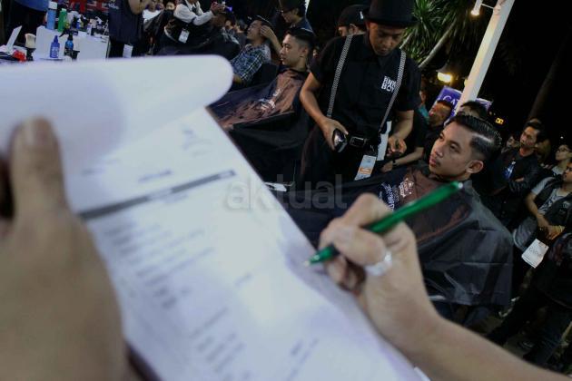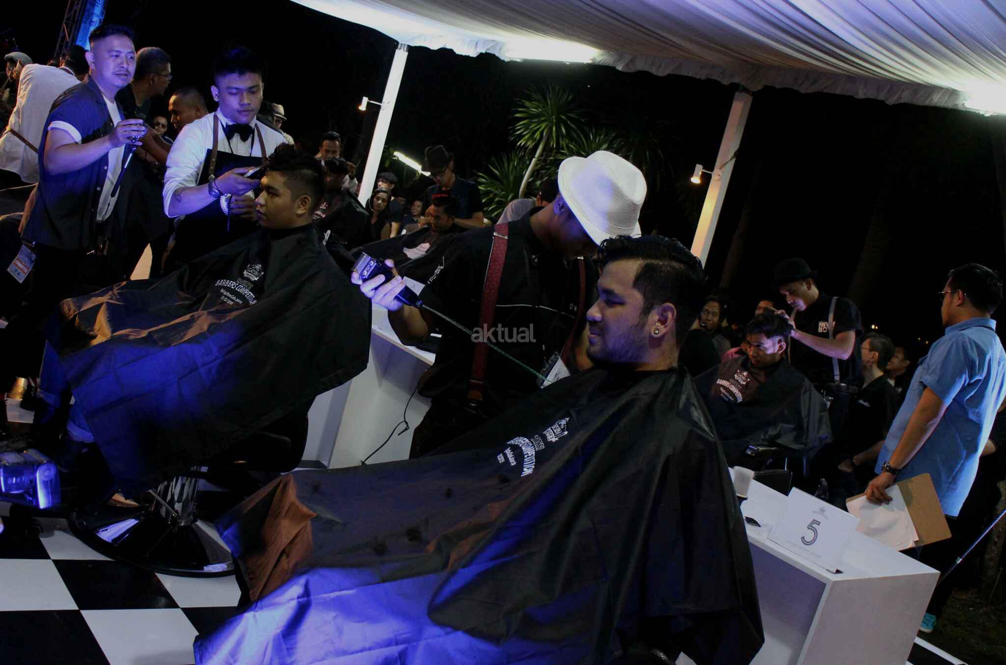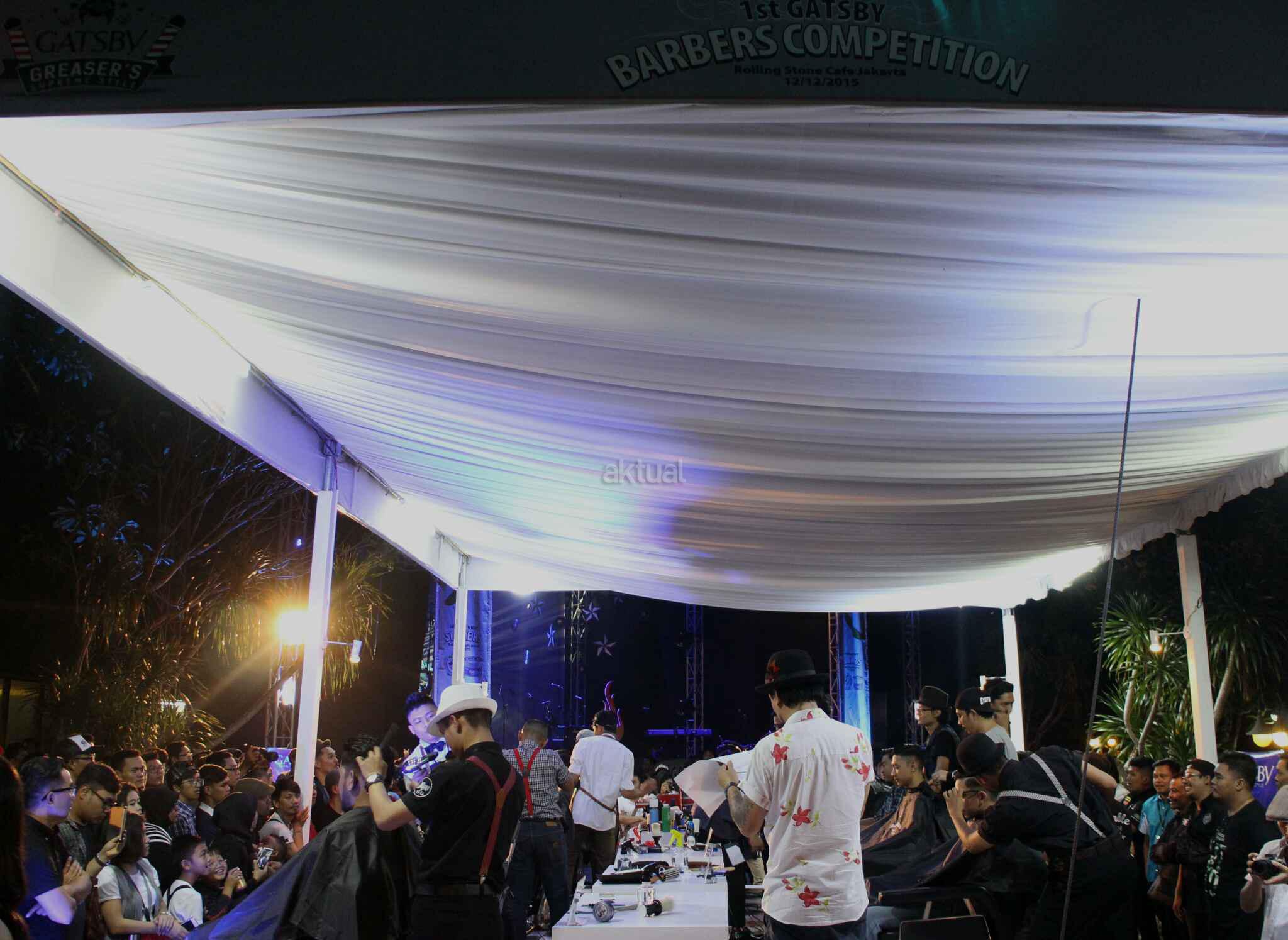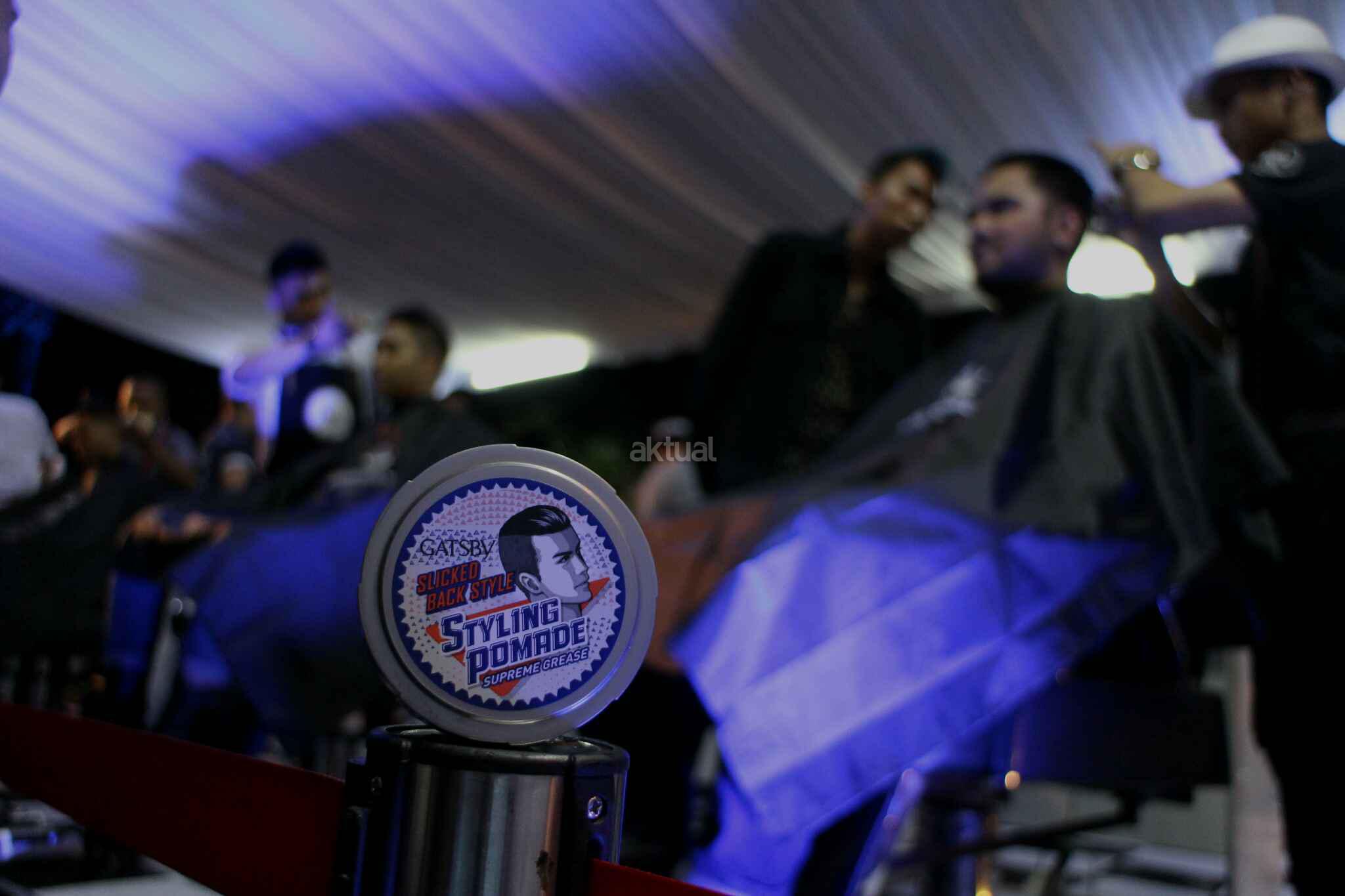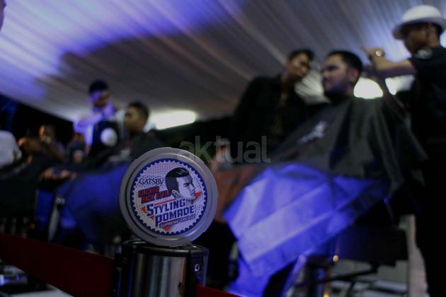 Sejumlah peserta yang berprofesi sebagai kapster barbershop mengikuti "Gatsby Barber Competition" yang digelar di Jakarta, Sabtu (12/12). Dengan tema "Saturday Nights Slickers", Gatsby memiliki tujuan agar komunitas pecinta pomade untuk mempunyai wadah tentang hairstyling dan apresiasi kepada orang-orang dibalik industrial barbershop, yaitu para kapster, atau lebih dikenal dengan baberman. AKTUAL/HO